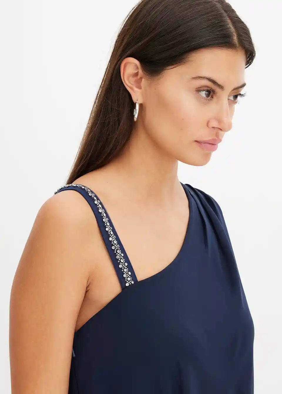 Kombinezon s otvorenim ramenom s naramenicom i štras kamenčićima