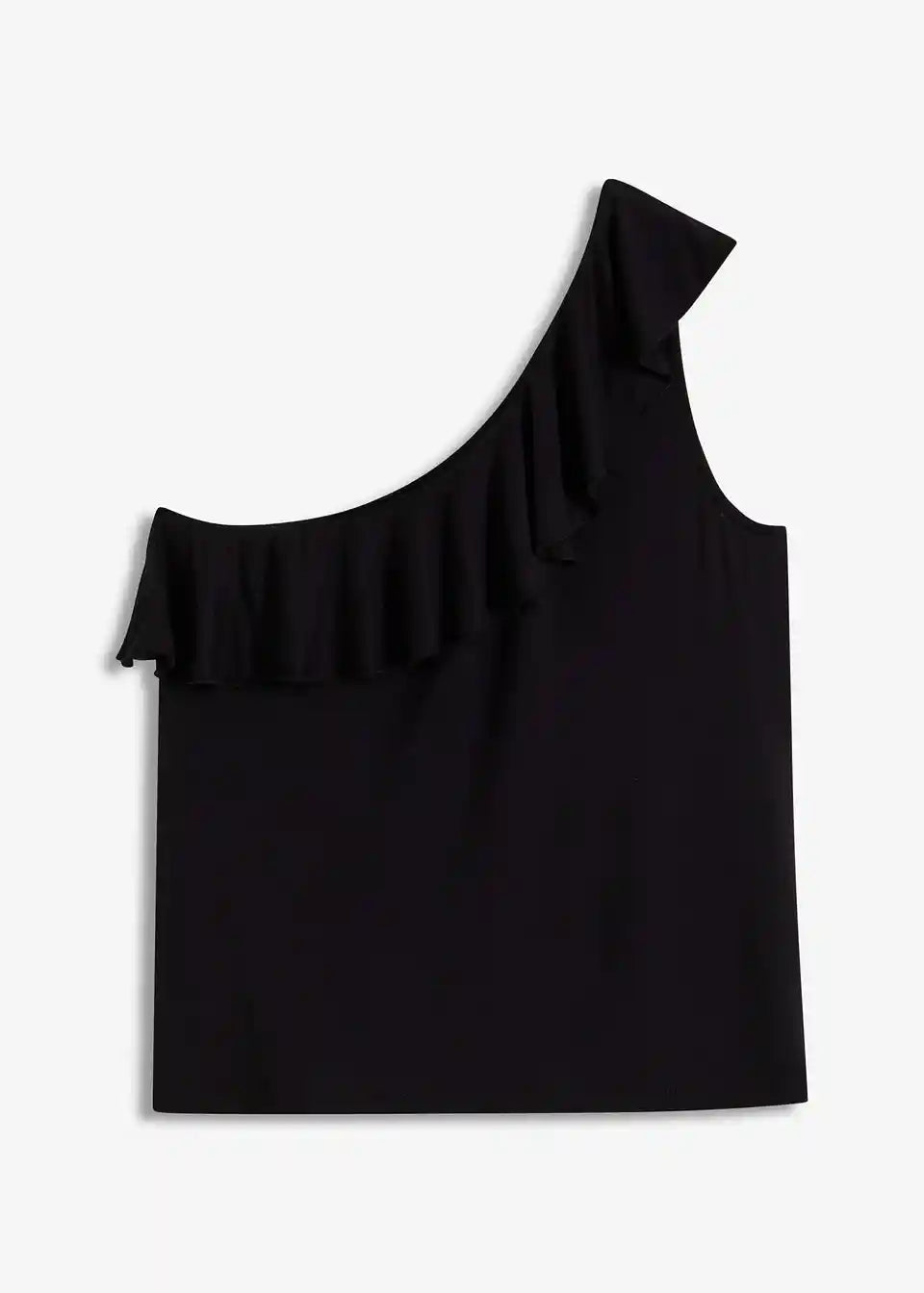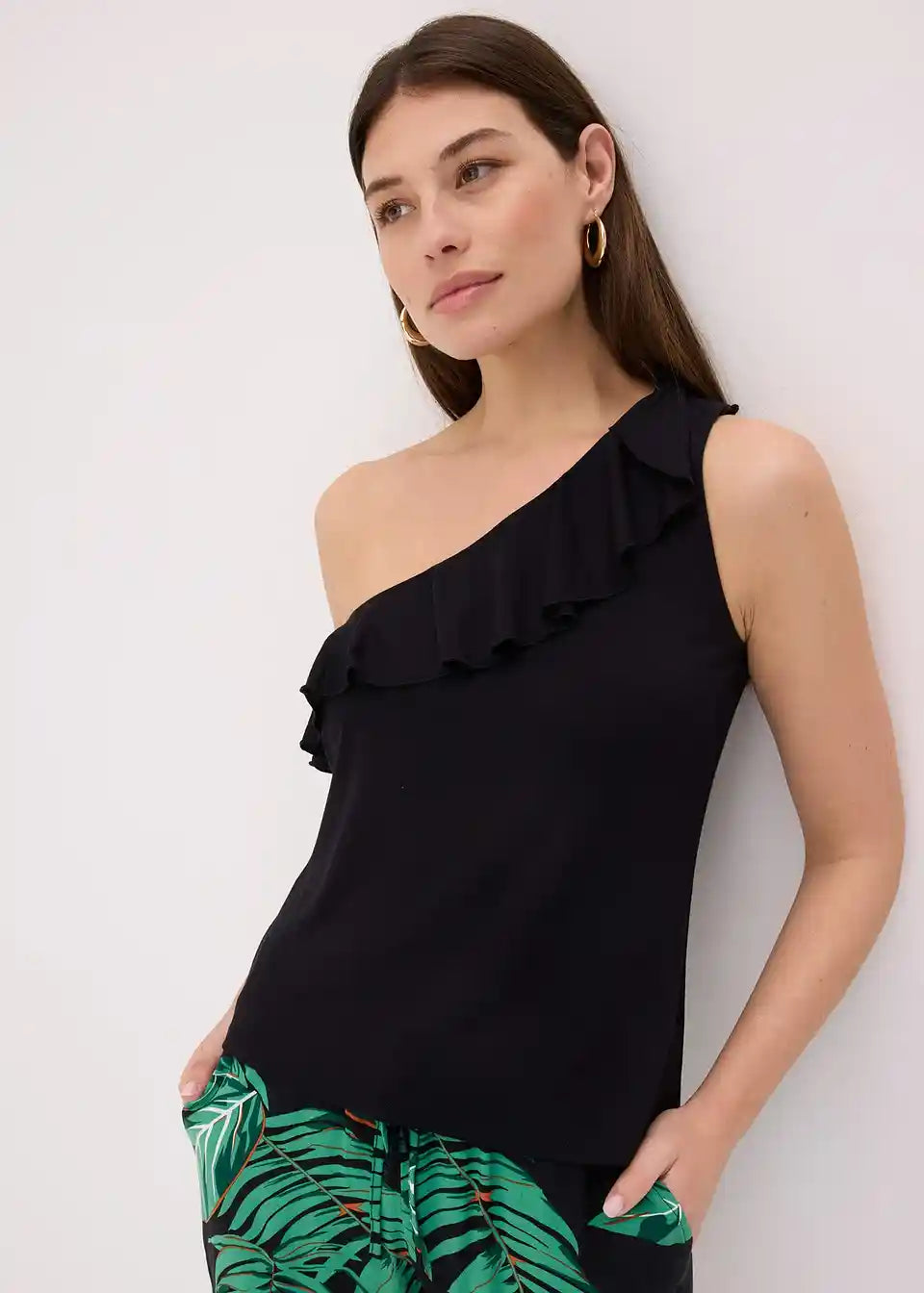 moderni One-Shoulder-top od meke mješavine viskoze s dekorativnim volanom sprijeda i straga na izrezu