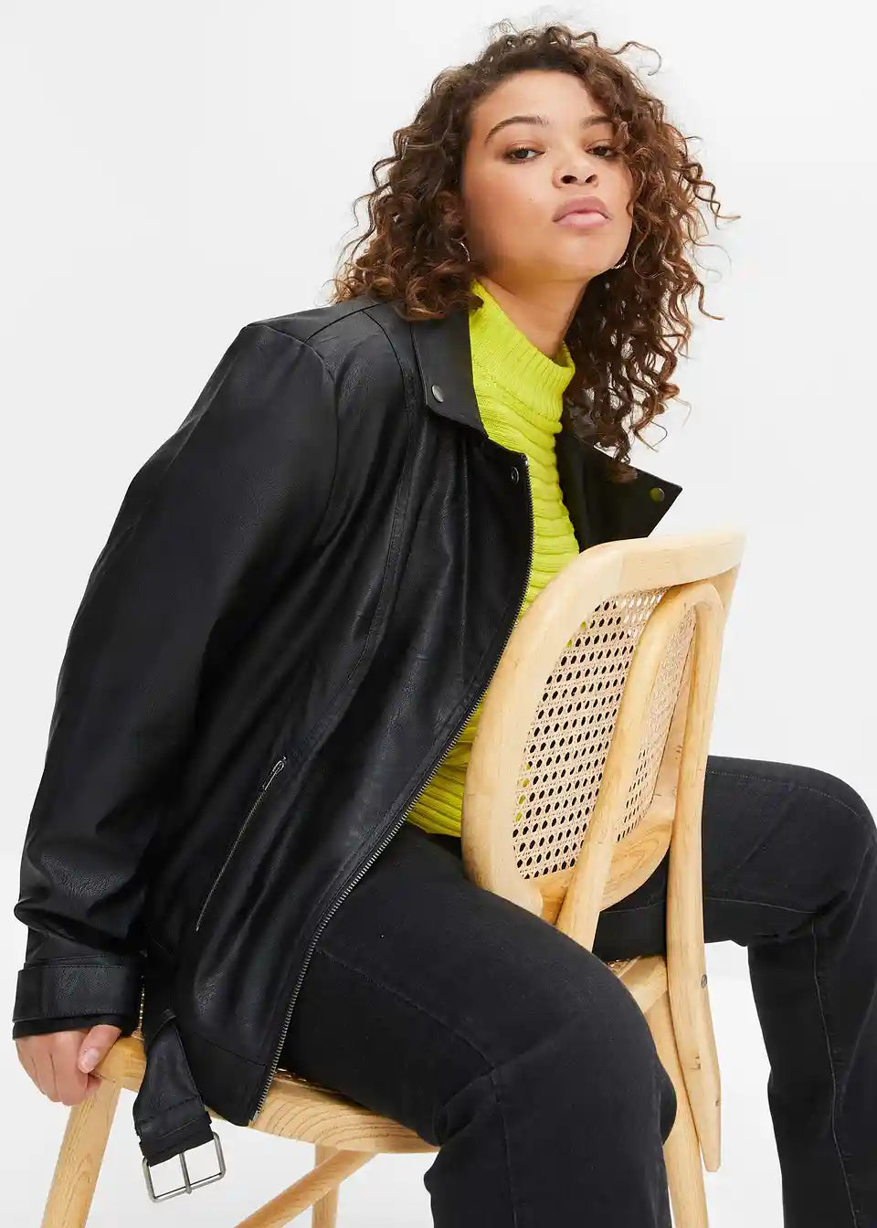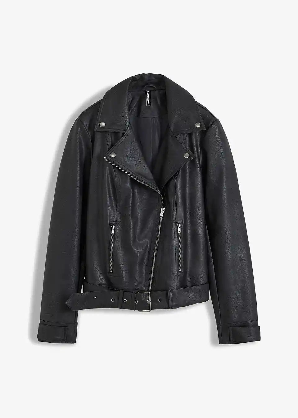 Ležerna Biker jakna od imitacije kože u oversized izgledu