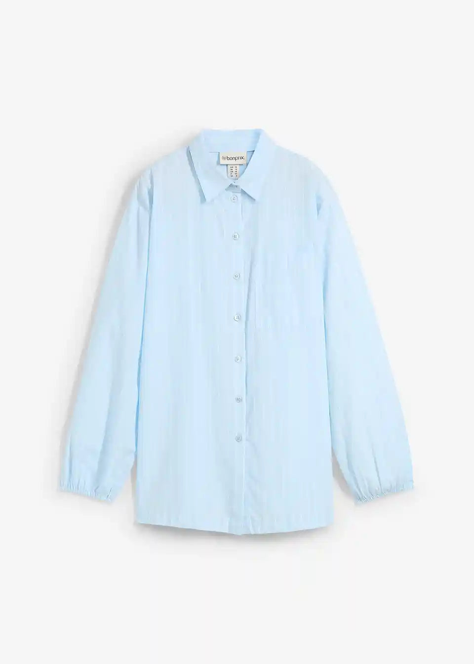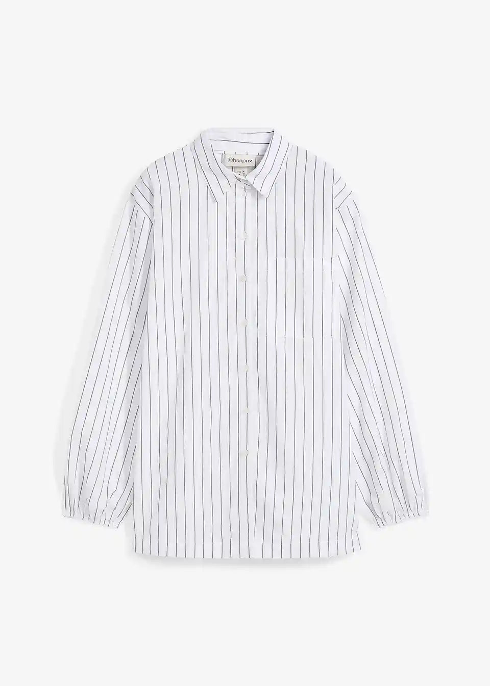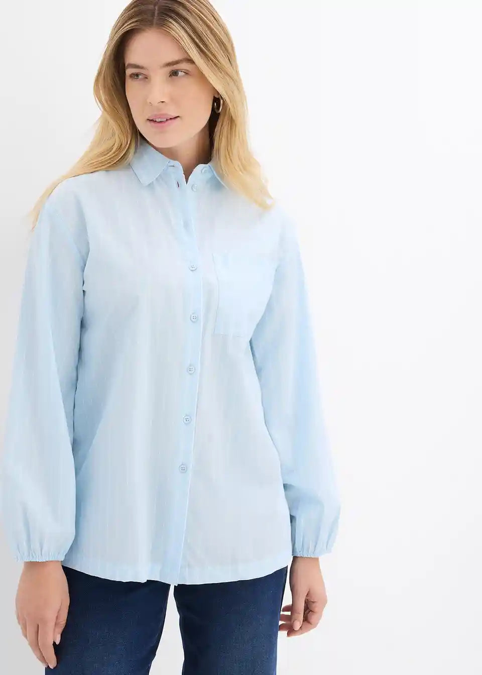 Dugih rukava, popelin bluza s džepom na prsima i elastičnim manžetama