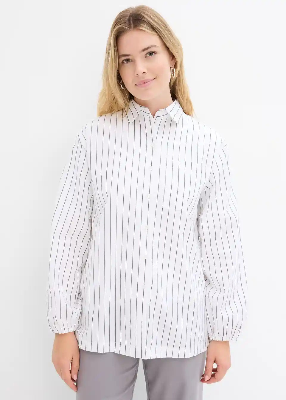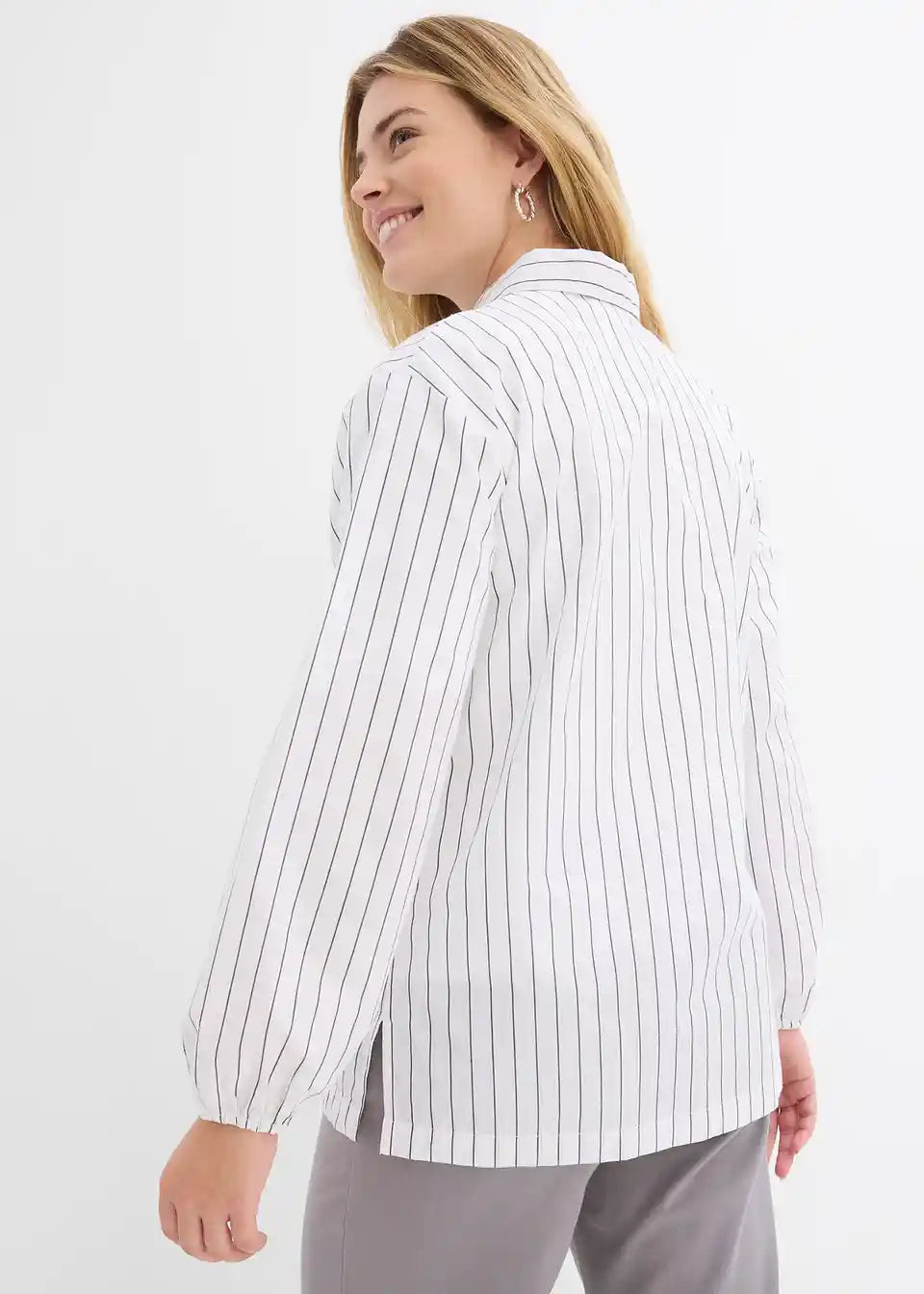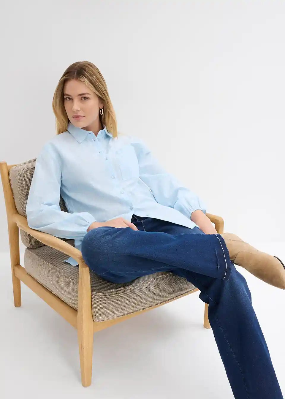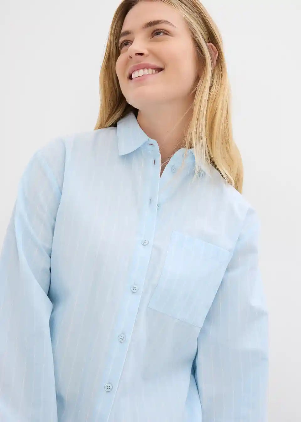 Dugih rukava, popelin bluza s džepom na prsima i elastičnim manžetama