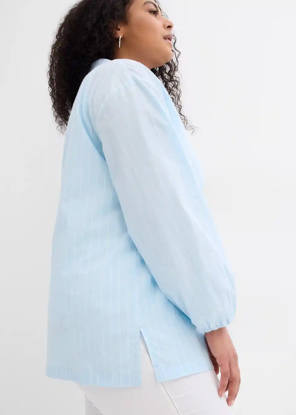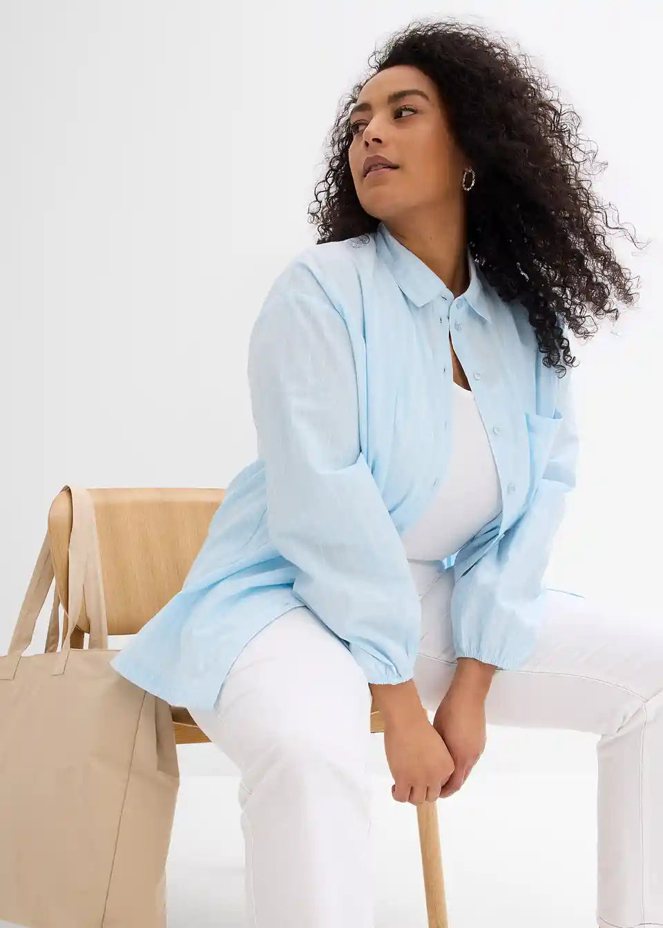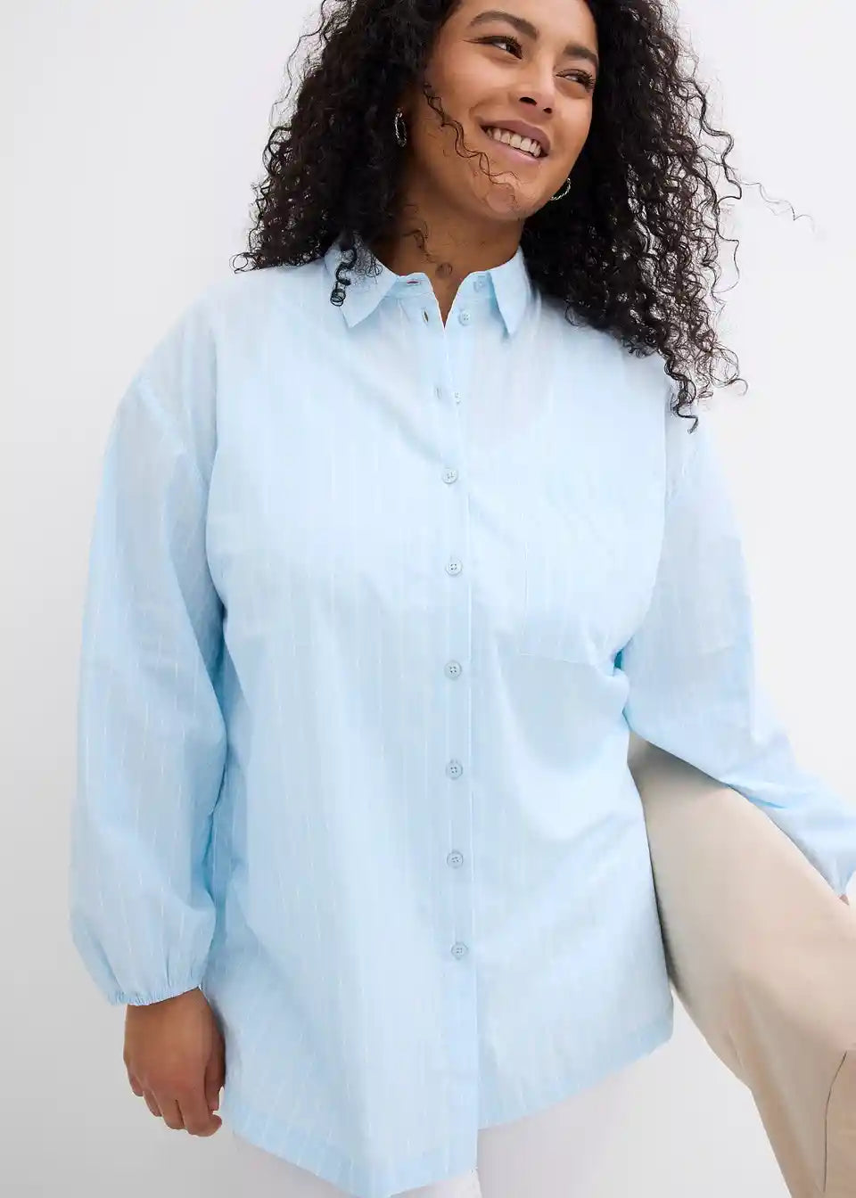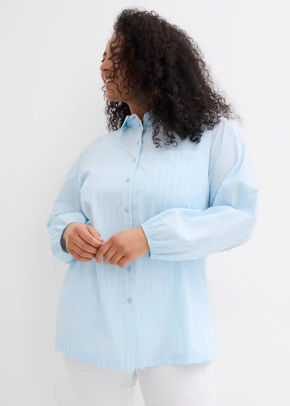 Dugih rukava, popelin bluza s džepom na prsima i elastičnim manžetama