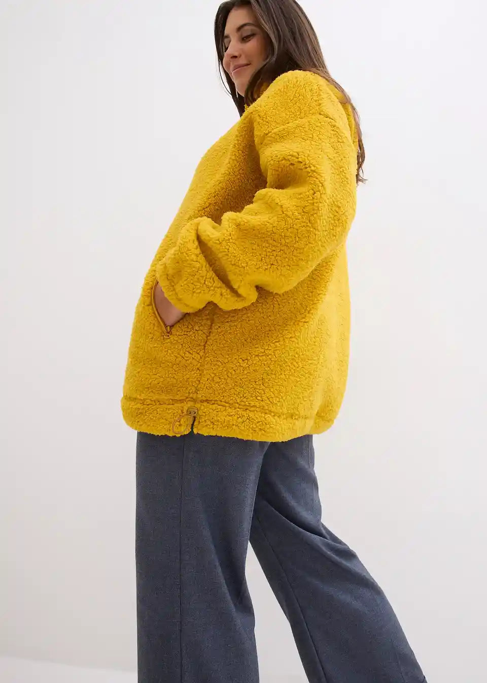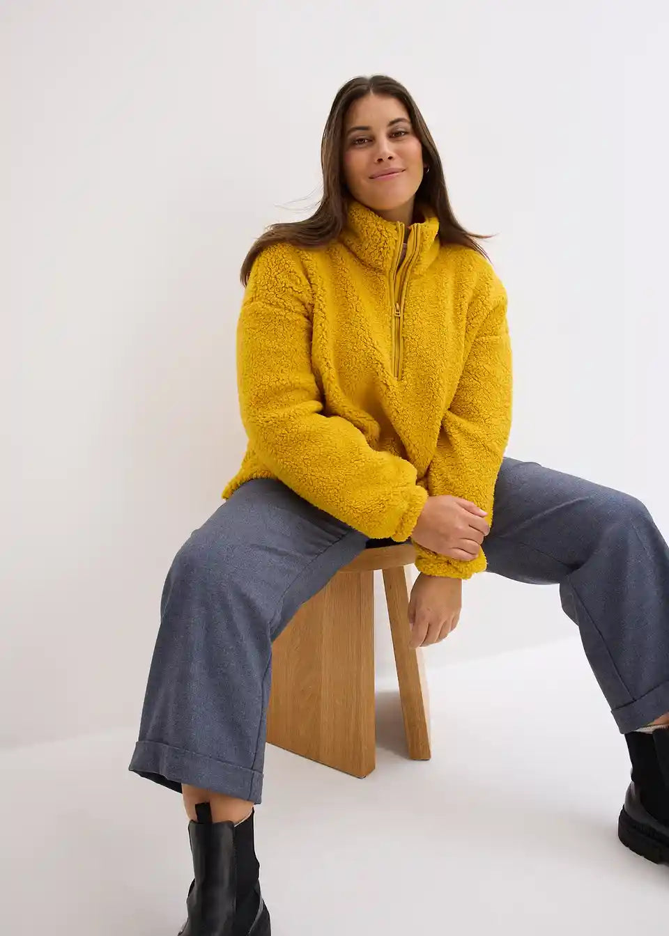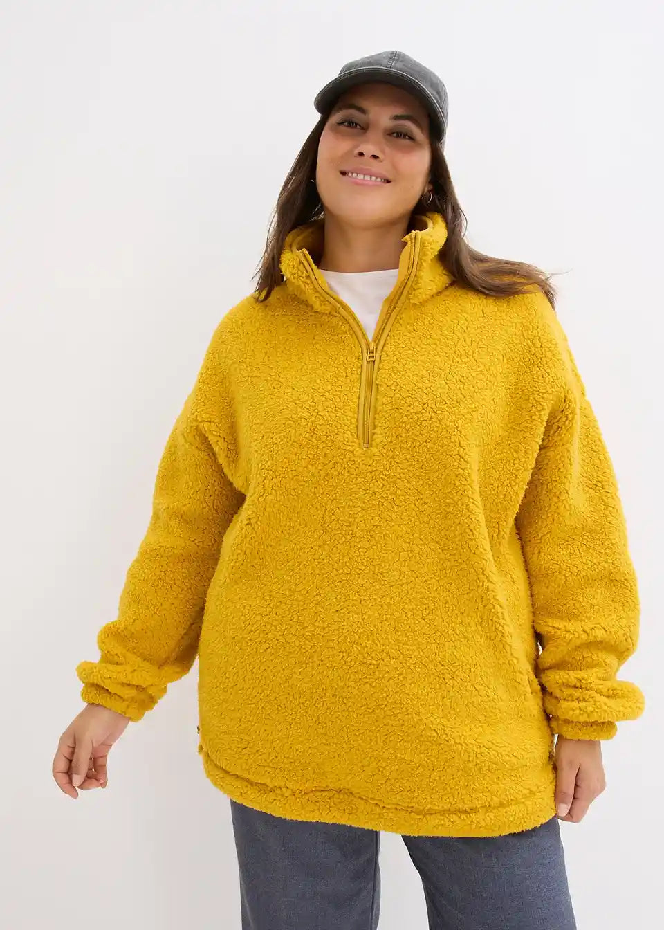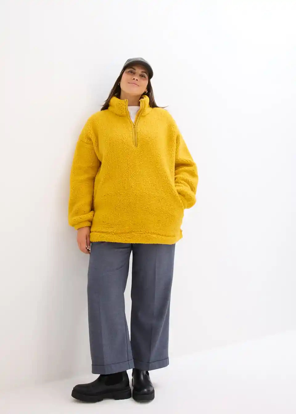 Oversize plišana majica s visokim ovratnikom i džepovima