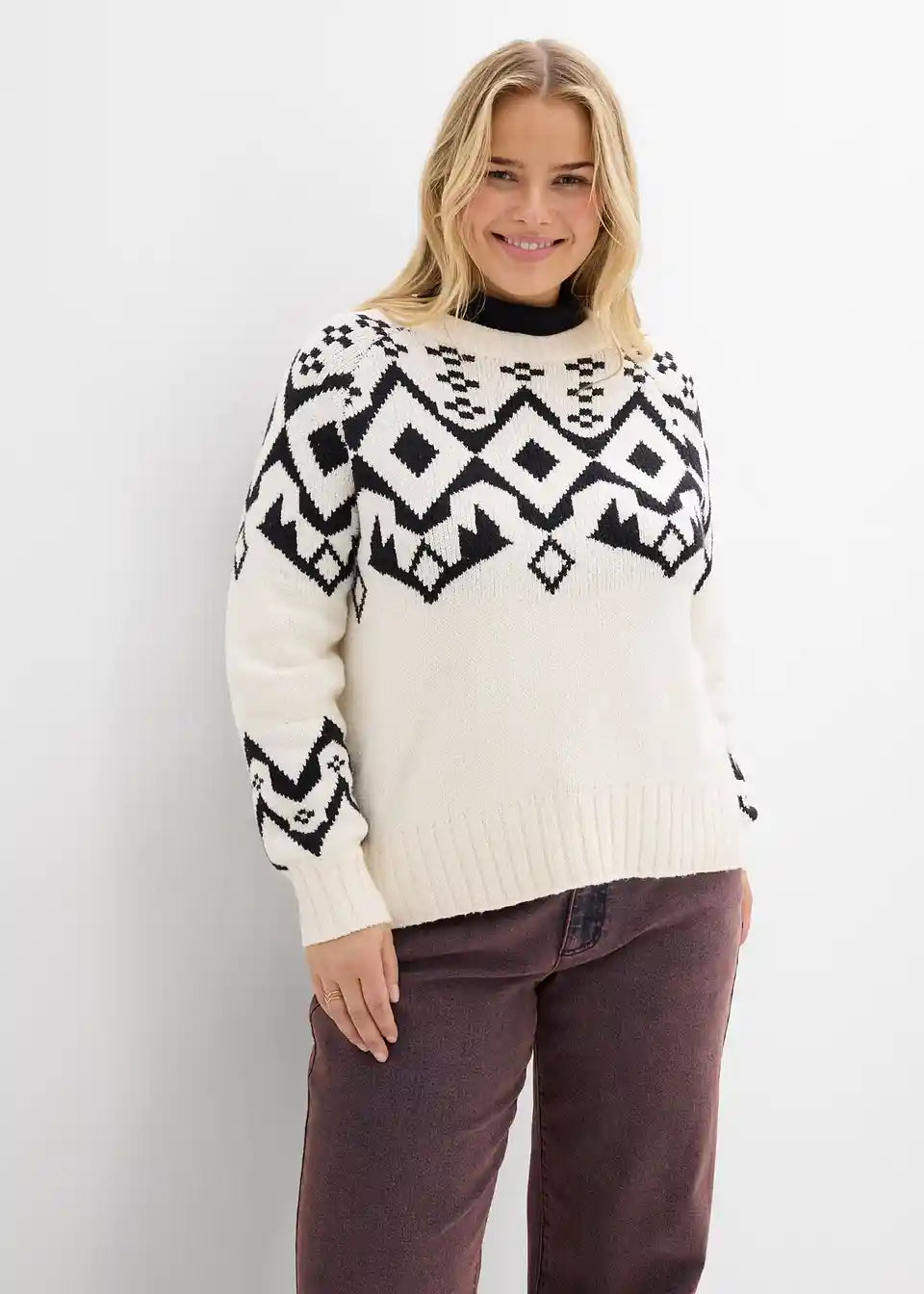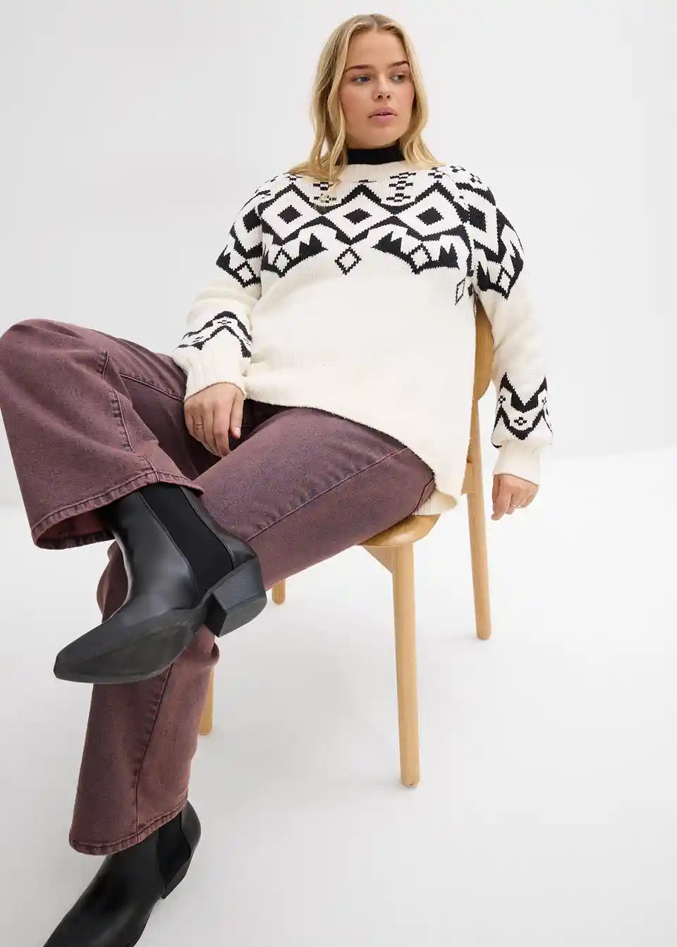 Moderan Oversize Norweger-Pullover u monokromatskom izgledu