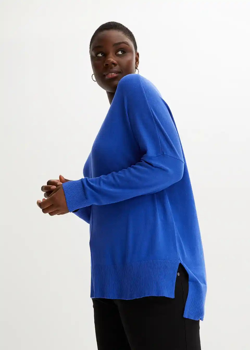 Ležeran oversized pulover s prorezima na rubu