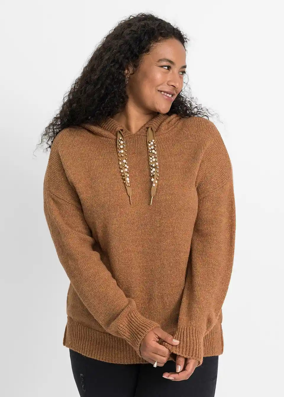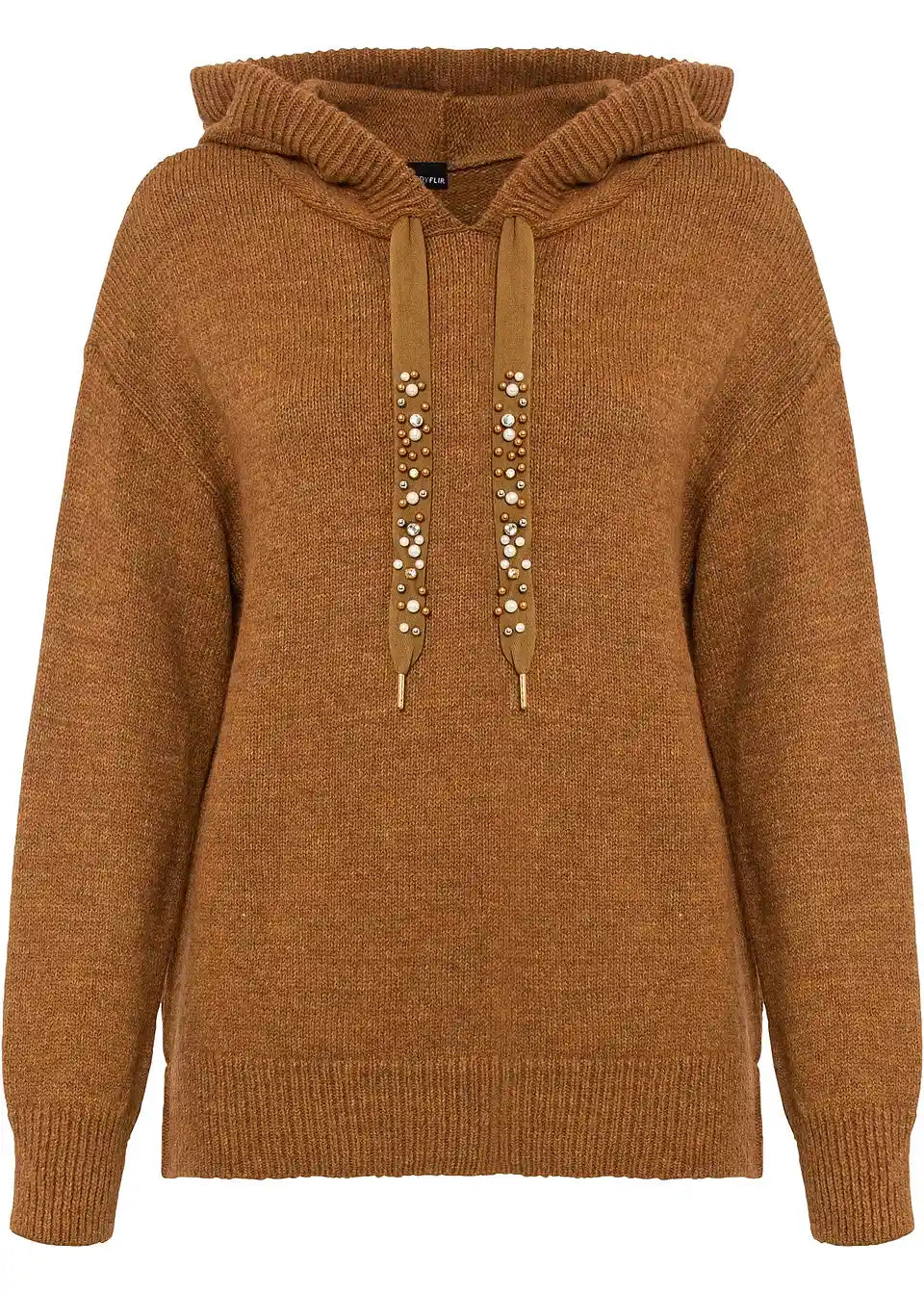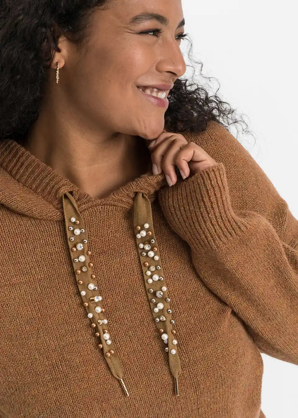 Ležeran pleteni pulover s dugim rukavima i kapuljačom