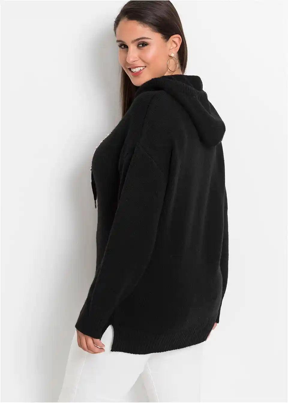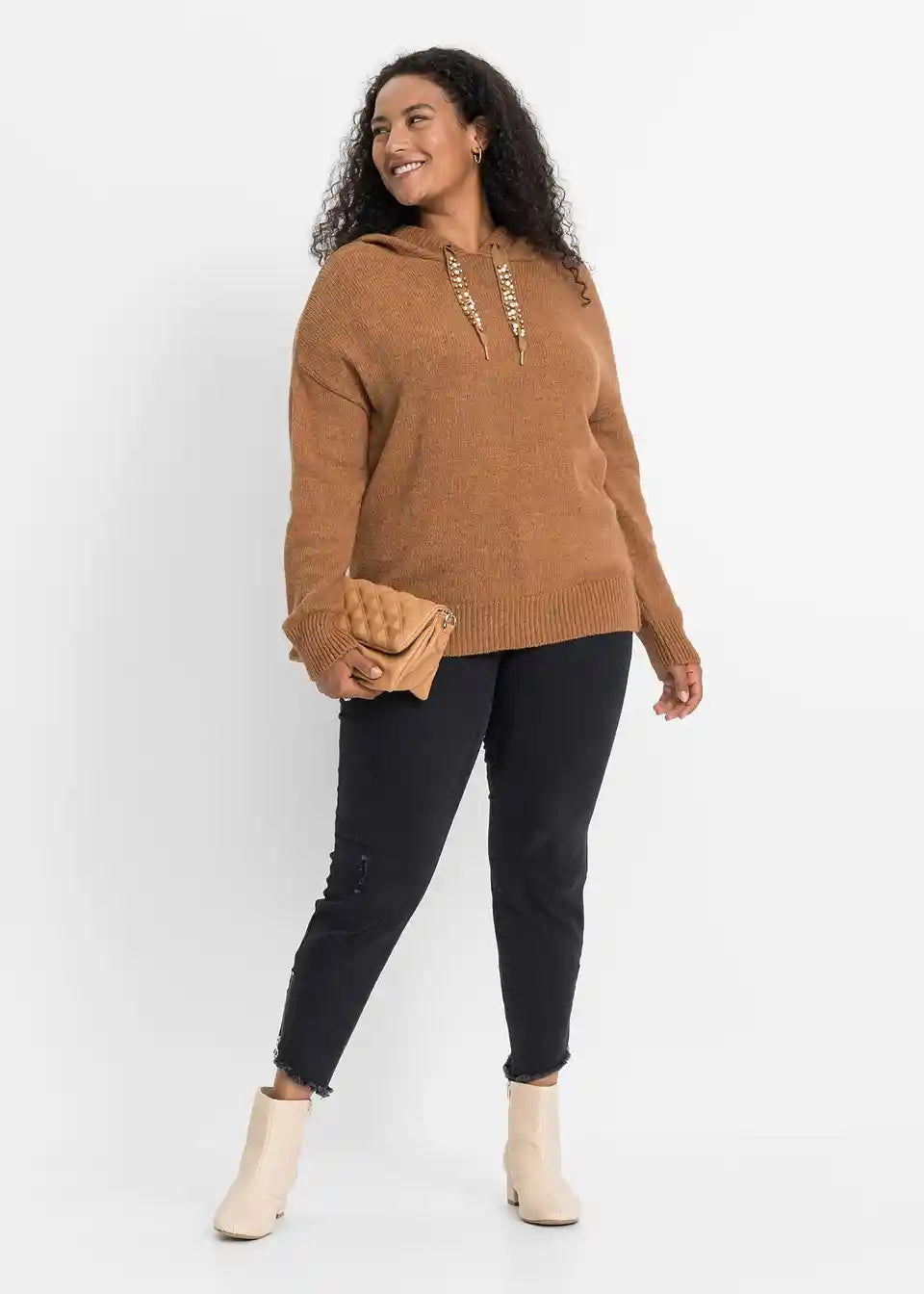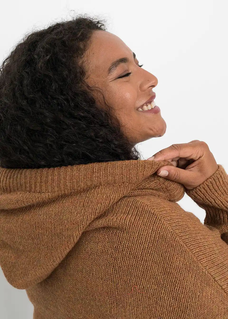 Ležeran pleteni pulover s dugim rukavima i kapuljačom