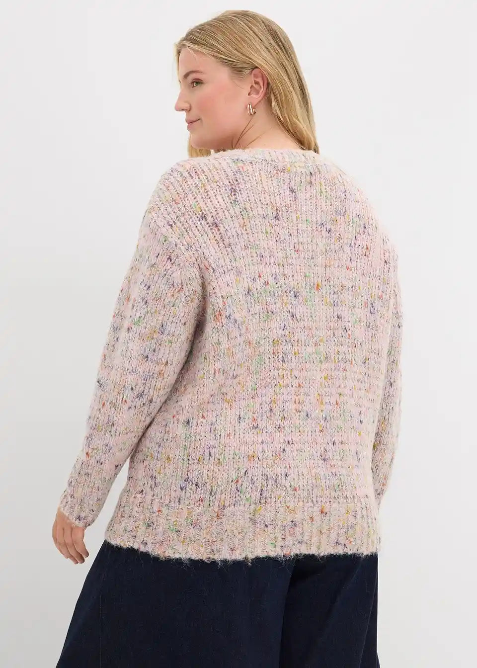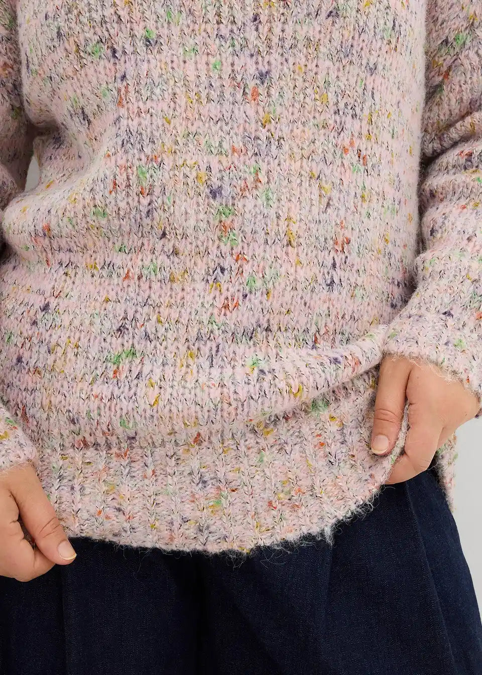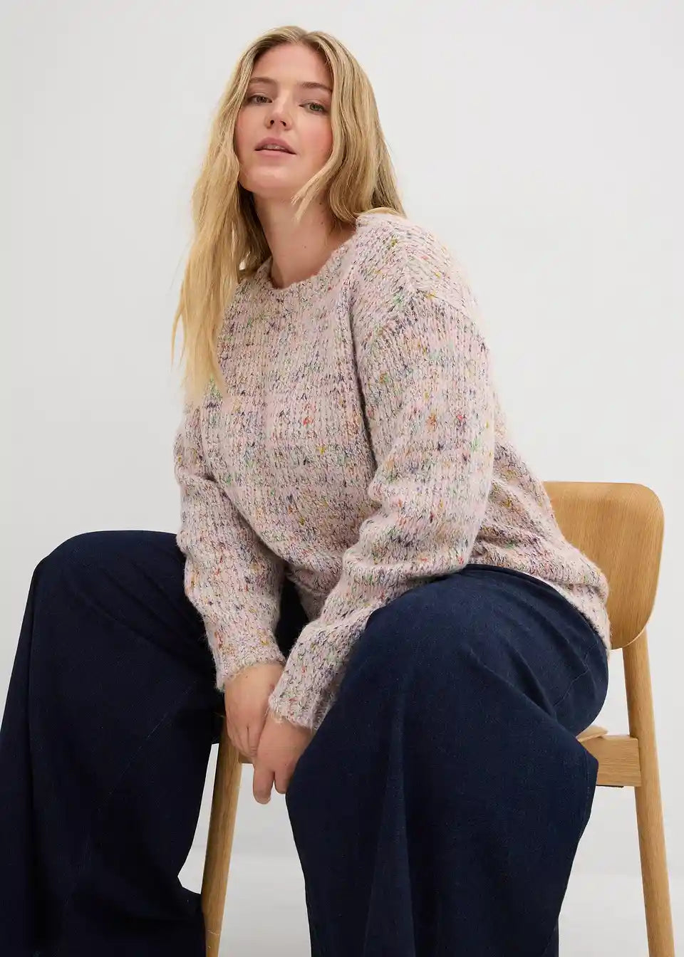 Pletena pulover s opuštenim ramenima i okruglim izrezom. Široki kroj.