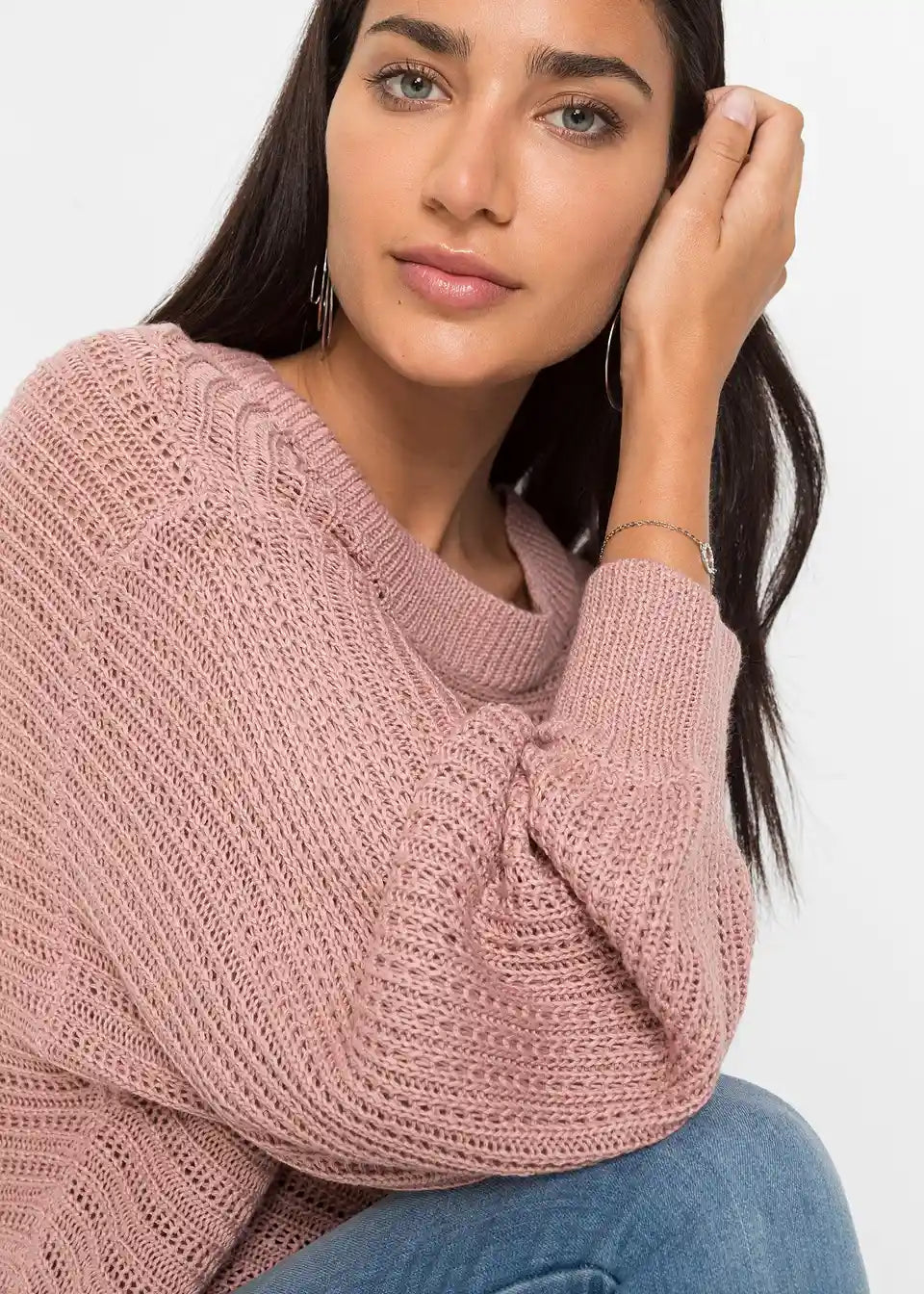 Pleteni pulover oversize kroja s rupičastim uzorkom