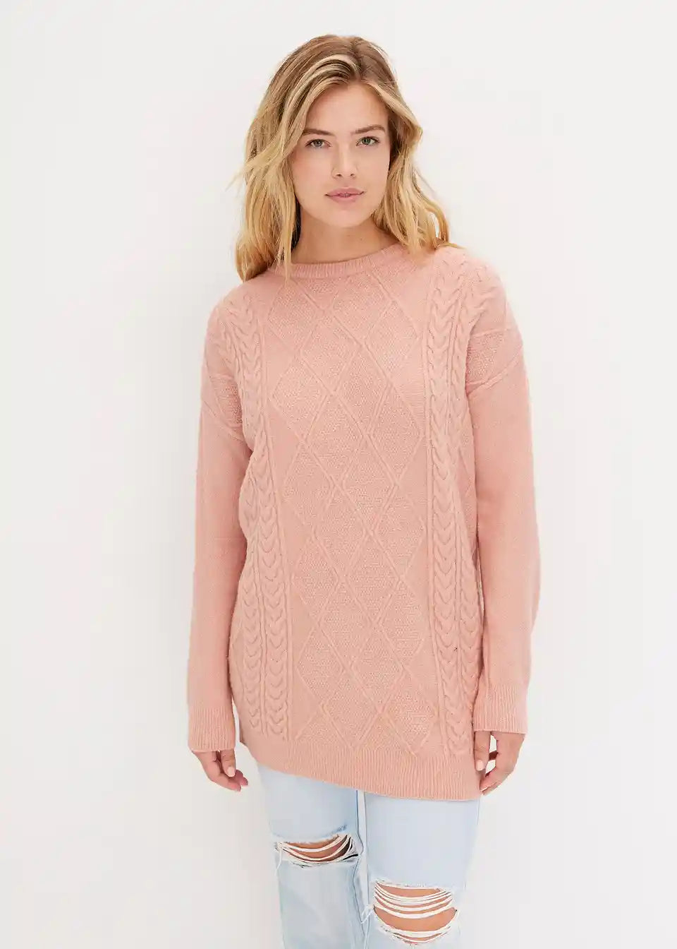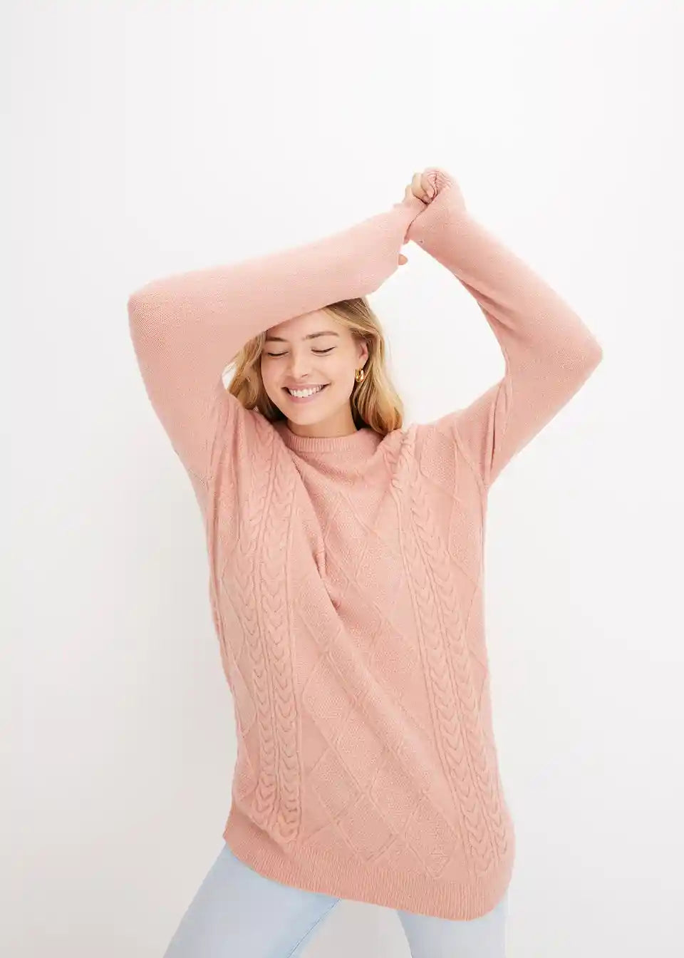 Ležeran oversize-pulover s prekrasnim pletenim uzorkom