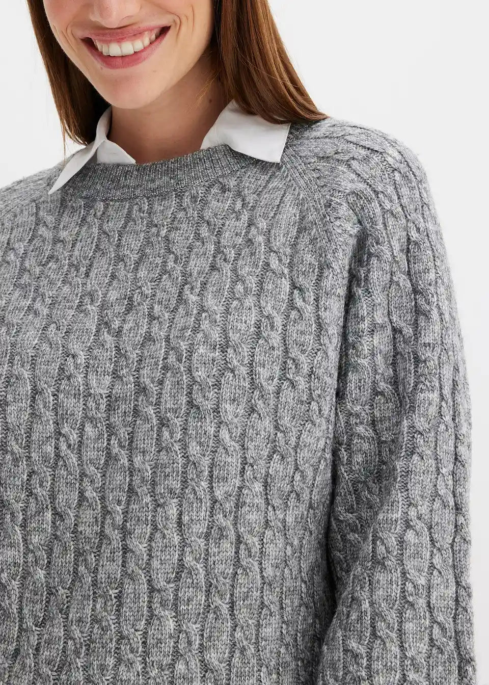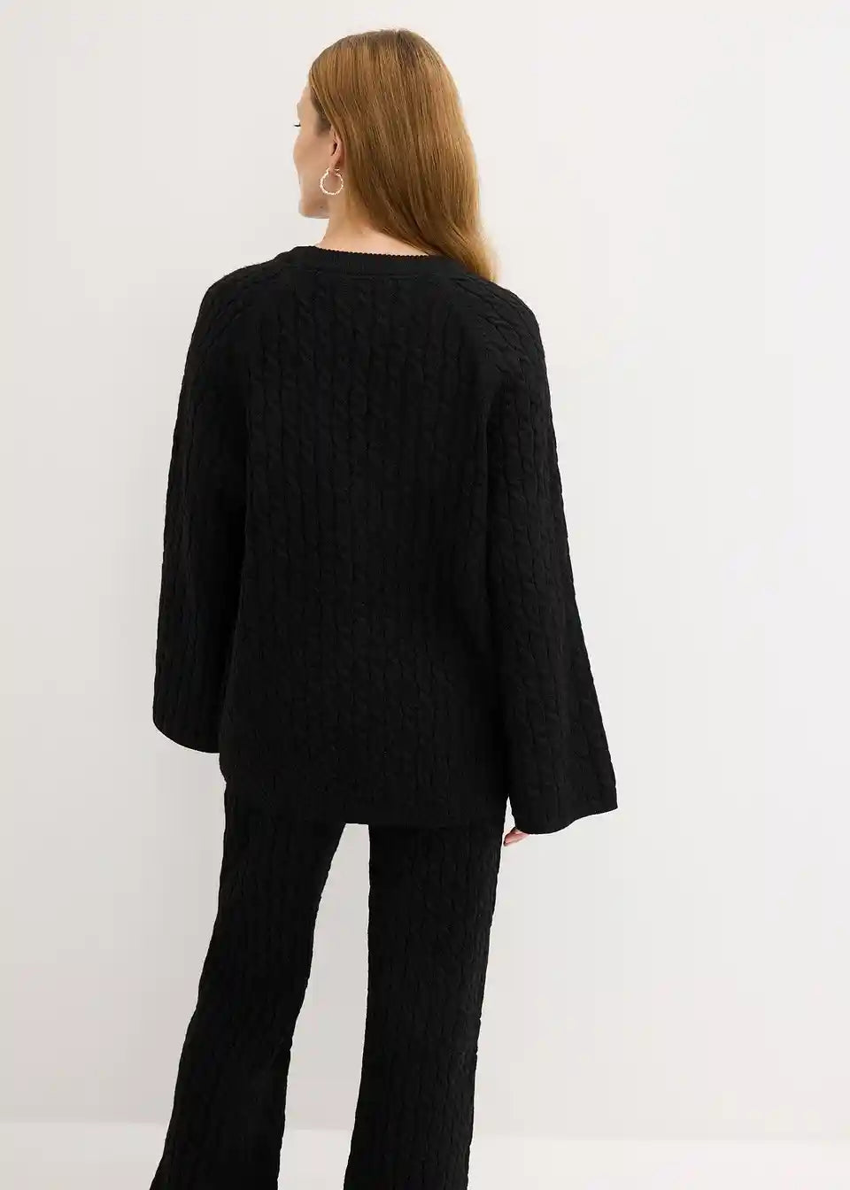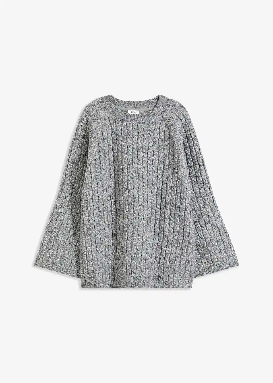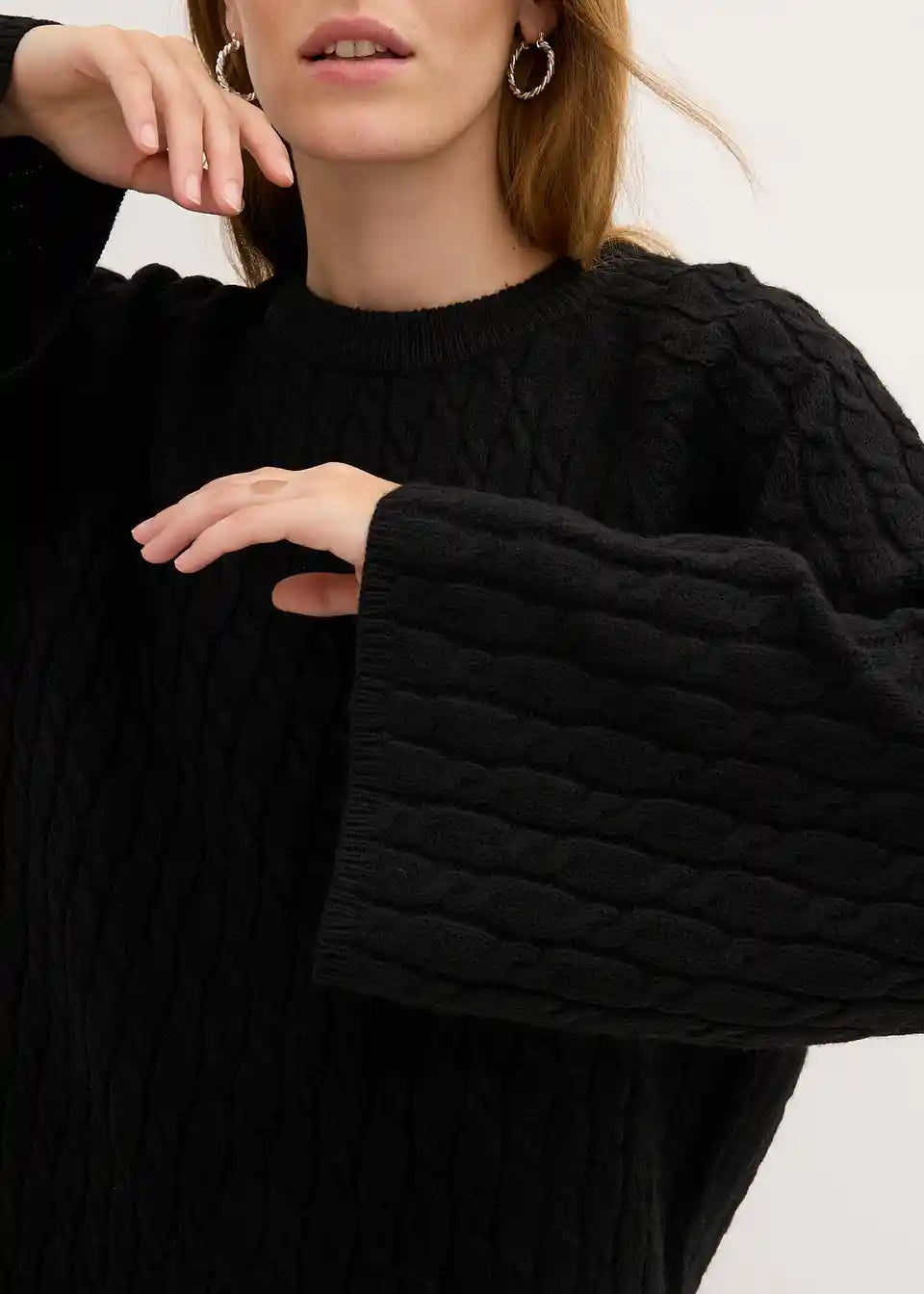 Široko krojen pulover s okruglim izrezom i uzorkom pletenice