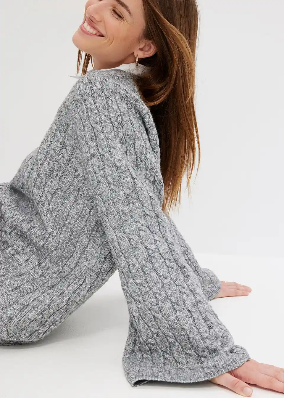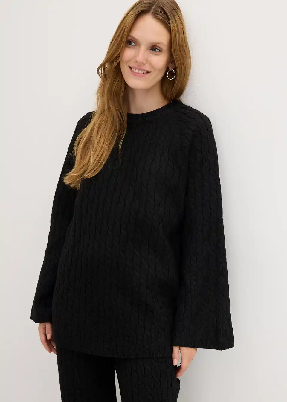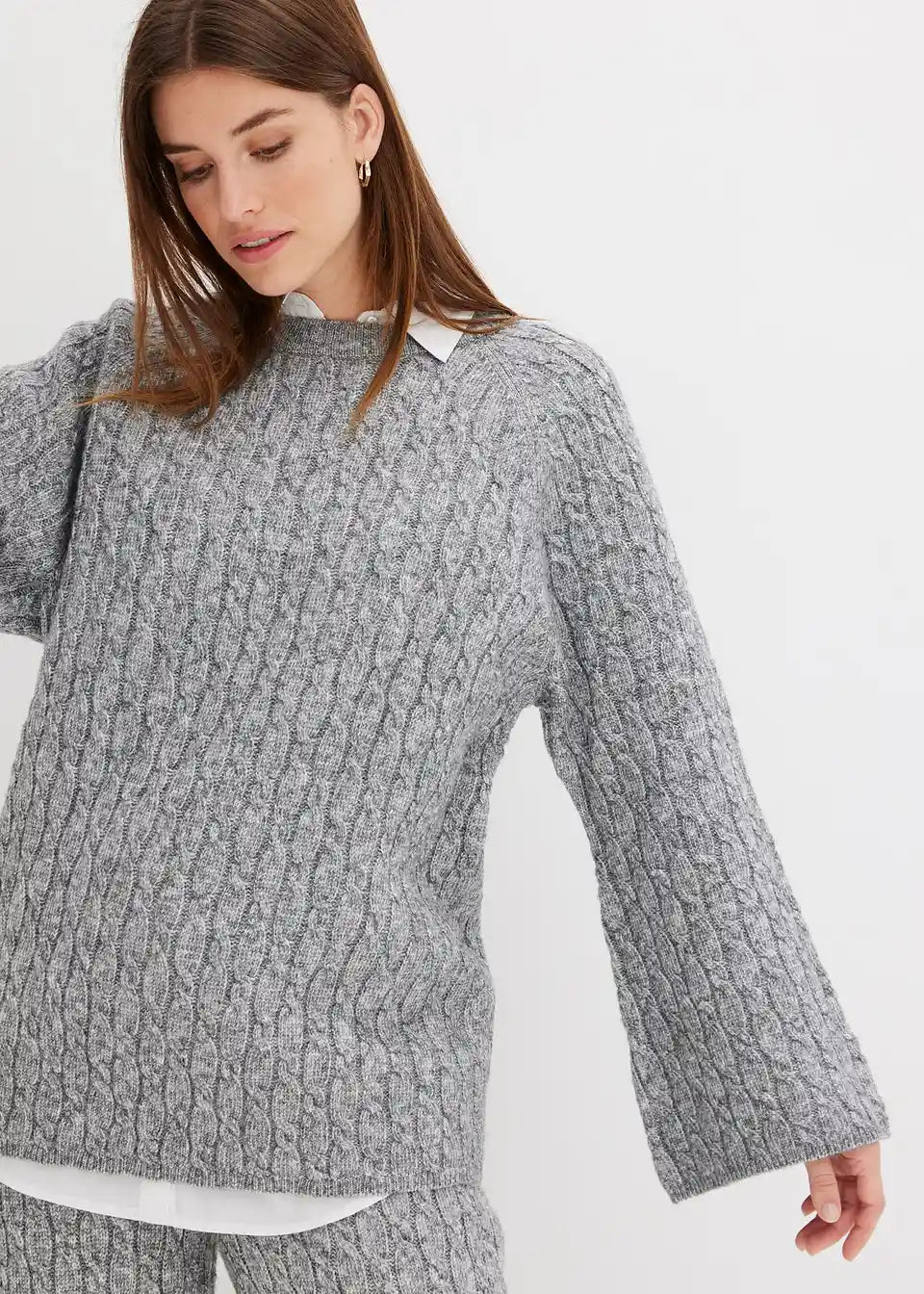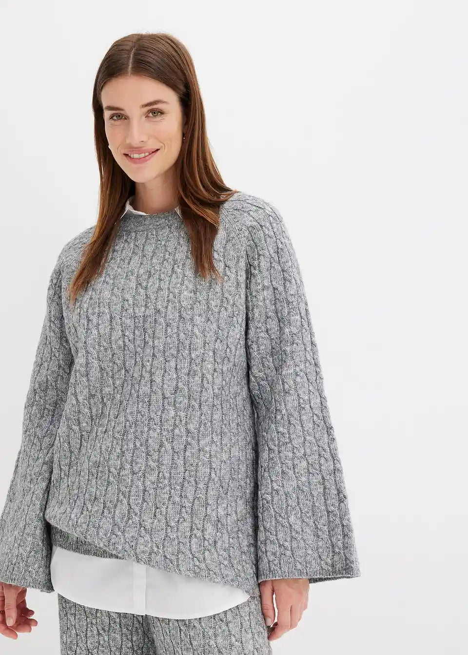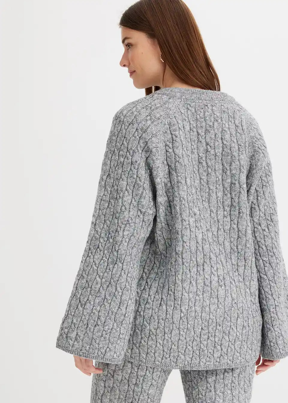 Široko krojen pulover s okruglim izrezom i uzorkom pletenice