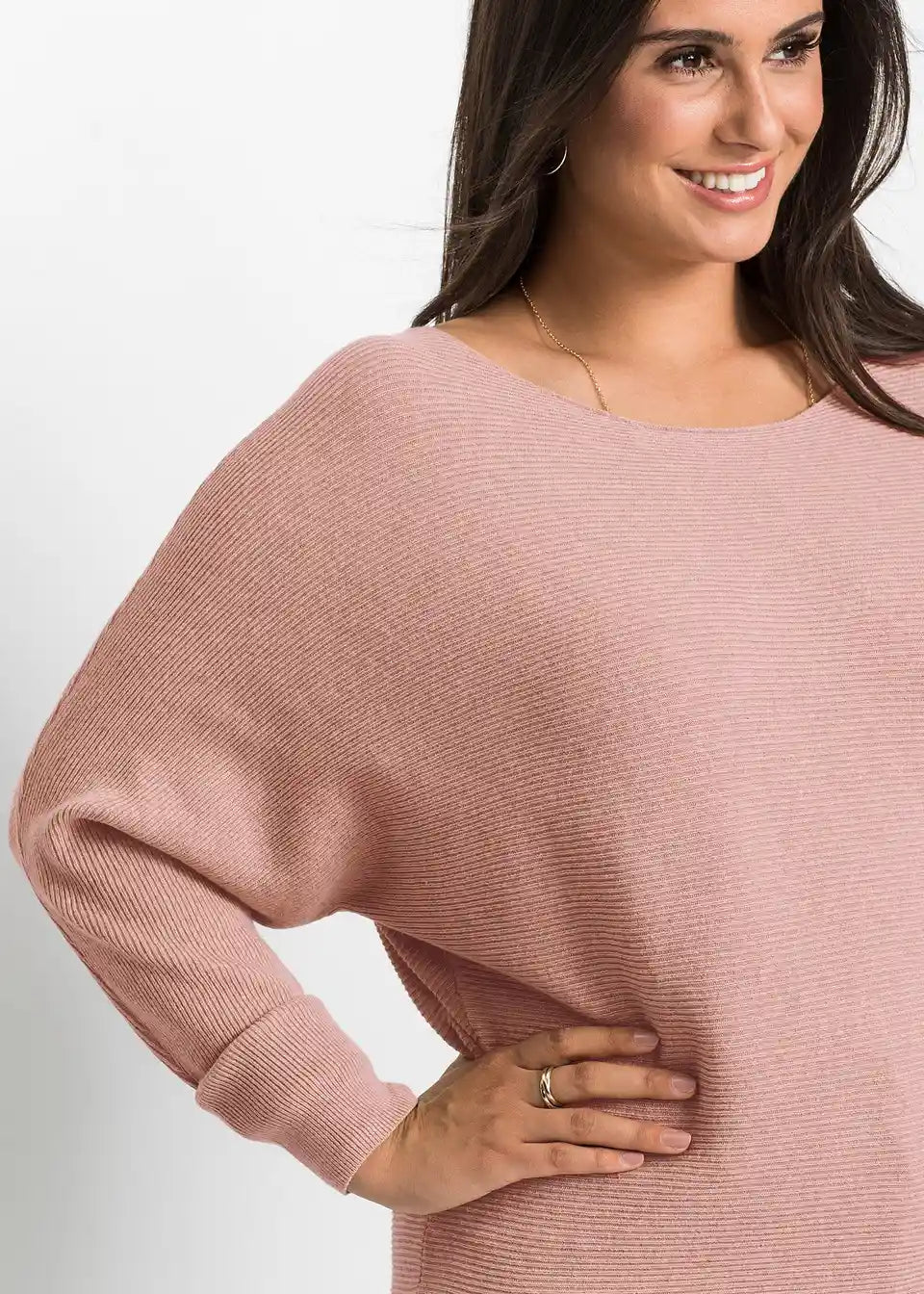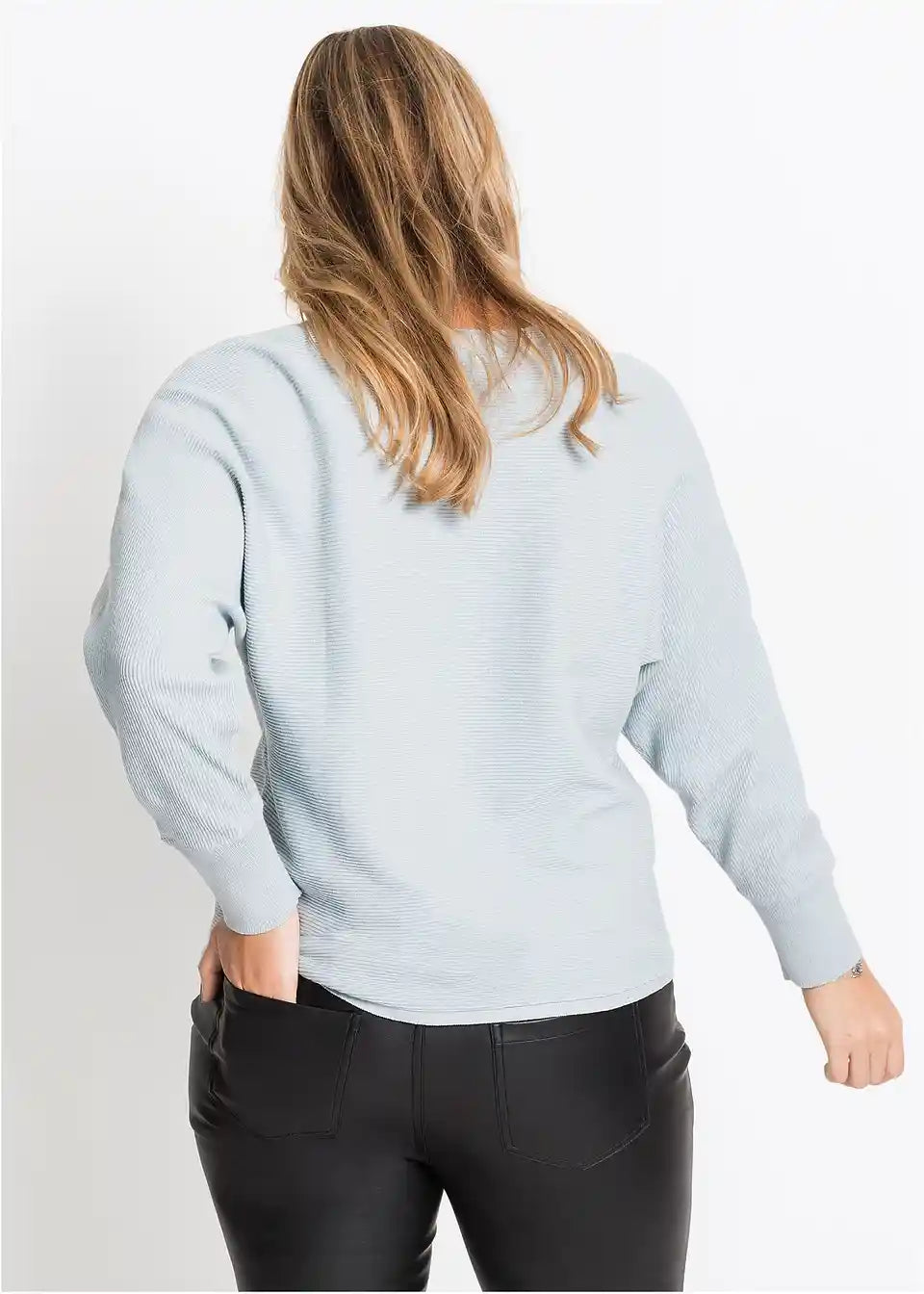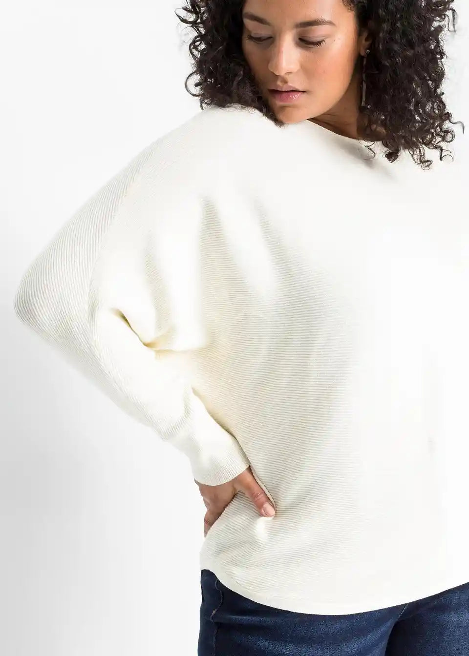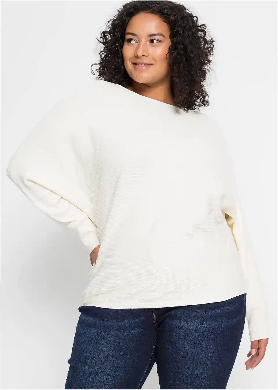 Ležeran rebrasti pulover s širokim izrezom