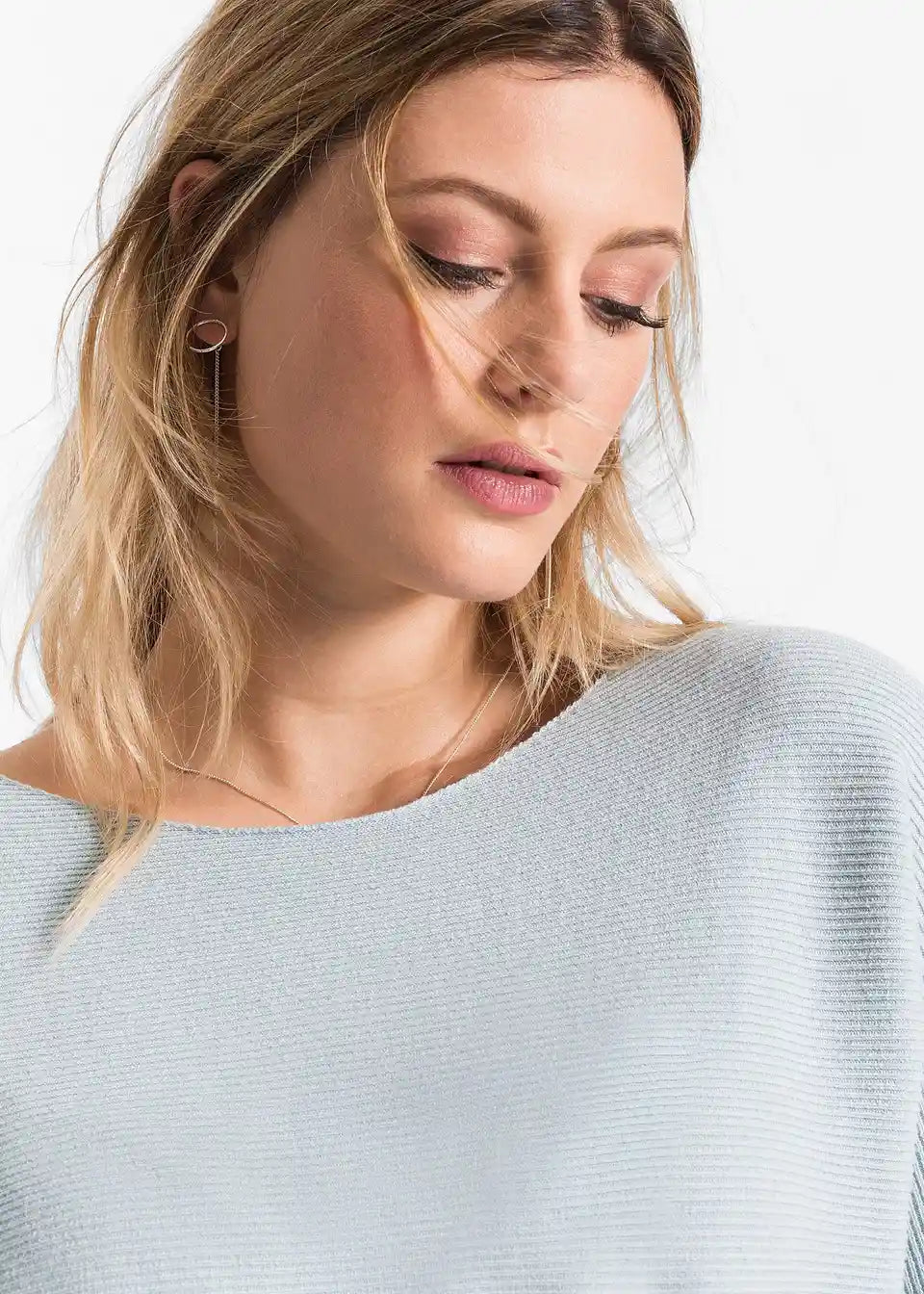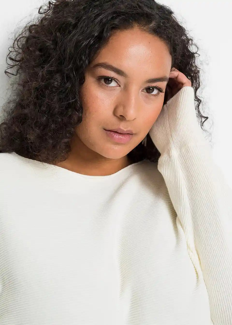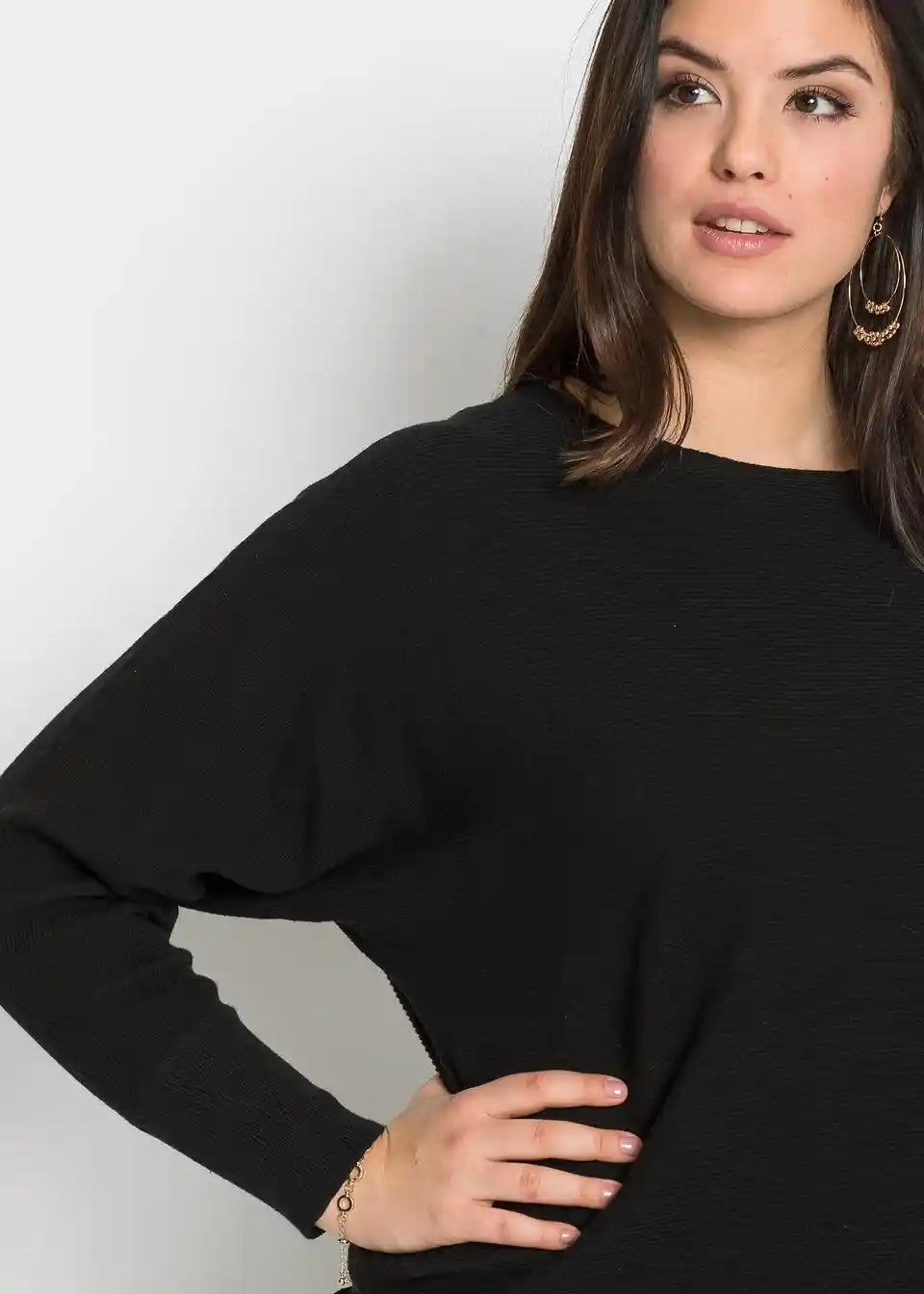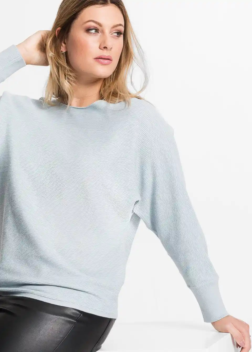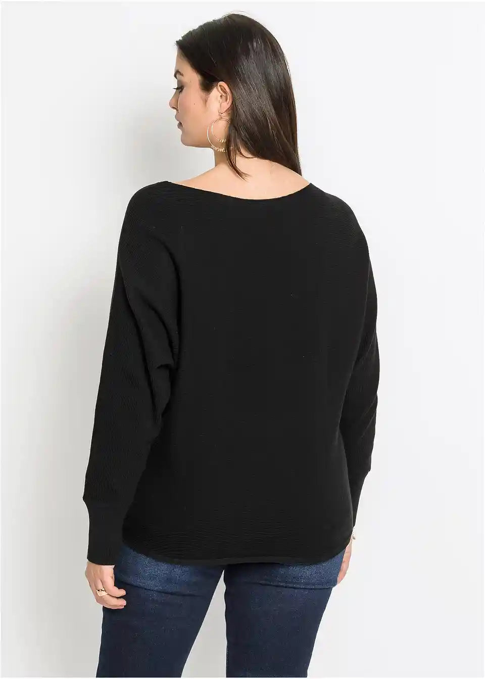 Ležeran rebrasti pulover s širokim izrezom