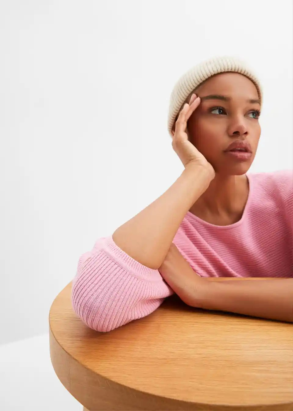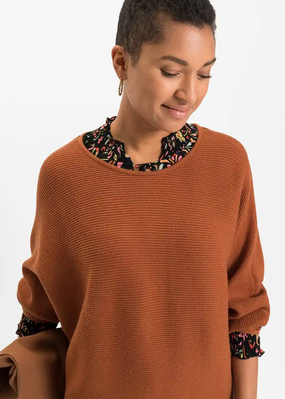 Oversize rebrasti pulover od materijala s udjelom viskoze