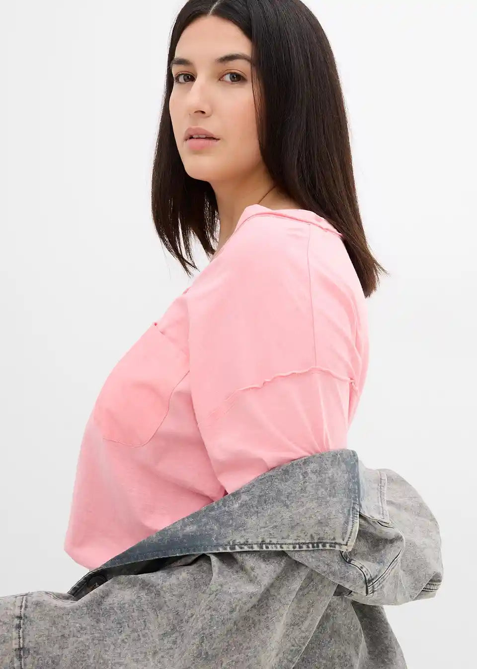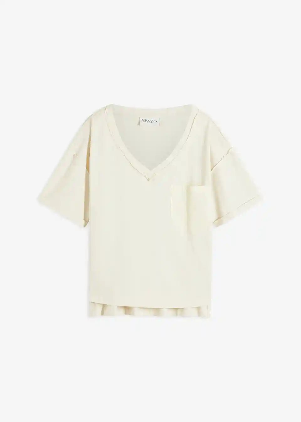 Trendovski oversized T-Shirt s V-izrezom i našivenim džepom