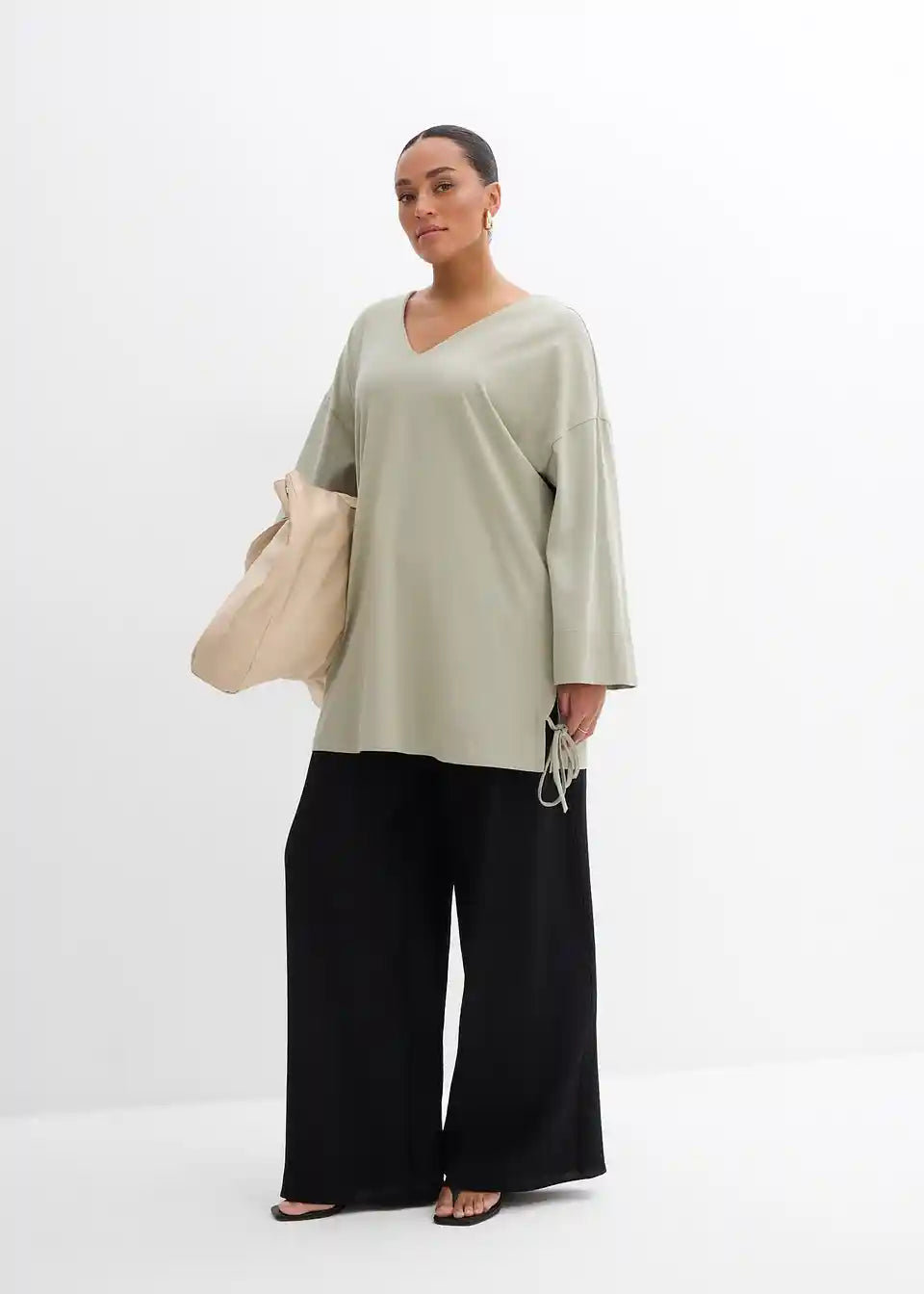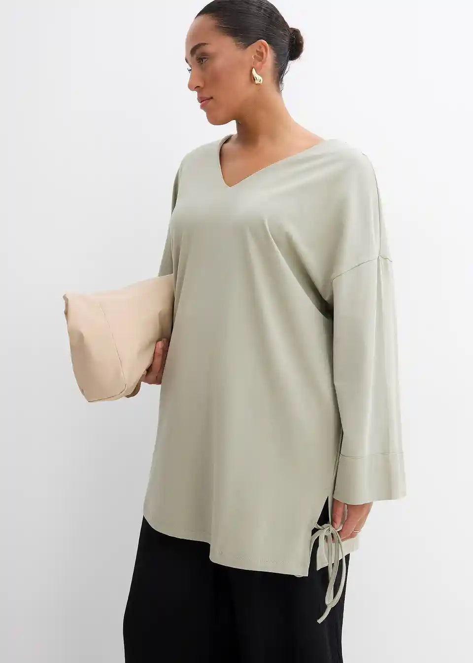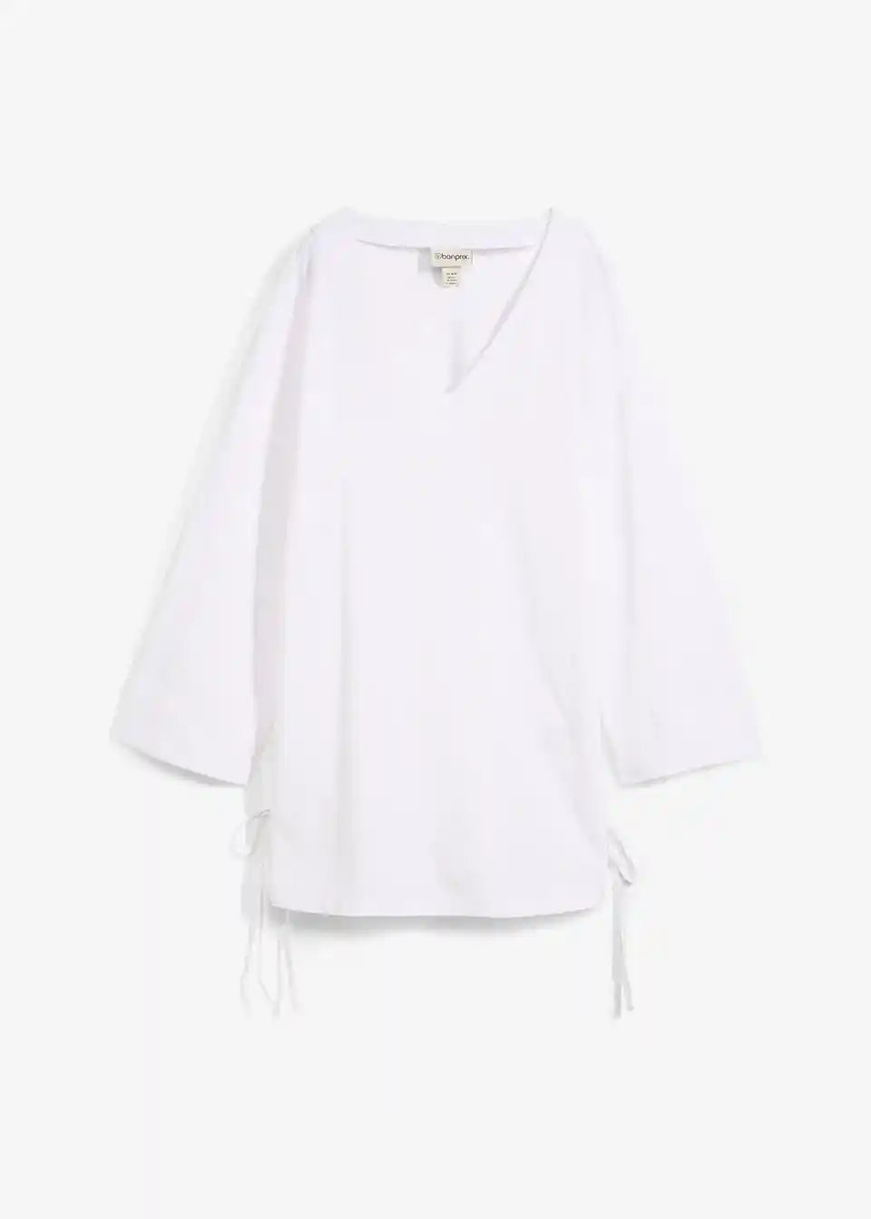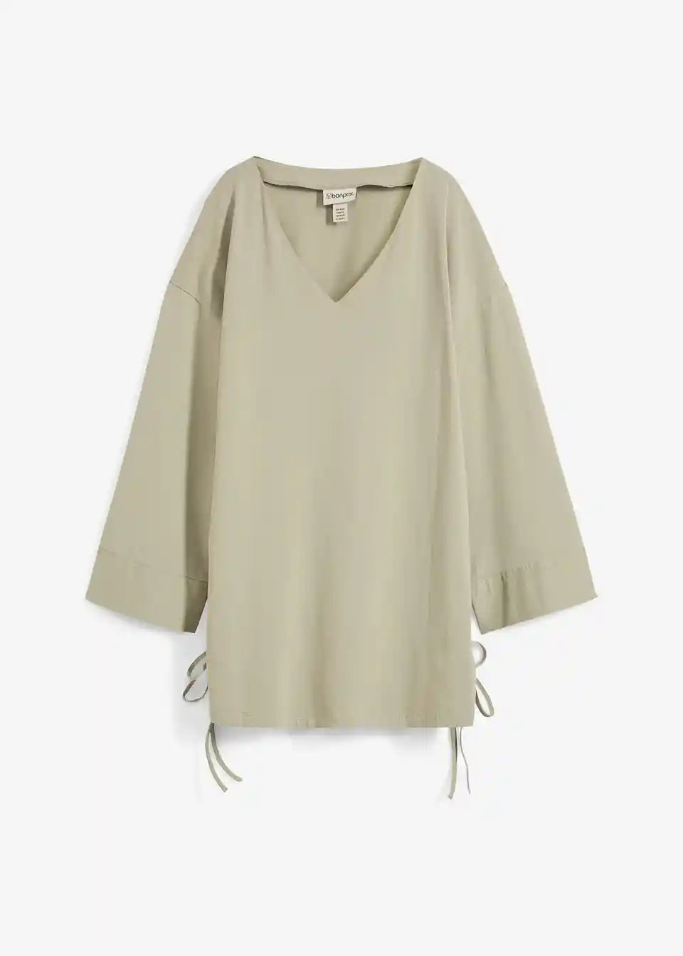 Oversize Shirt s V-izrezom, 3/4 rukavima i bočnim prorezima na rubu s vrpcama