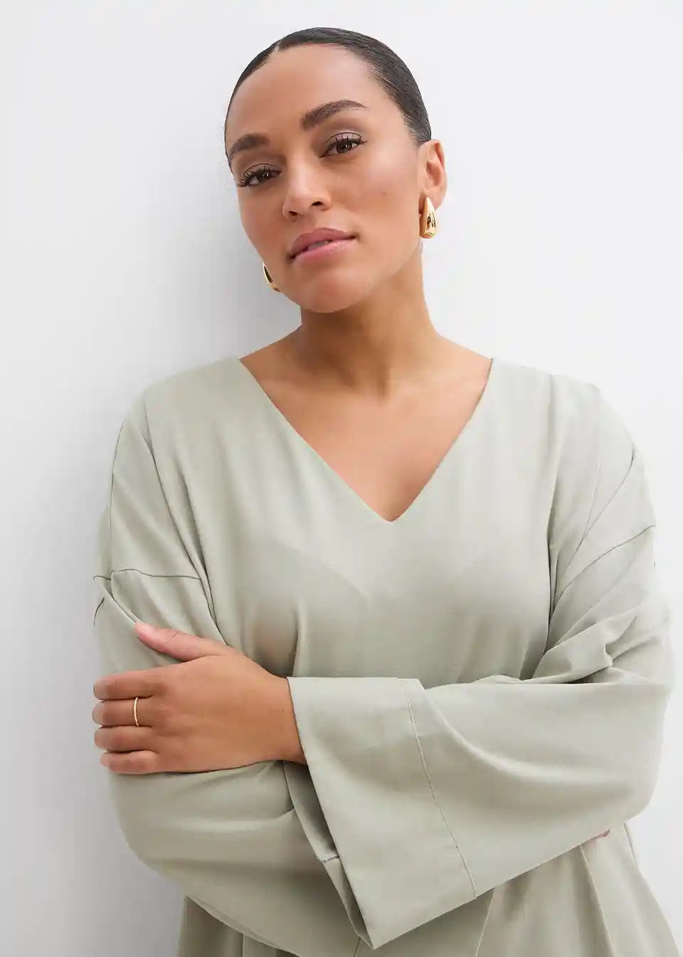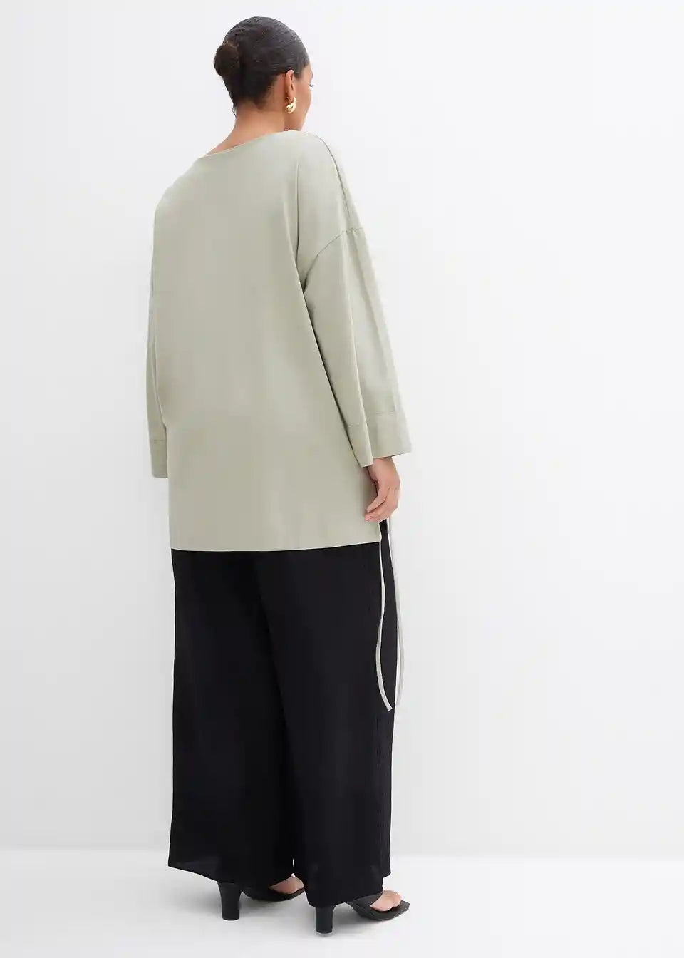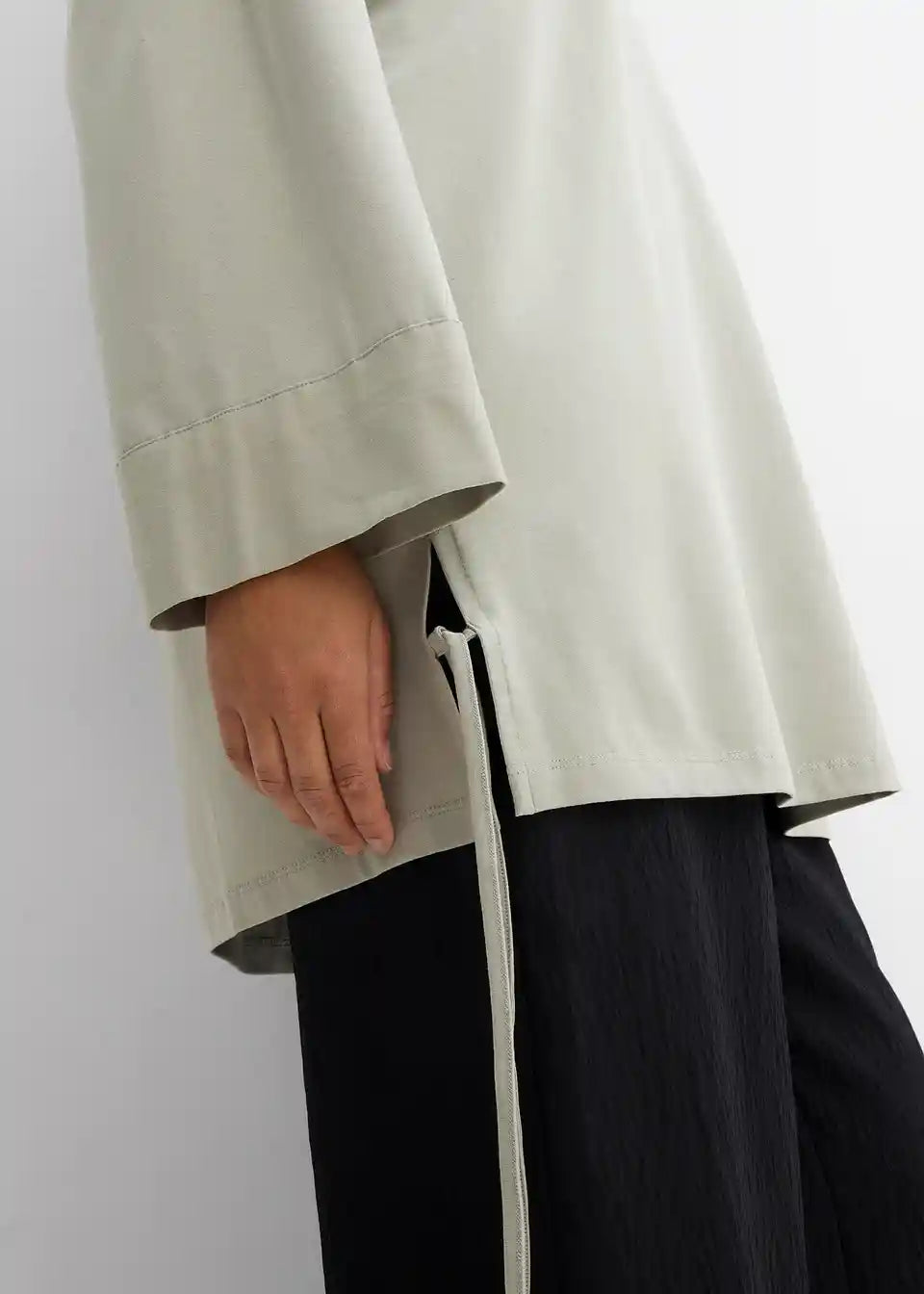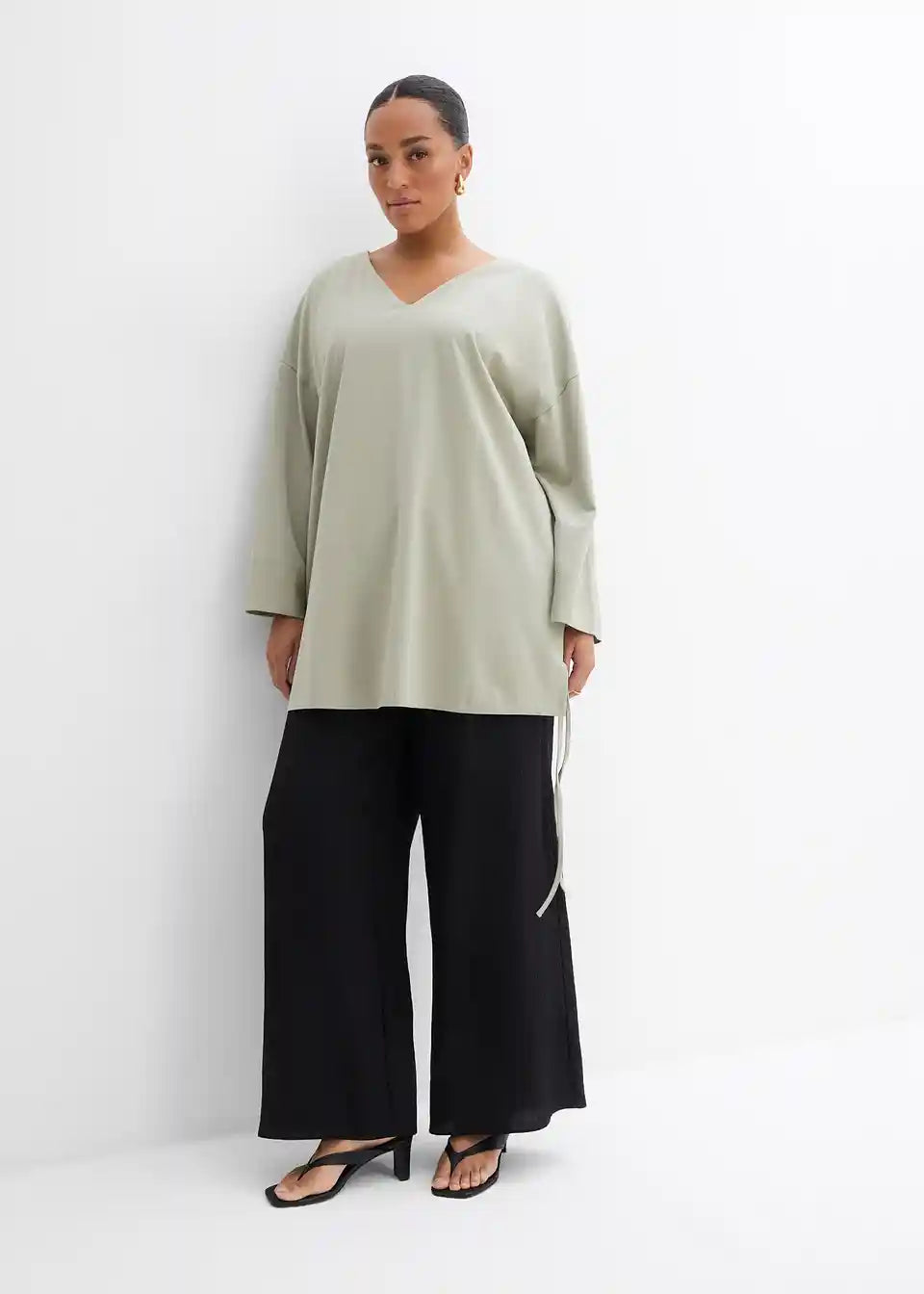 Oversize Shirt s V-izrezom, 3/4 rukavima i bočnim prorezima na rubu s vrpcama