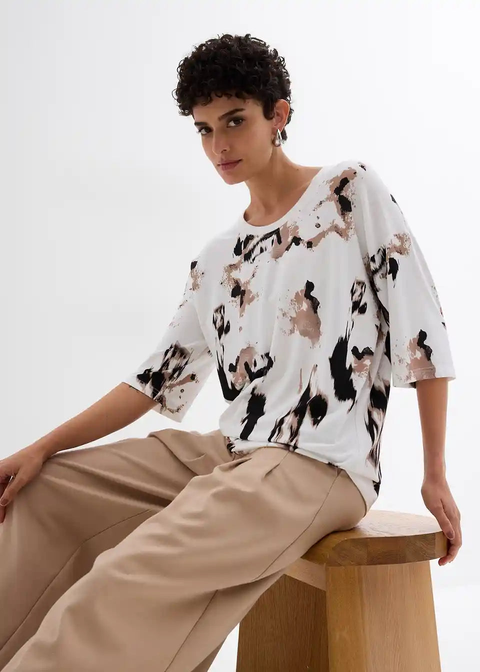 Ležerna majica od fine viskoze sa širokim izrezom i 3/4 rukavima