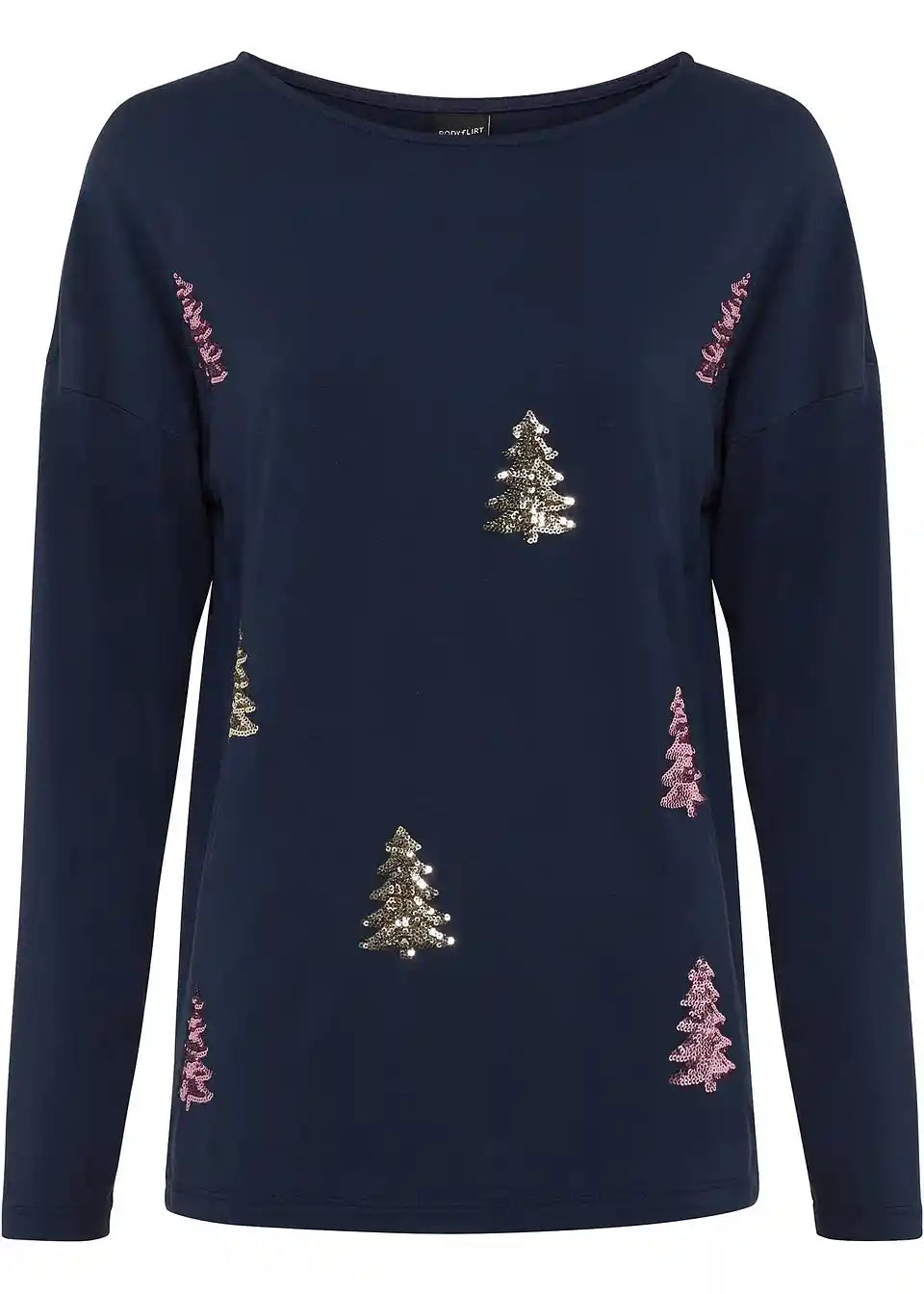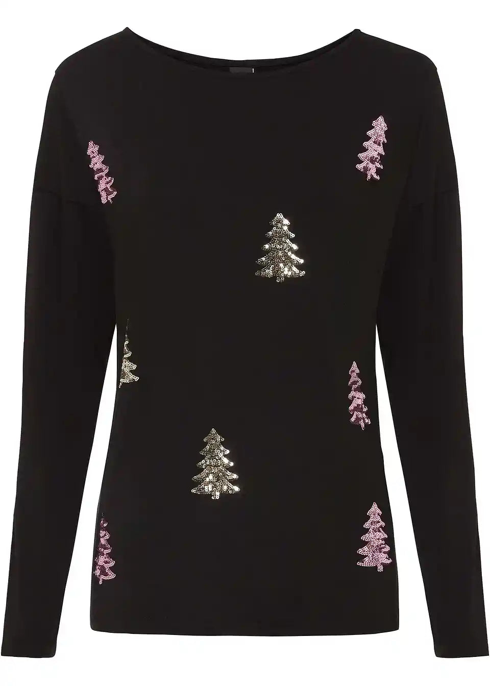 Ova atraktivna majica s rafiniranim krojem zasigurno privlači poglede. Sjajne šljokice ukrašavaju prednju stranu. Majica se zahvaljujući izvrsnom kroju može nositi na razne načine. Duljina u veličini 36/38 cca 68 cm.