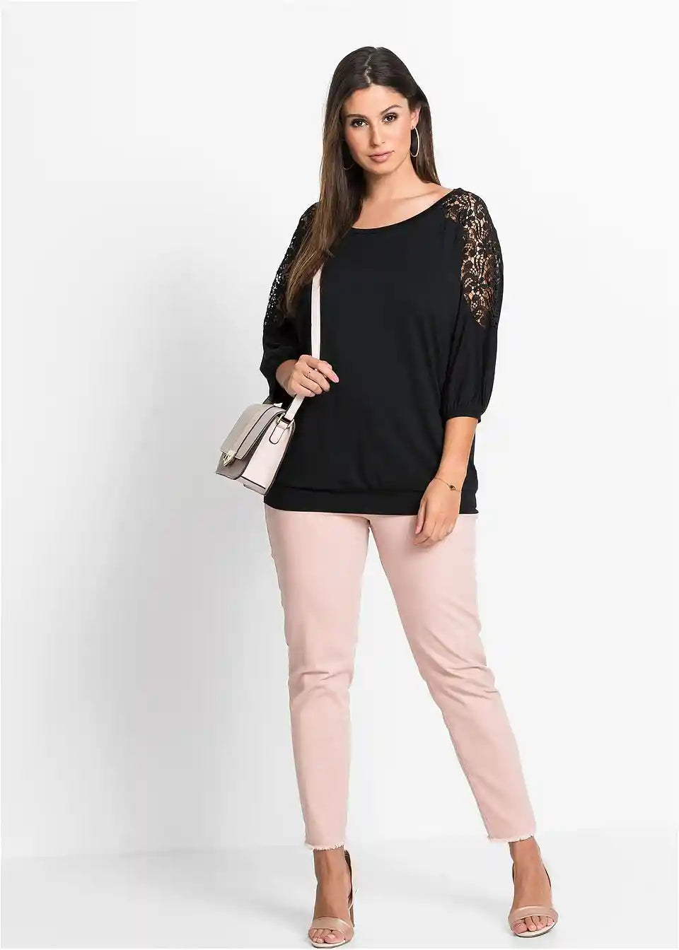 Atraktivan oversize-shirt s ukrasnom čipkom na rukavima.