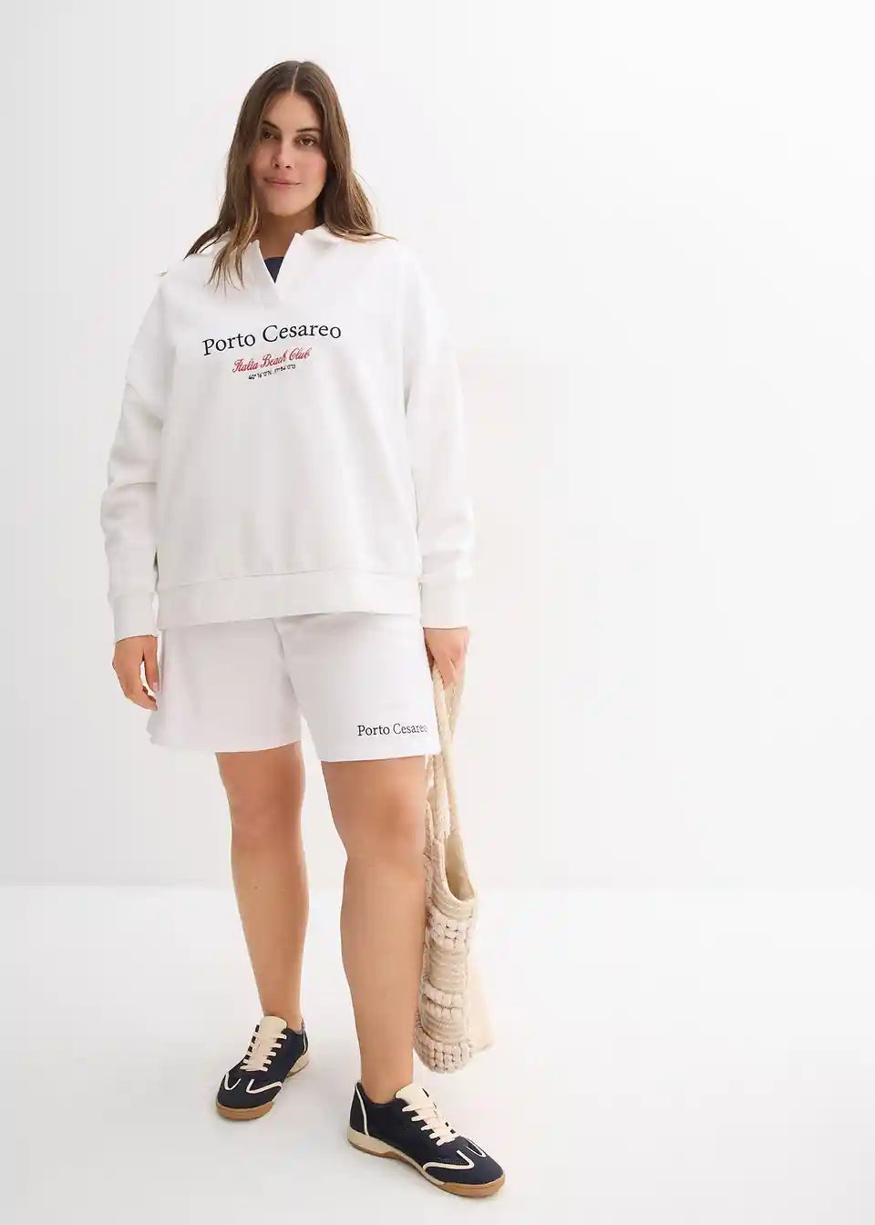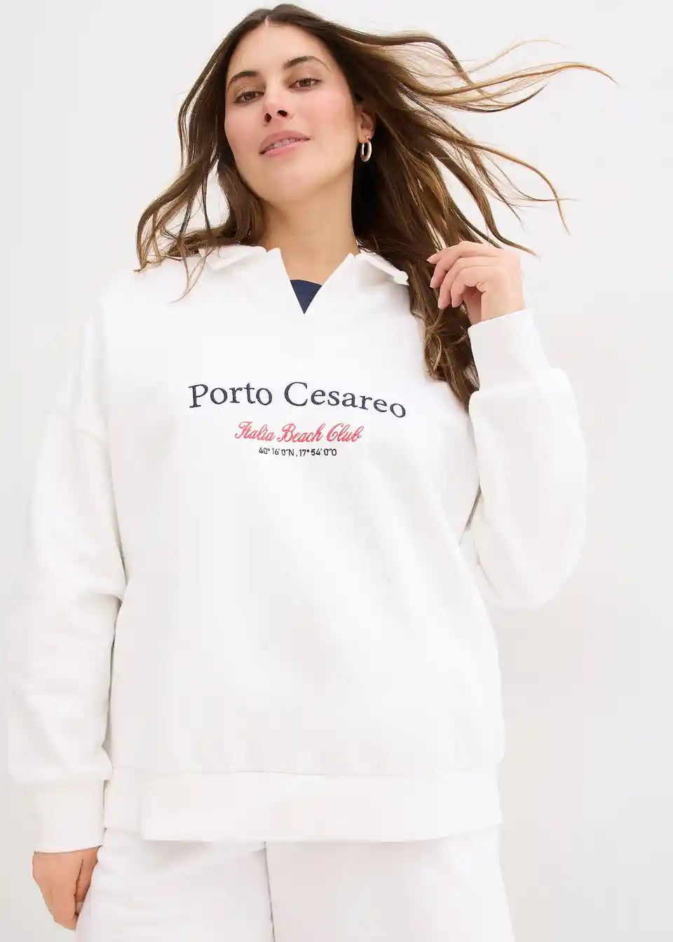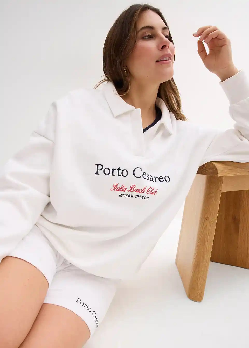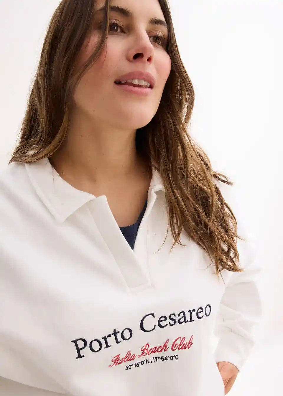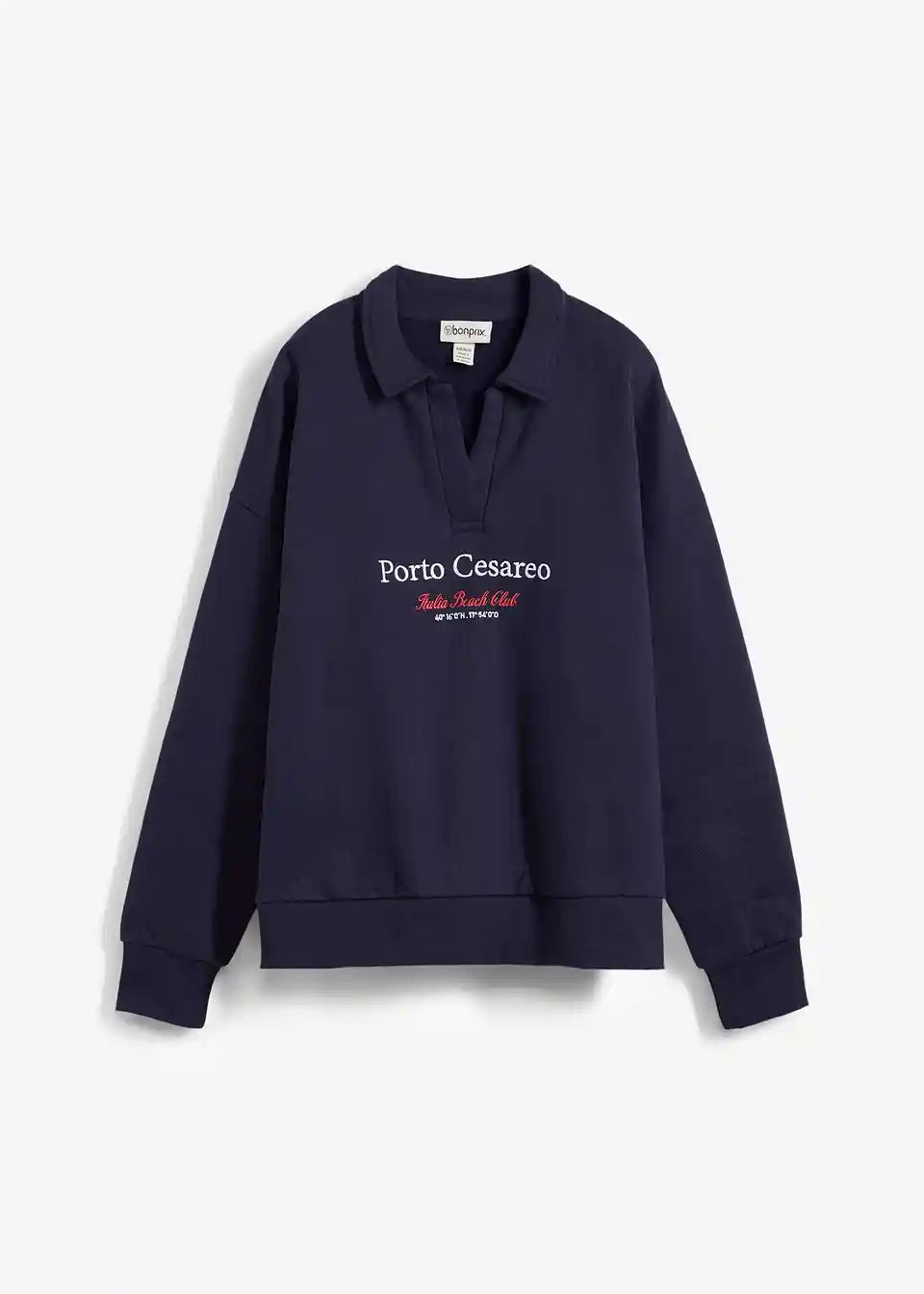 Sweatshirt s polo ovratnikom i vezom - oversize kroj