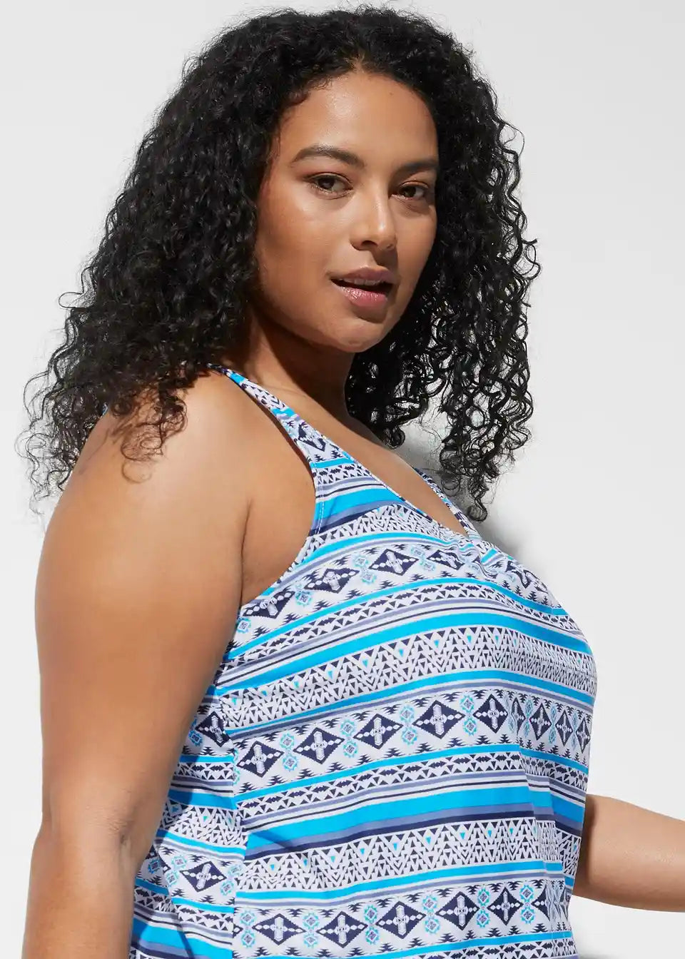 S podstavom za grudi i integriranim mekanim košaricama. Elastična traka ispod grudi oko cijelog opsega.