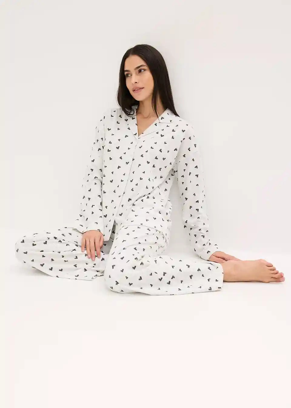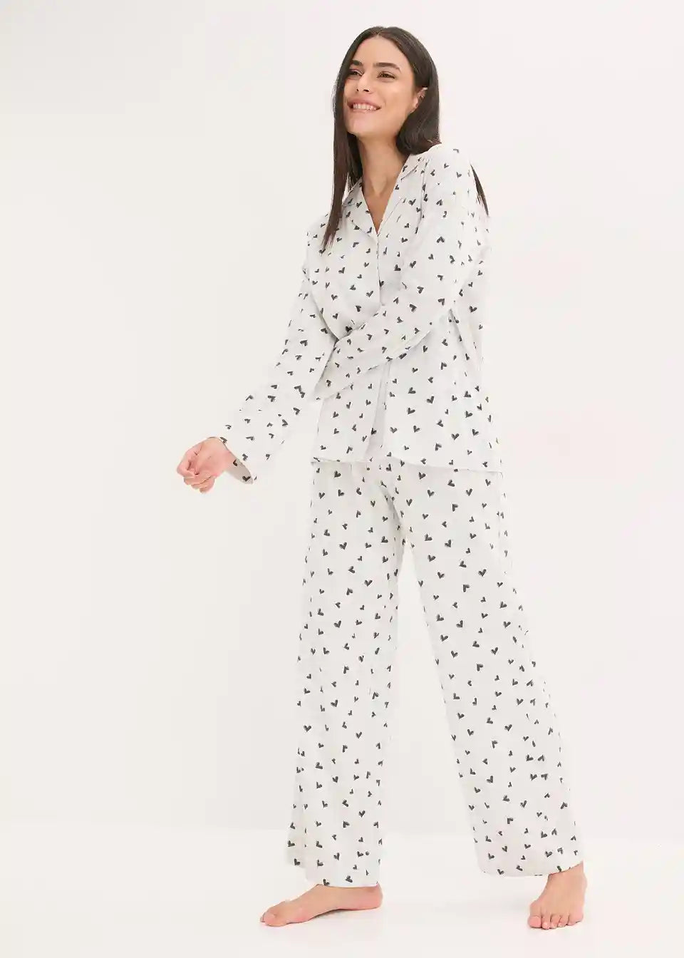 Oversized pidžama s printom srca i širokim rukavima i nogavicama