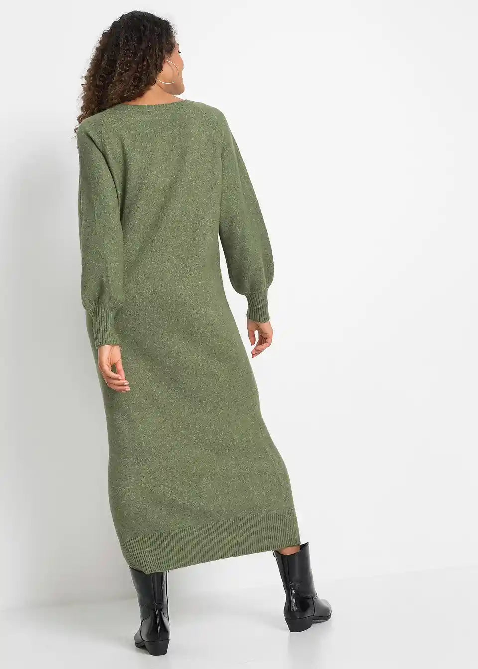 Ležerna Oversized pletena haljina maksi duljine s lagano baloniranima rukavima