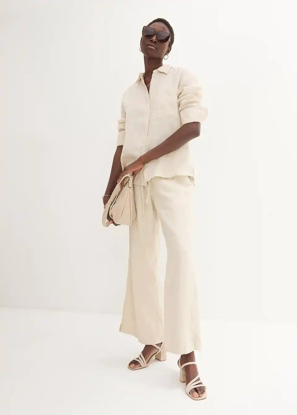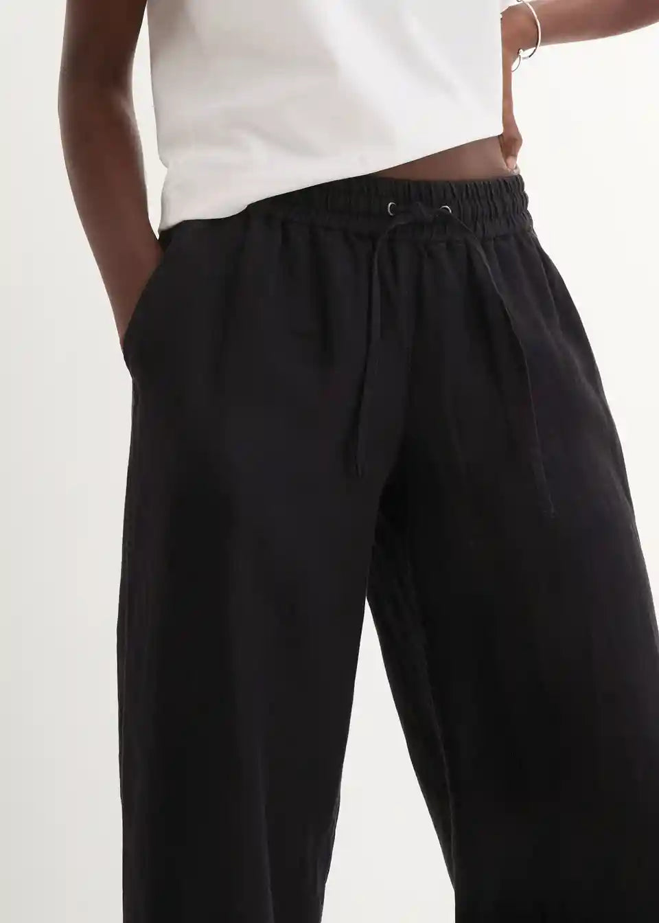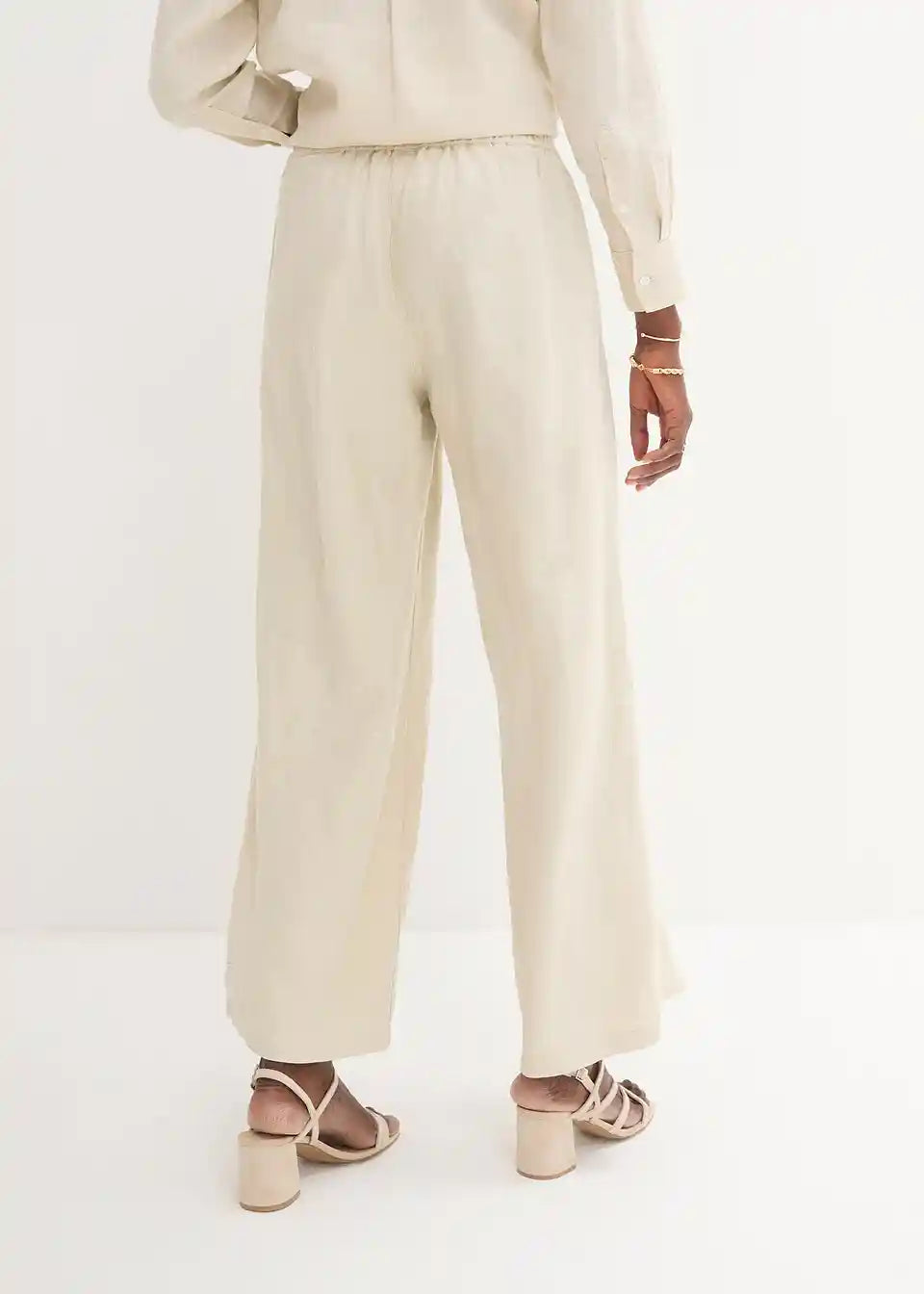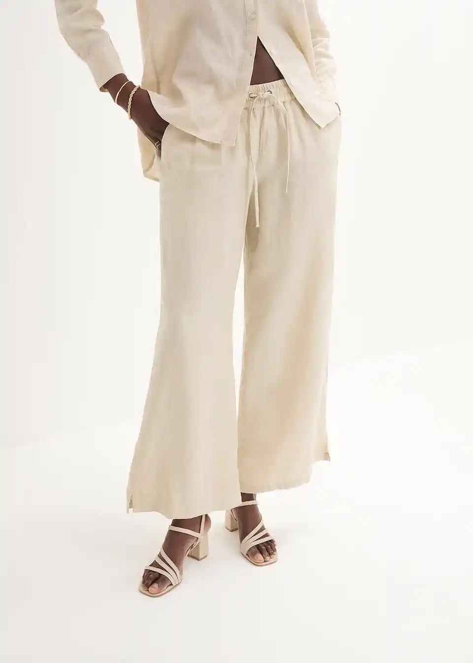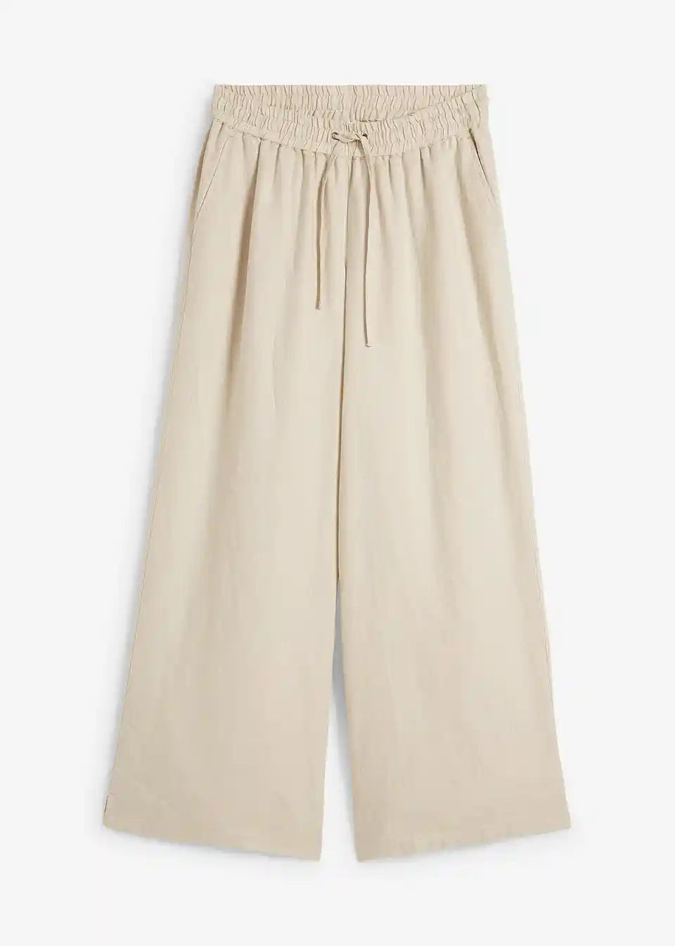 udobne lanene hlače širokih nogavica, dužina do gležnja