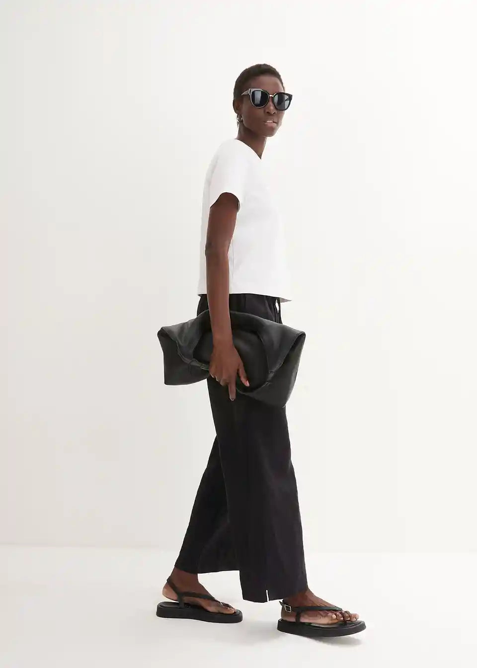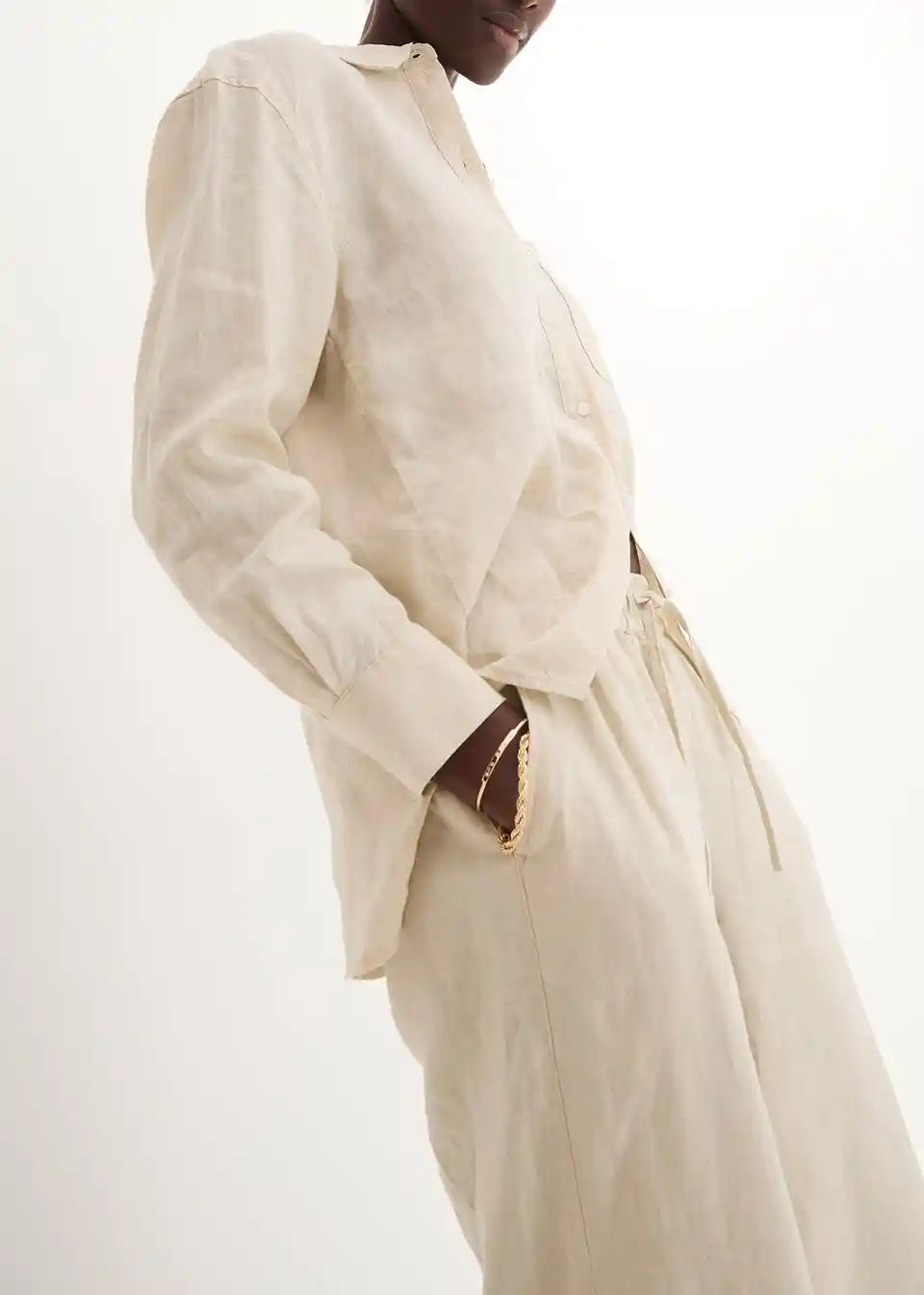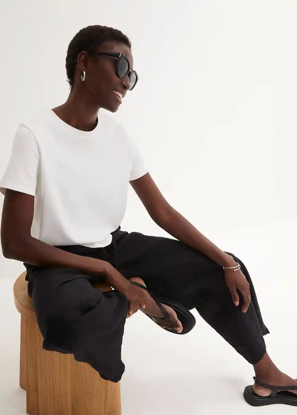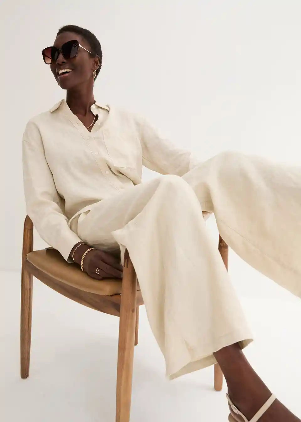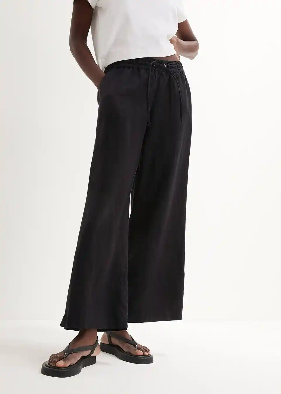 udobne lanene hlače širokih nogavica, dužina do gležnja