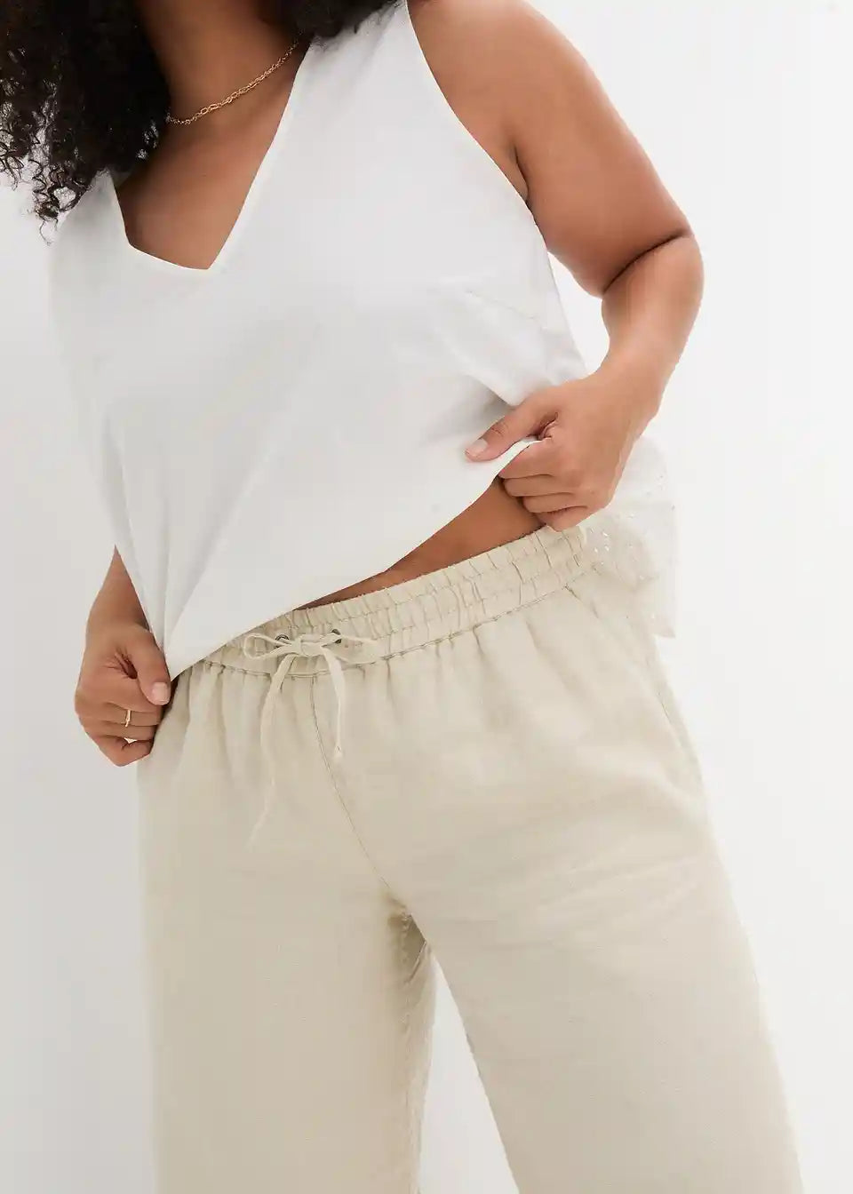 udobne lanene hlače s širokim nogavicama, dužine do gležnja