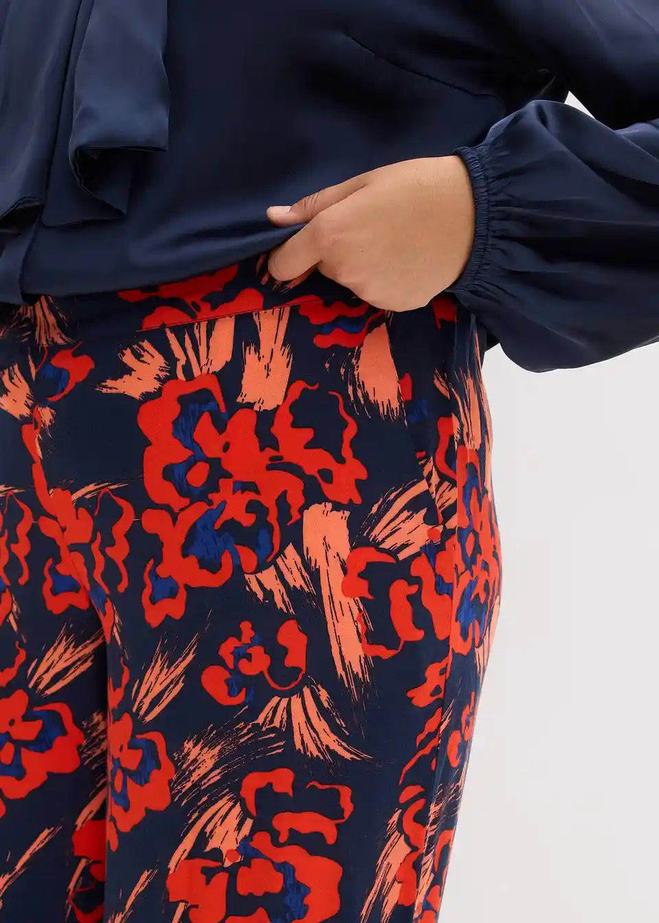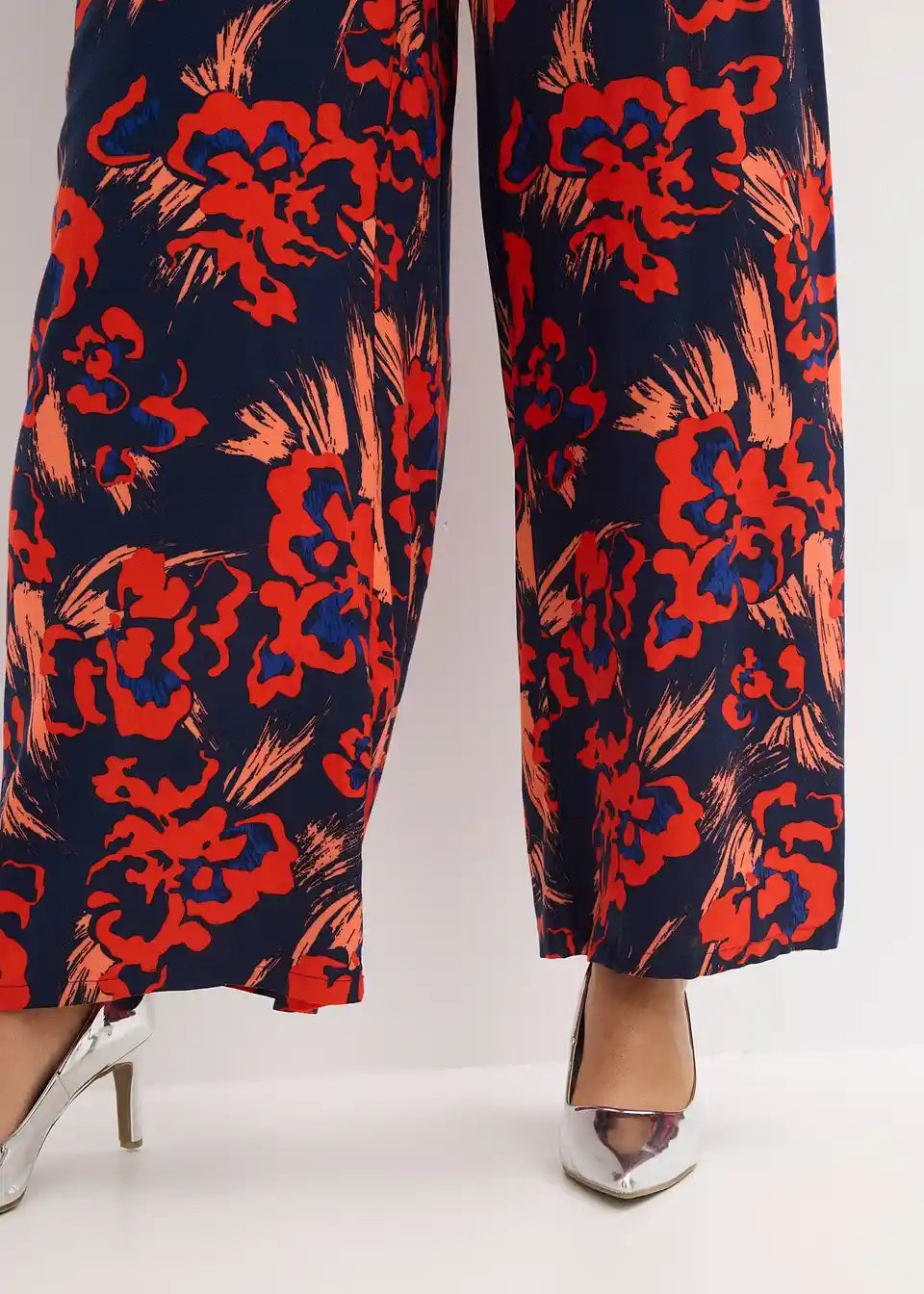 široko krojene Palazzo-hlače od laganog viskoznog krepa s floralnim printom i elastičnom trakom straga