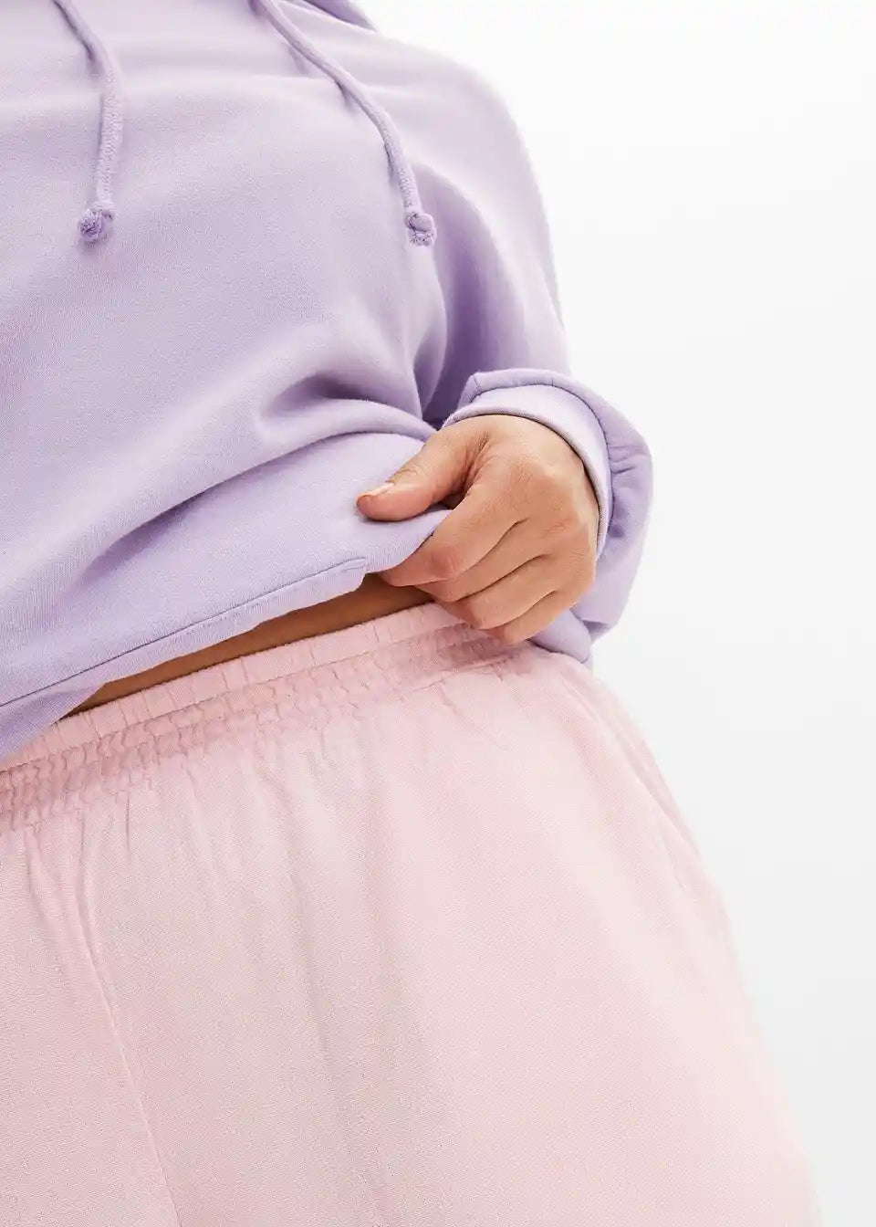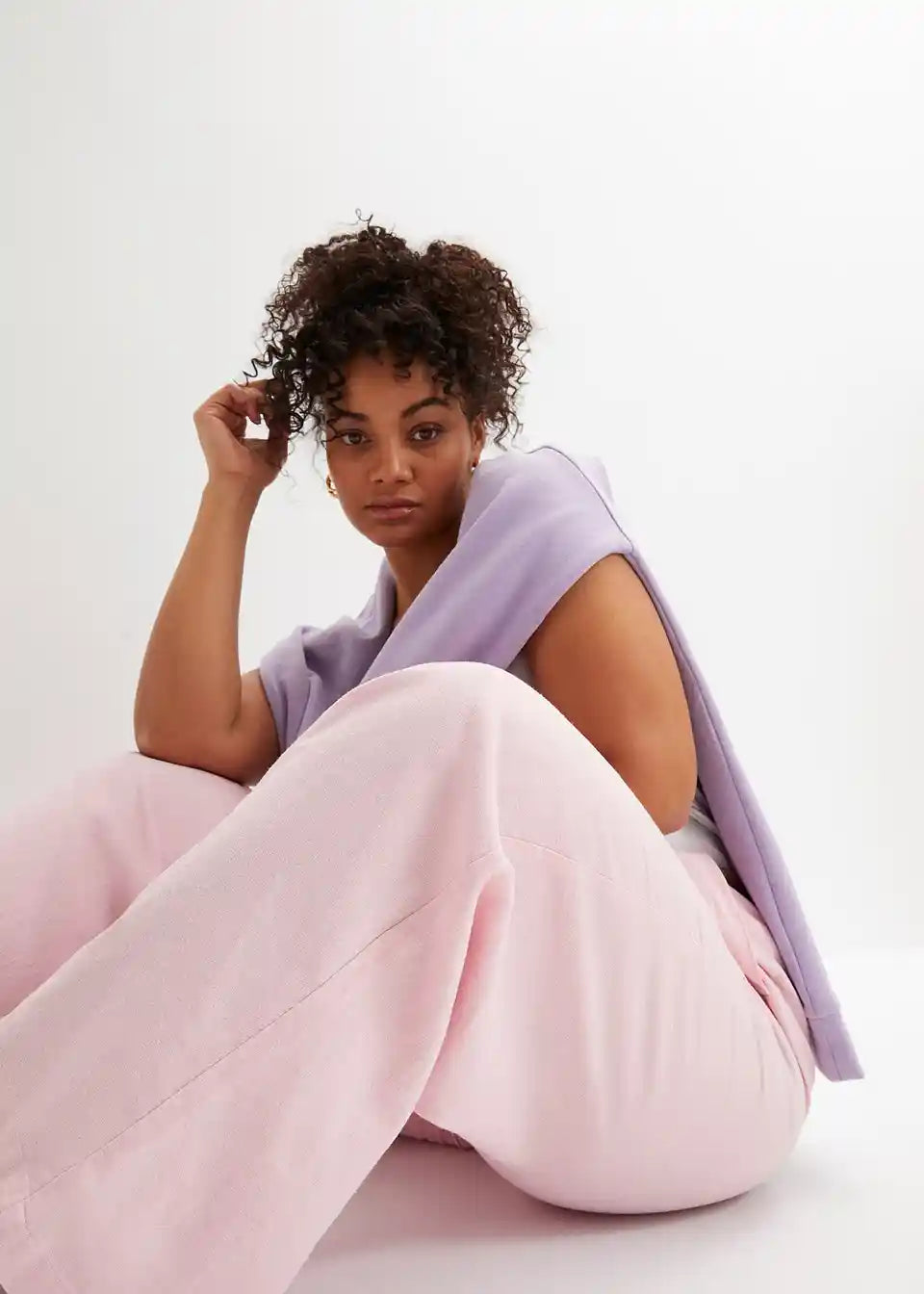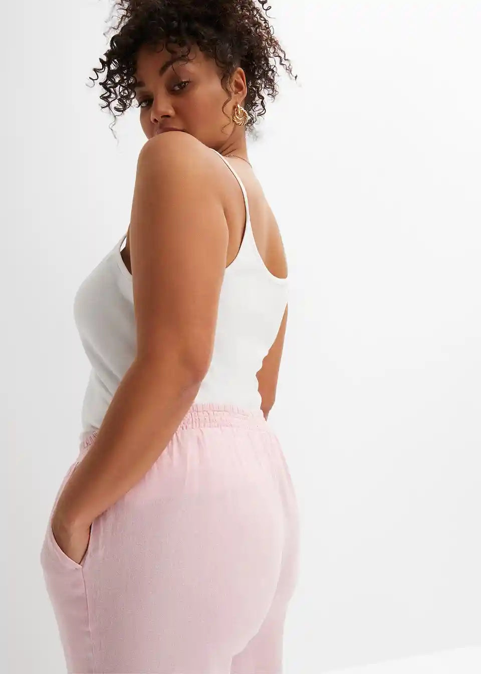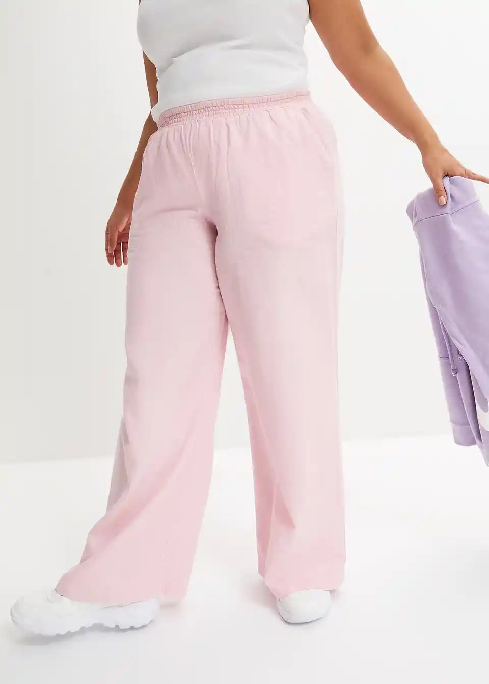 Široke lanene hlače s elastičnim pojasom i bočnim džepovima