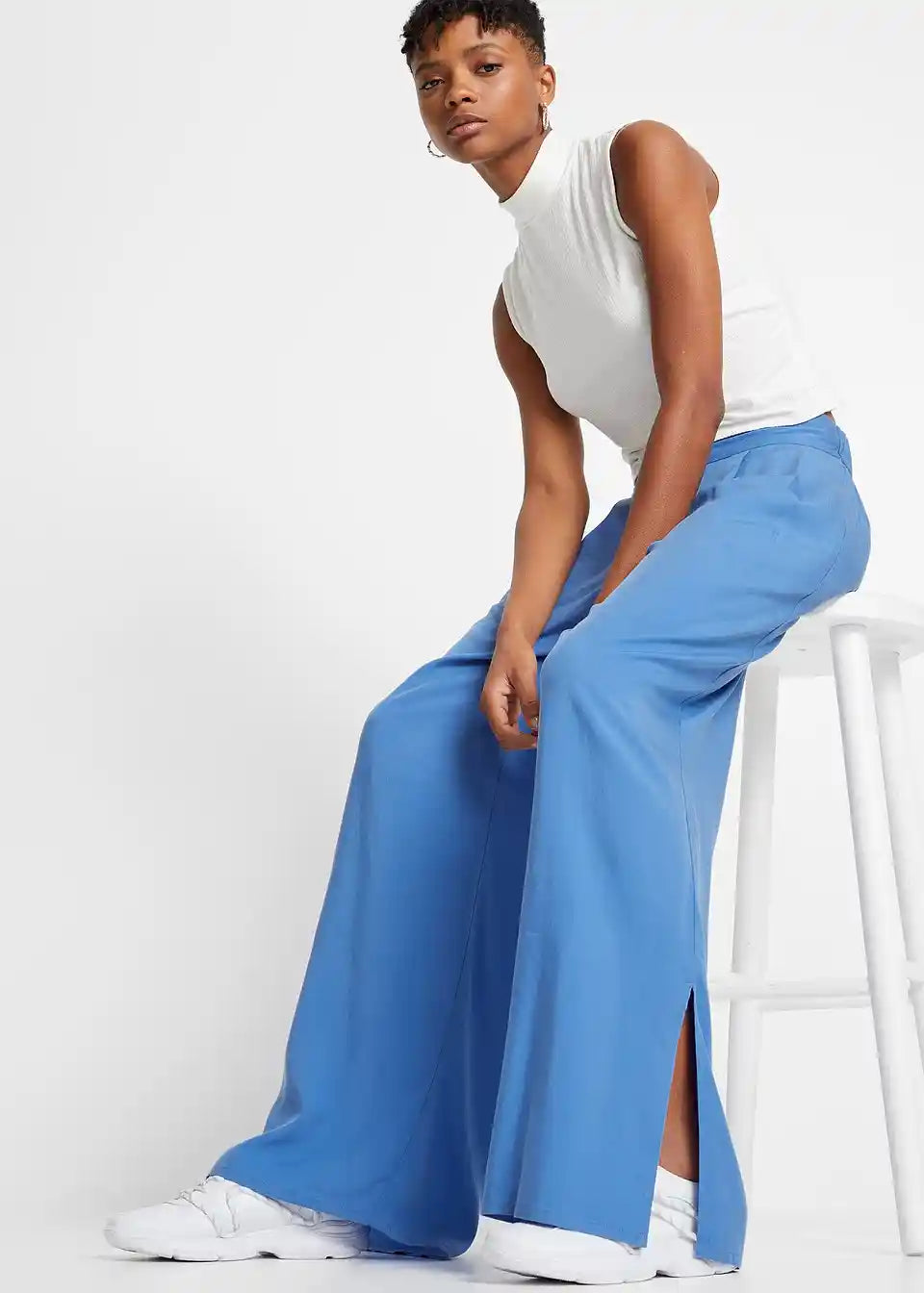 Udobne hlače širokih nogavica s širokim pojasom