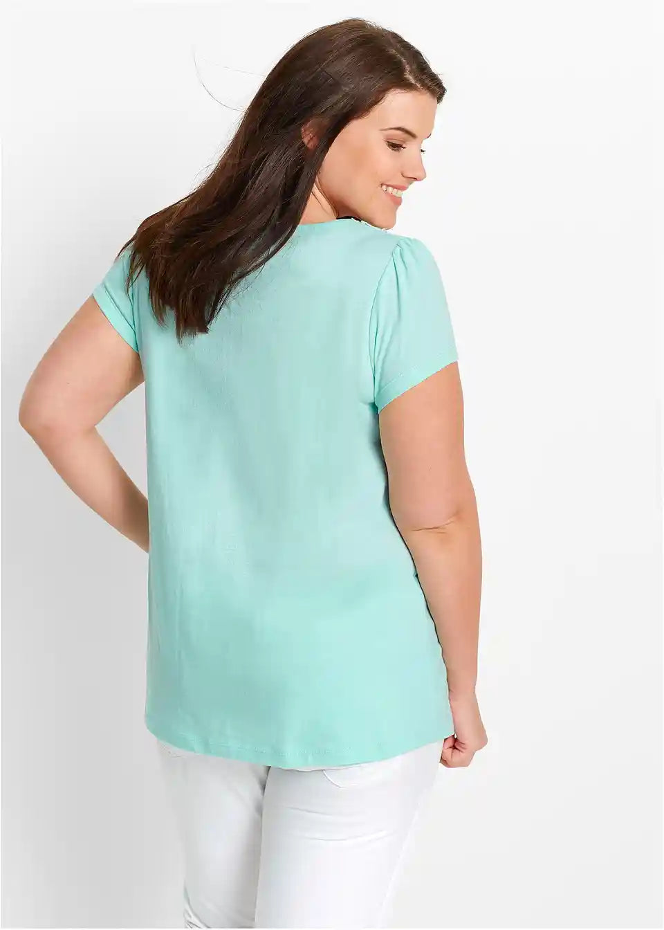 Prekrasan ukras od čipke daje ovoj majici s kratkim rukavima iz kolekcije bpc razigranu notu. Blago nabrani dio ispod šava na prsima osigurava atraktivan izgled ove majice. Duboki okrugli izrez omogućava mjesto za odgovarajući nakit. Osim toga, lagano trapezasti kroj povoljno naglašava figuru.