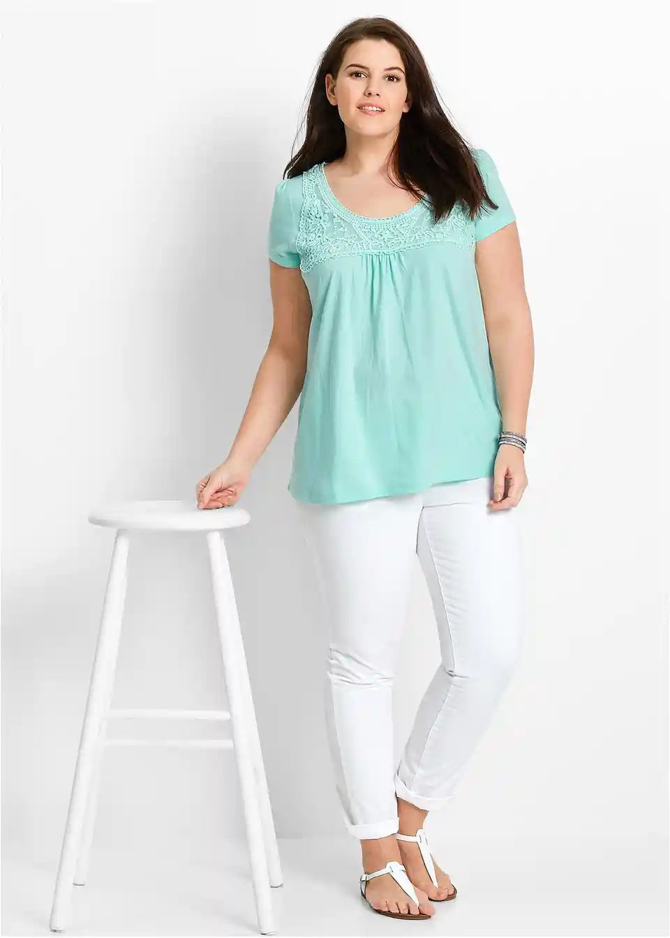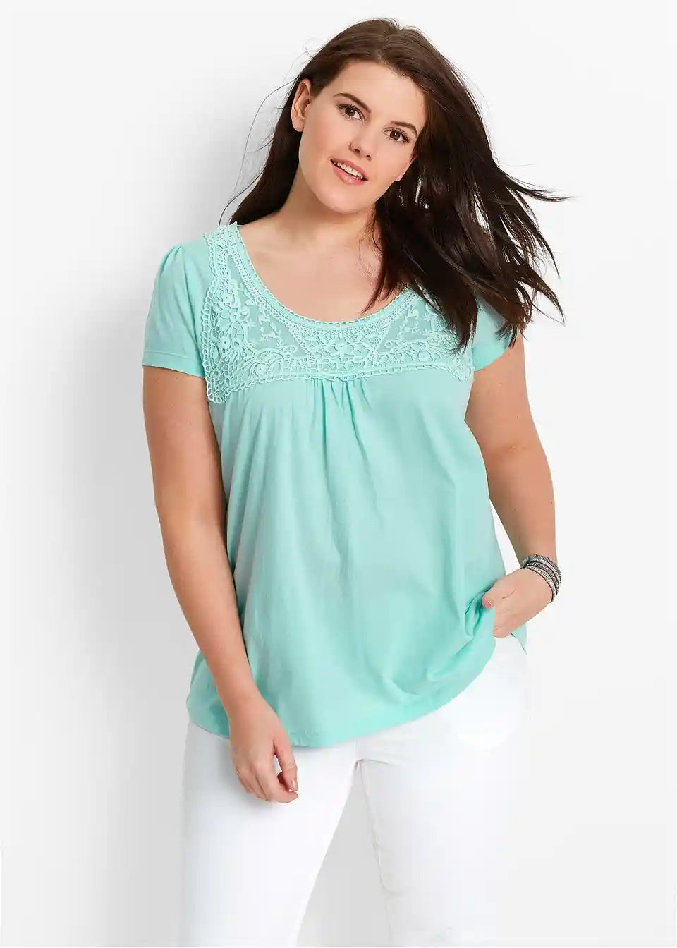 Ljetna majica s lijepim ukrasom od čipke od pamuka