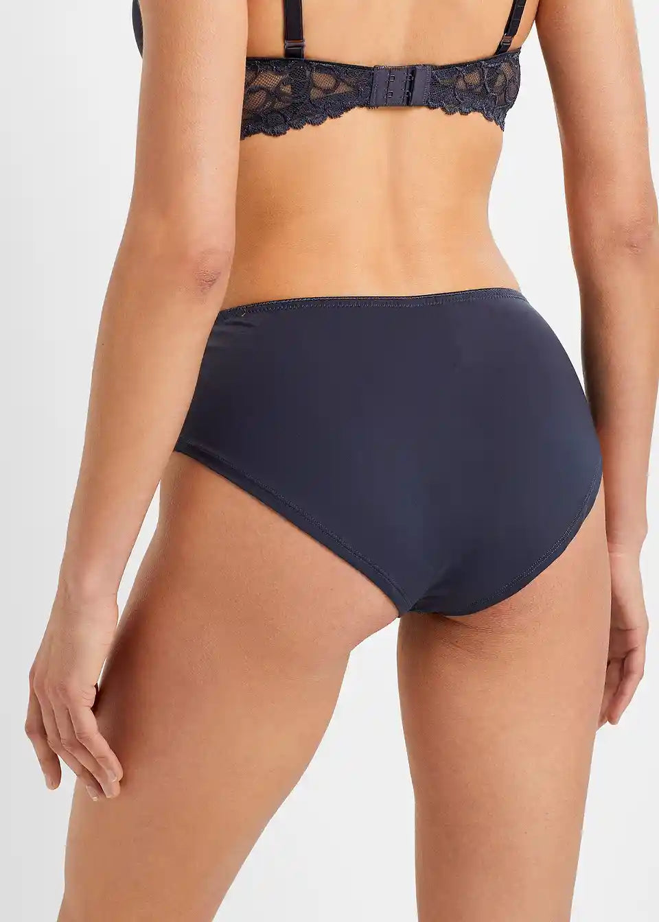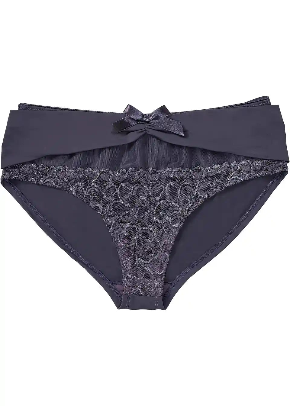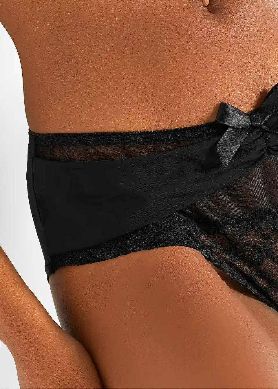 Ova privlačna panty marke BODYFLIRT vješto ističe ženske obline. Fina čipka na prozirnom prednjem dijelu gaćica naglašava ženstveni izgled donjeg rublja. Drapiranje materijala sa strane dodaje zavodljivi detalj te čini ovaj panty privlačnim. Velika mašna u sredini skuplja drapiranje i daje pantyju dozu elegancije. Intimni dio izrađen je od pamuka. Maite preporučuje: "Ovaj komplet je u potpunosti trendi. Za žene sklone romantici koje vole pokazivati svoju koketnu stranu. Time ističu svoj šarm i stavljaju ga u pravi fokus."