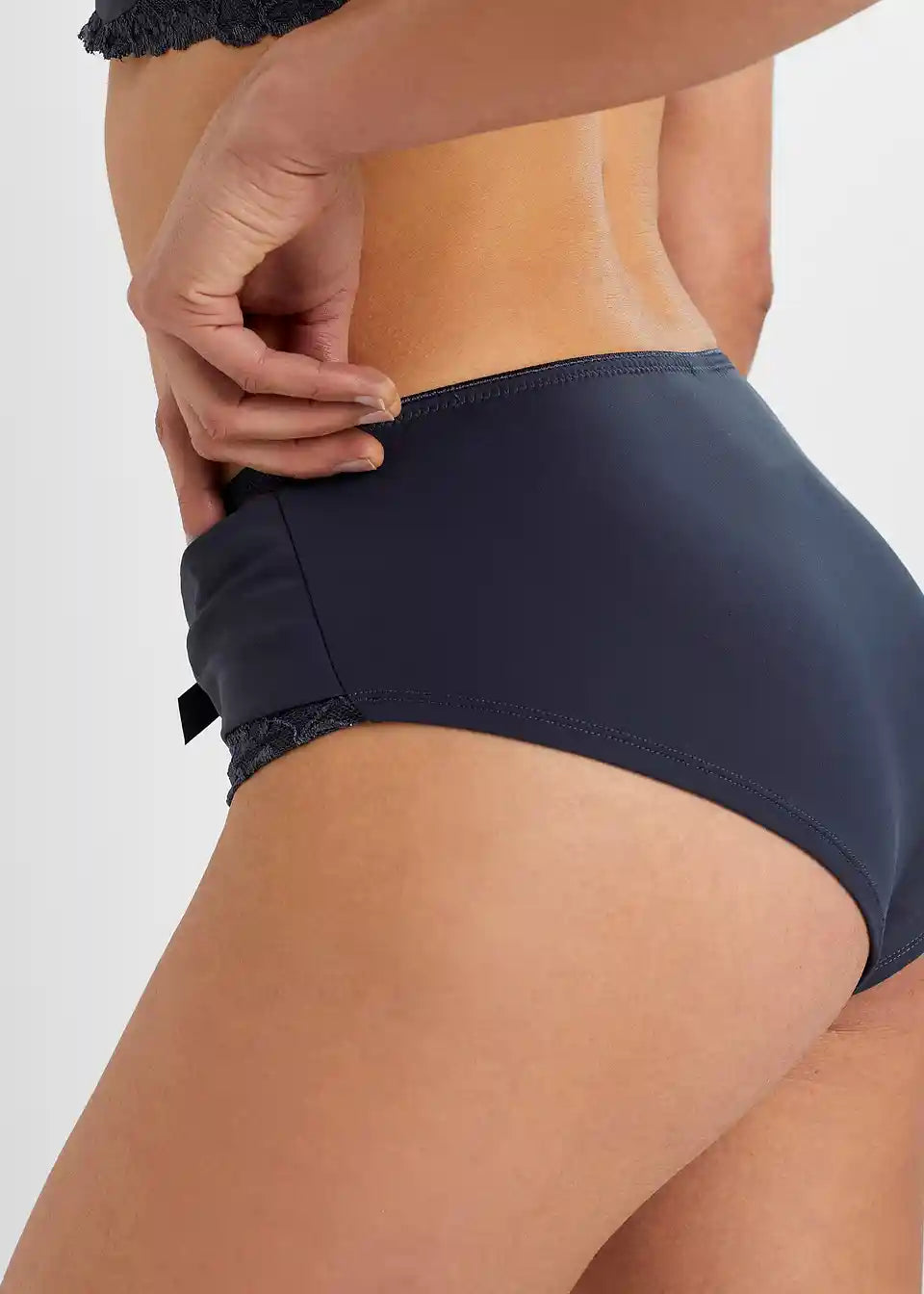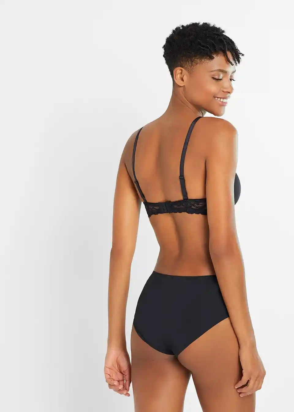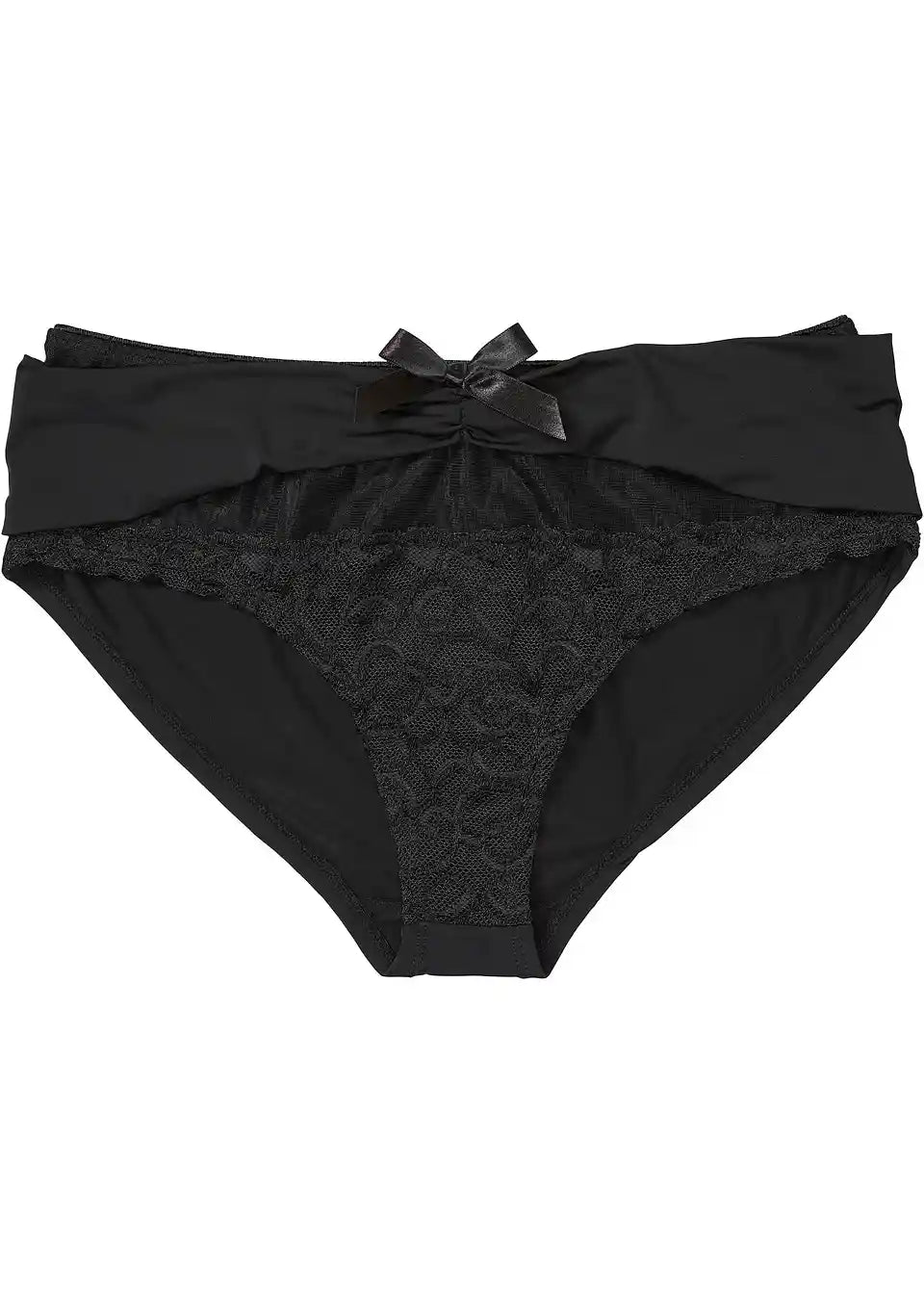 Ova privlačna panty marke BODYFLIRT vješto ističe ženske obline. Fina čipka na prozirnom prednjem dijelu gaćica naglašava ženstveni izgled donjeg rublja. Drapiranje materijala sa strane dodaje zavodljivi detalj te čini ovaj panty privlačnim. Velika mašna u sredini skuplja drapiranje i daje pantyju dozu elegancije. Intimni dio izrađen je od pamuka. Maite preporučuje: "Ovaj komplet je u potpunosti trendi. Za žene sklone romantici koje vole pokazivati svoju koketnu stranu. Time ističu svoj šarm i stavljaju ga u pravi fokus."