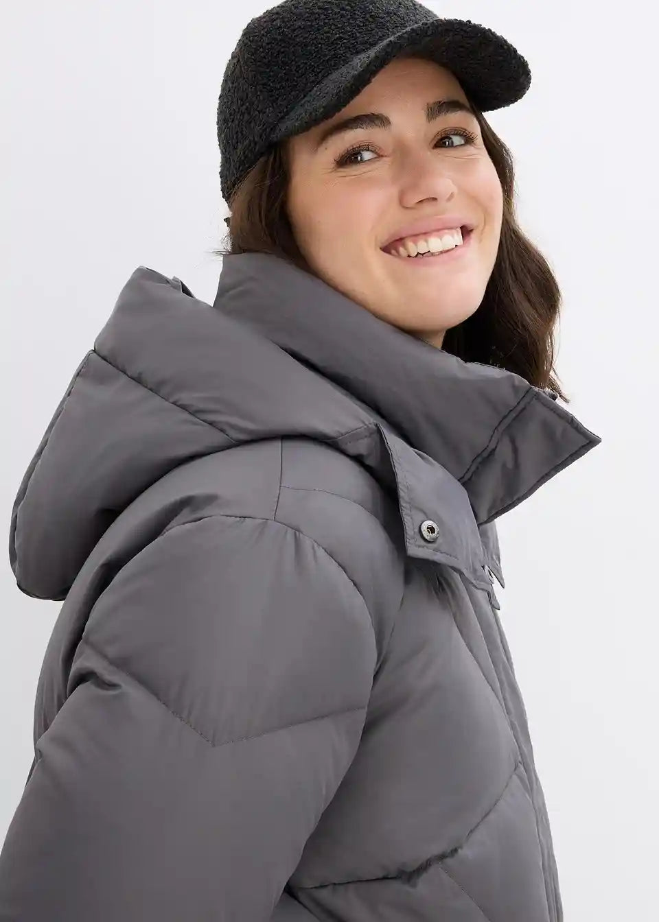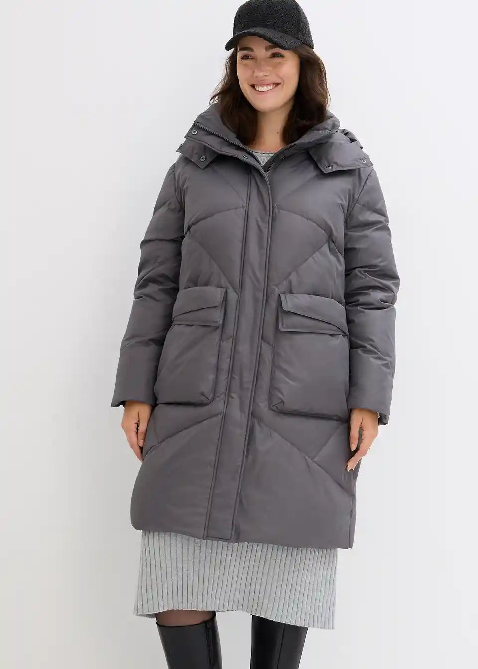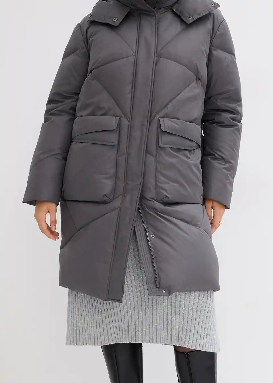 kvalitetna jakna premium kvalitete: prava ispunjena perjem, moderan prošiveni uzorak, vodoodbojni završetak i odvojiva kapuljača