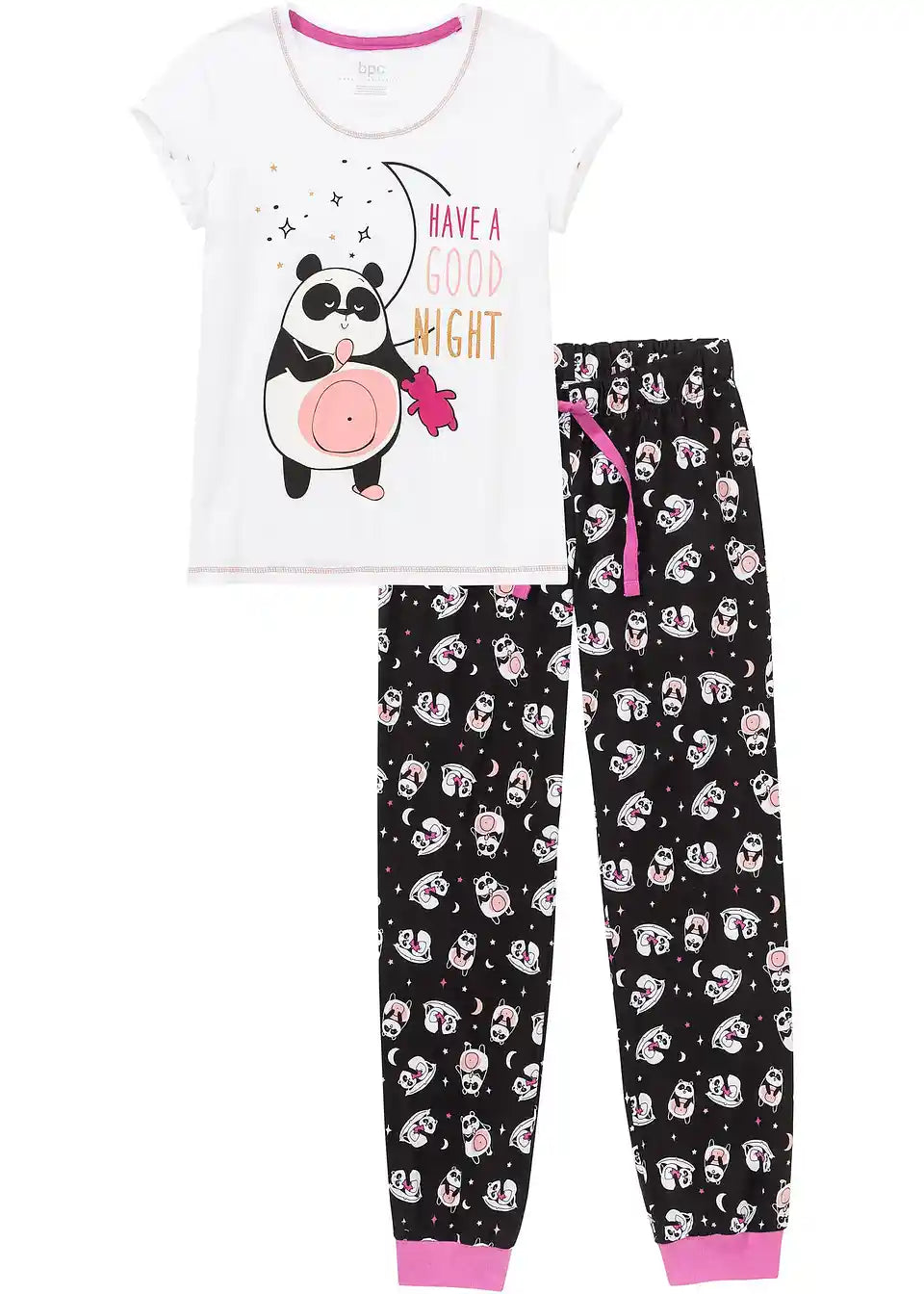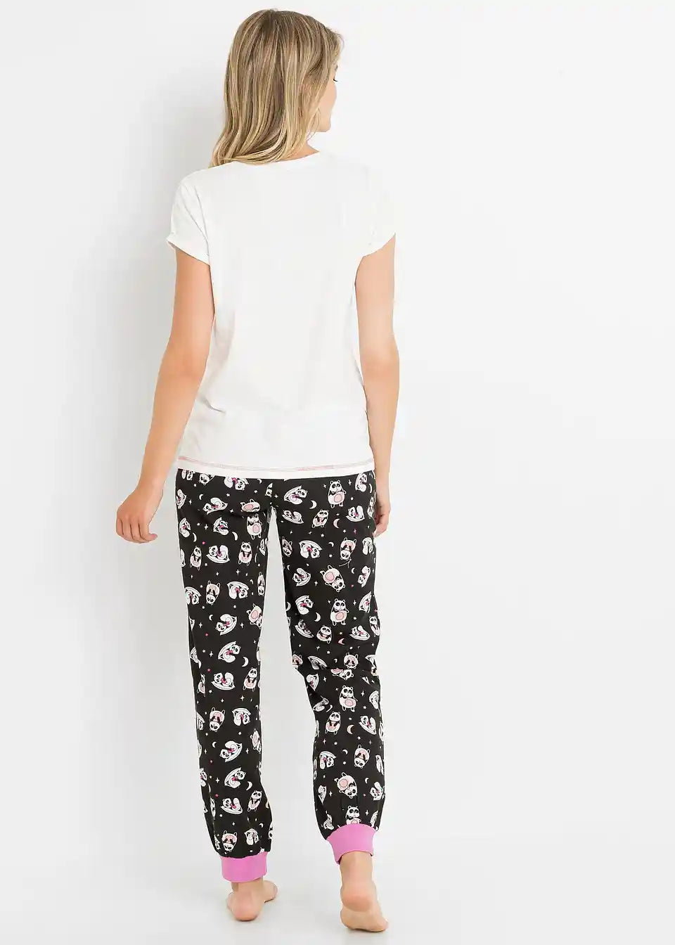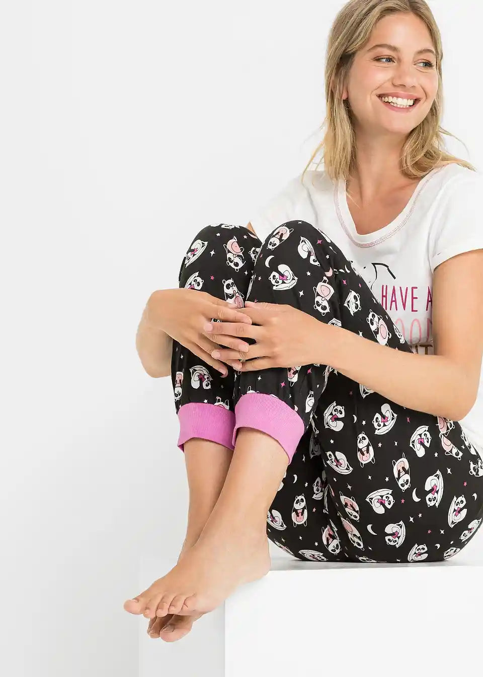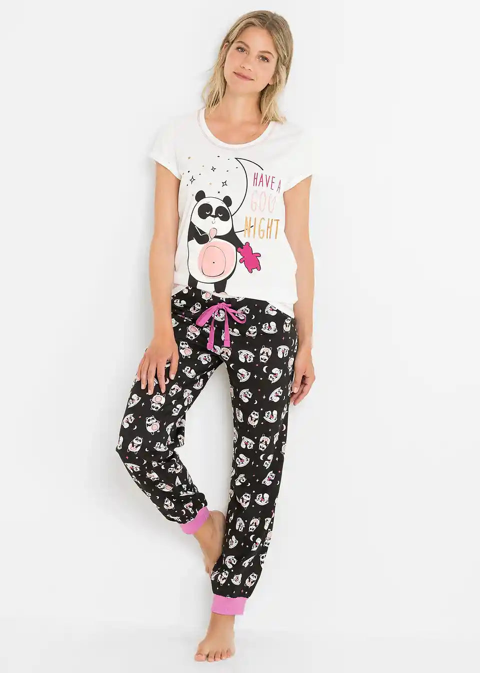 Preslatka pidžama izrađena je s dugim nogavicama, koje imaju udoban rub od rebraste tkanine. Vezica na pojasu je podesiva.