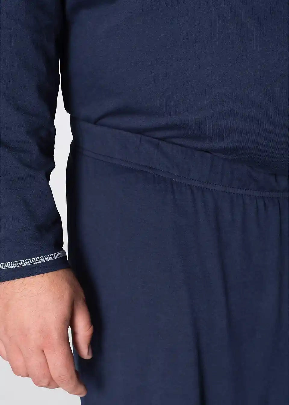 Ova muška pidžama dolazi u dvodijelnom setu. Set se sastoji od udobne gornje majice s dugim rukavima i odgovarajućih pidžama hlača s dugim nogavicama.