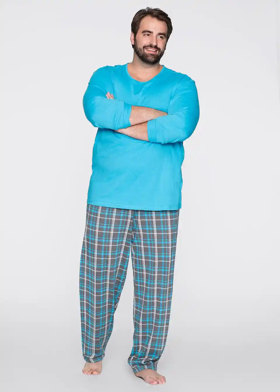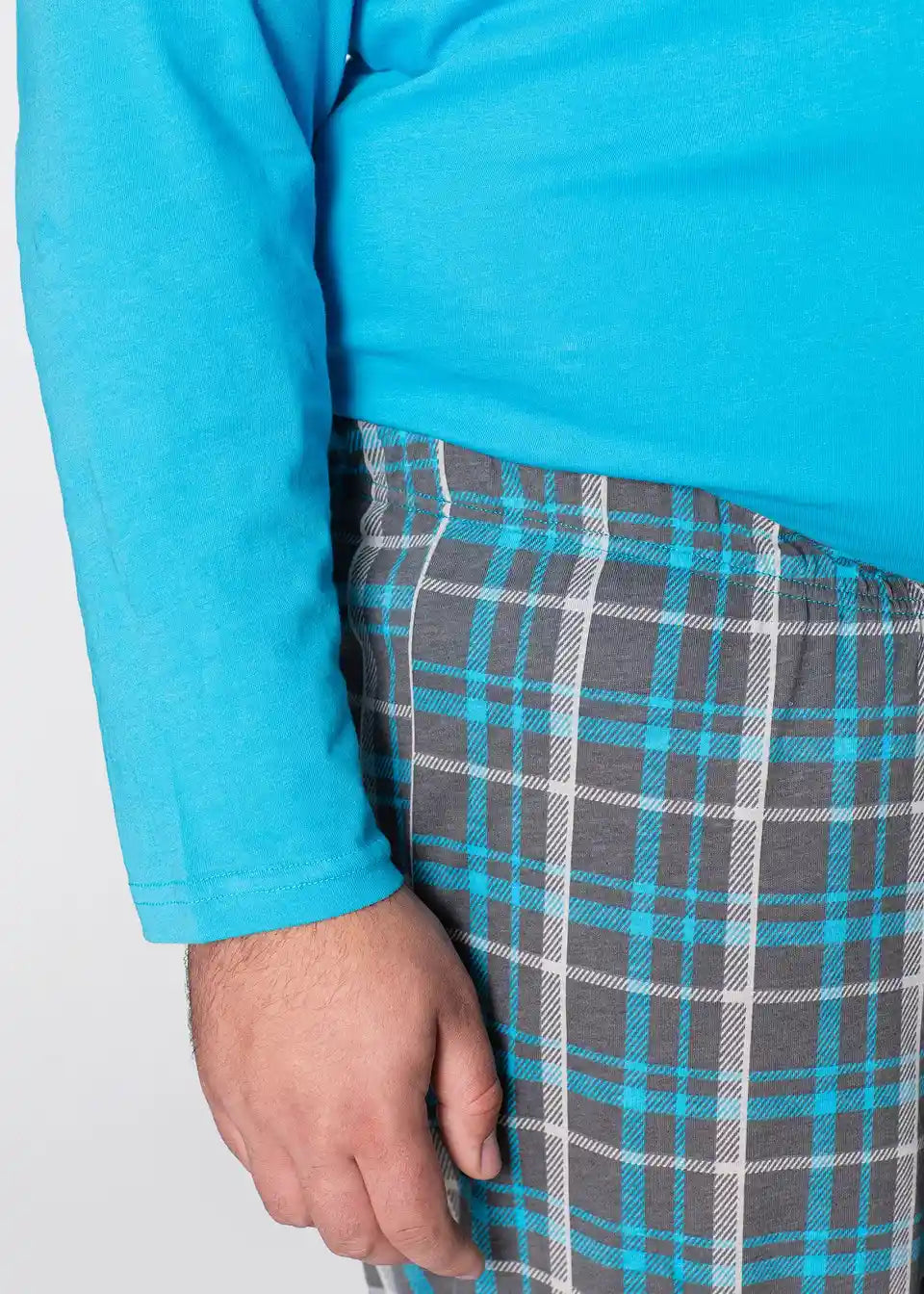 Duge nogavice i rukavi čine ovu pidžamu odličnim izborom za hladnije dane. Hlače s elastičnim pojasom i kariranim uzorkom prate svaki pokret zahvaljujući ležernom kroju. Gornji dio s okruglim izrezom nježno prianja uz gornji dio tijela.
