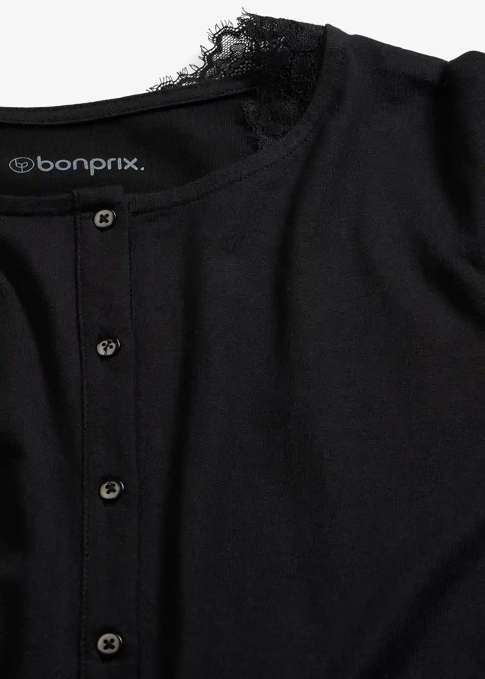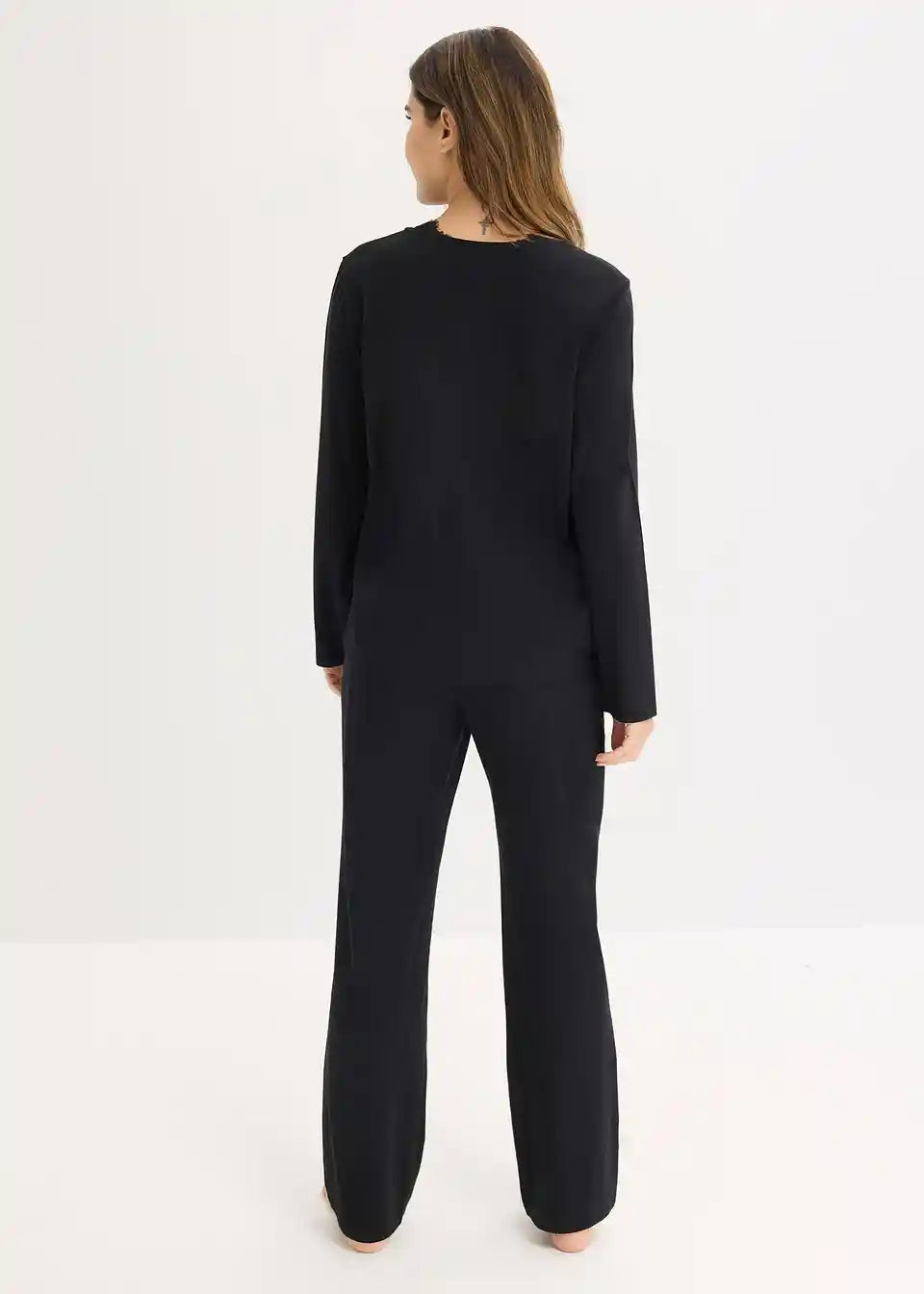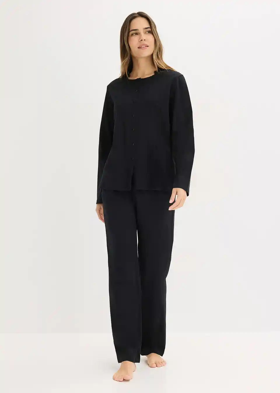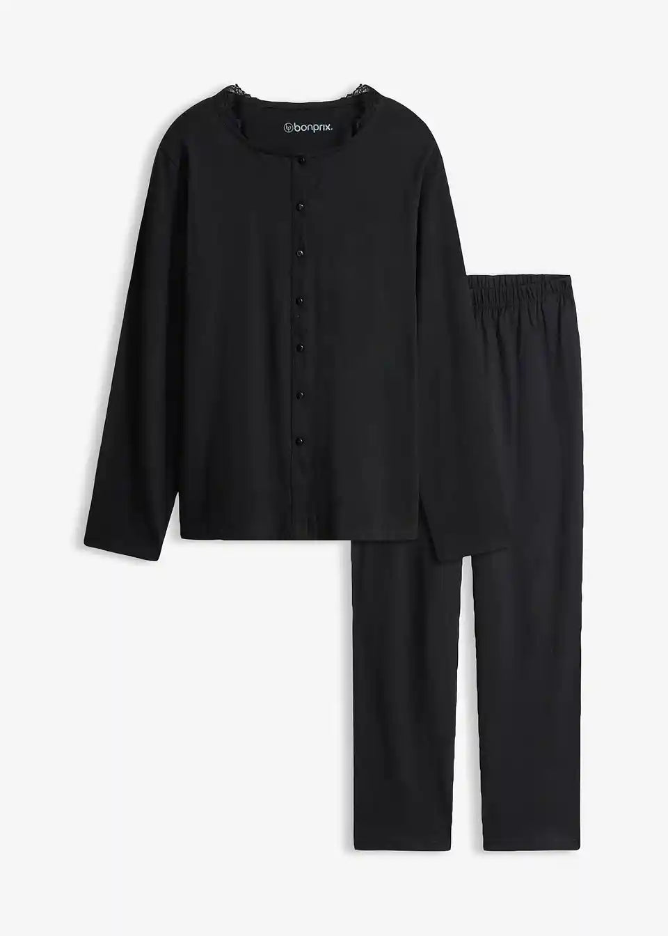 Meka pidžama s čipkastim umetcima na izrezu oko vrata i s gumbima te bočnim ušivenim džepovima na hlačama