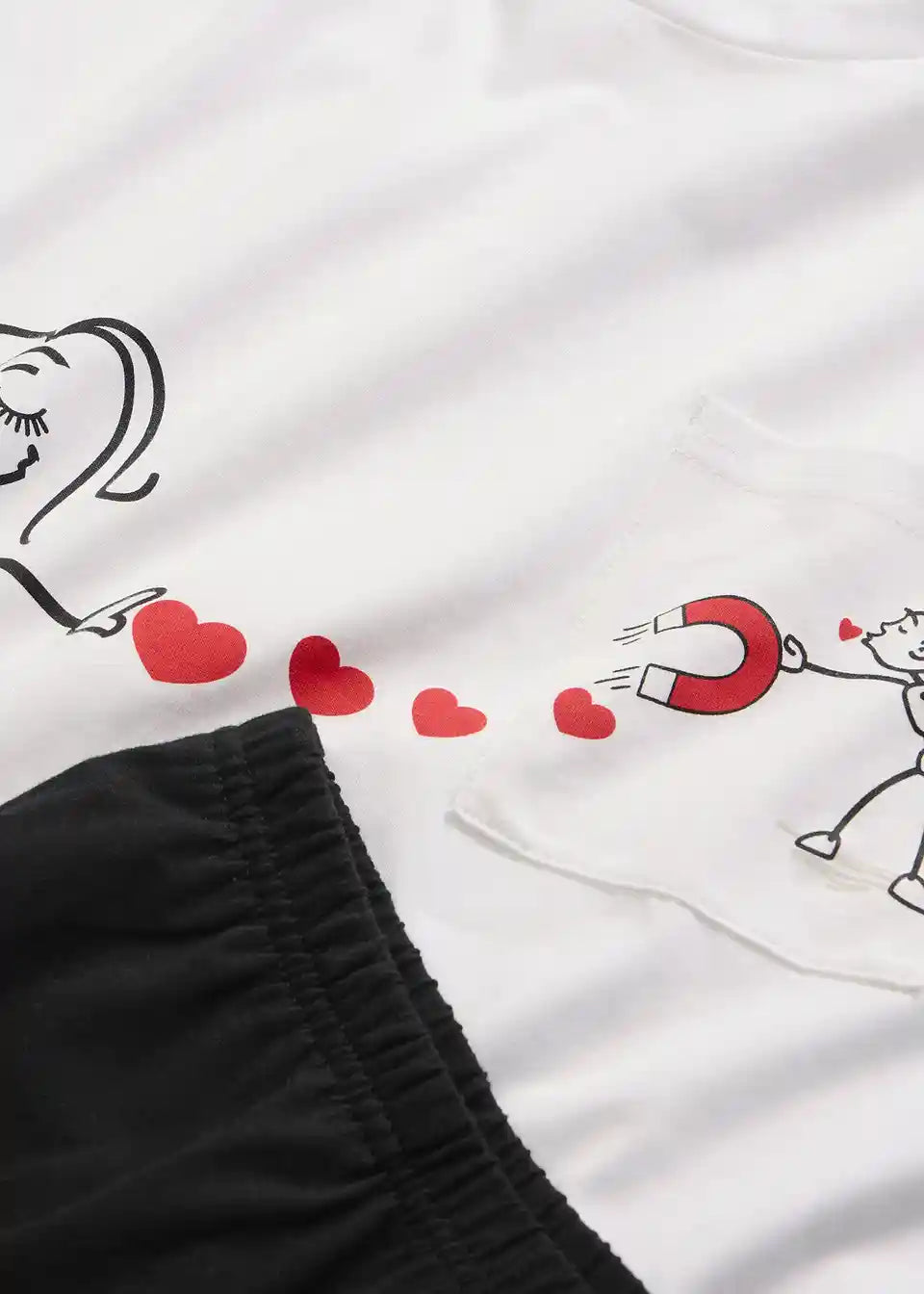 Slatka pidžama za parove s visokim okruglim izrezom i hlačama s bočnim džepovima