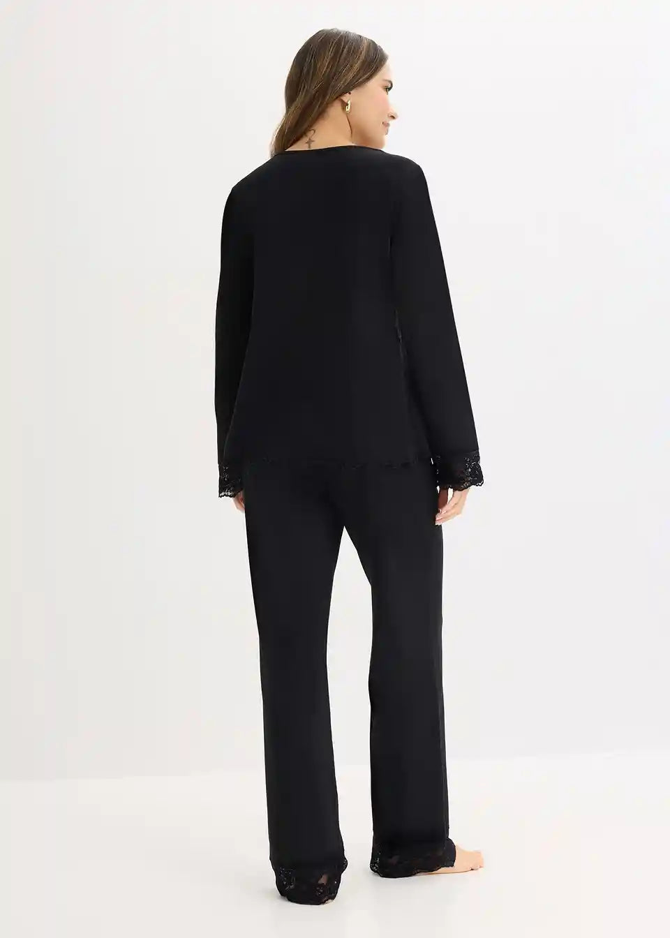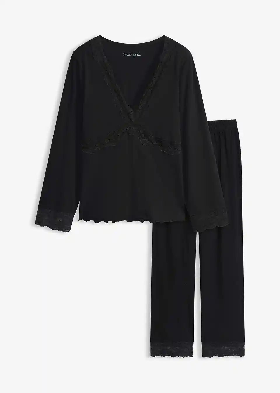 Ženstvena pidžama s V-izrezom i čipkom na izrezu, rubu rukava i nogavica