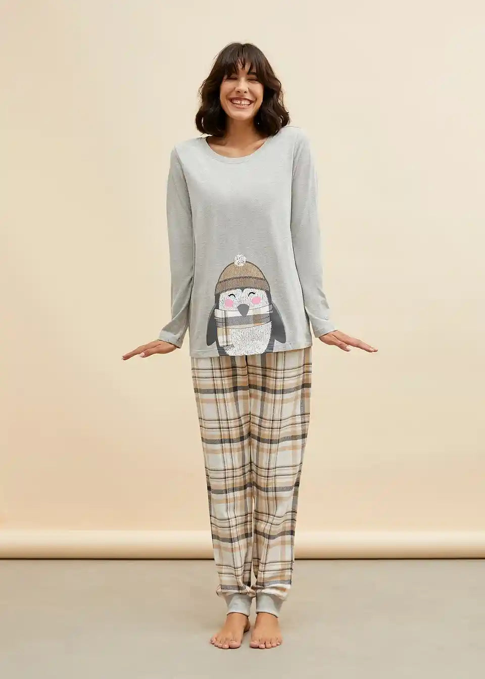 Pidžama s pingvinima i mekanim flanelskim hlačama