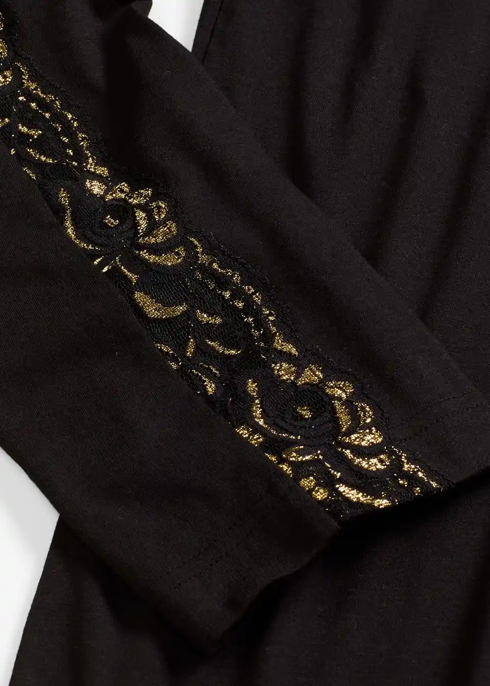 Materijal:gornji materijal: 50% pamuk, 50% viskoza, čipka: 77% poliamid, 13% metalik vlakna, 10% elastan
