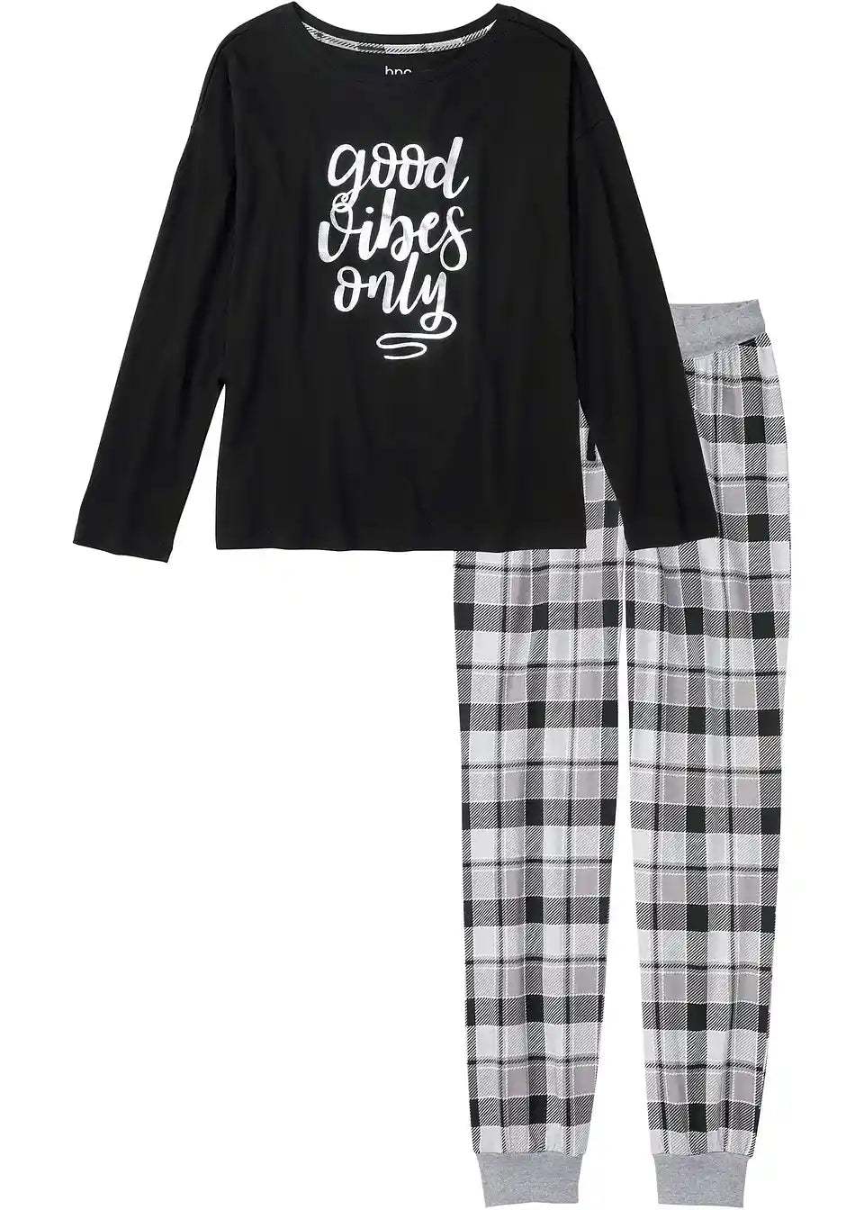 Ova udobna pidžama izrađena je s dugim rukavima. Ima rebraste manžete na završetku nogavica. Poseban naglasak je atraktivan folijski print.