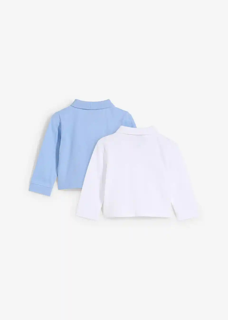 Praktična polo majica s dugim rukavima u pakiranju od 2 komada od mekane pamučne pike tkanine, nježna prema bebinoj koži i ugodna za nošenje. S klasičnim rebrastim ovratnikom, malim kopčanjem s gumbima i elastičnim manšetama za udobno pristajanje – idealna za svaki dan.